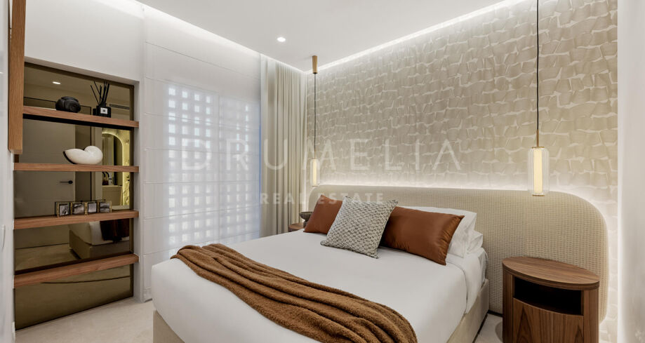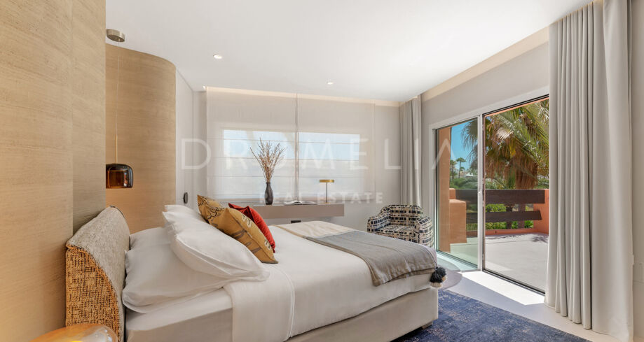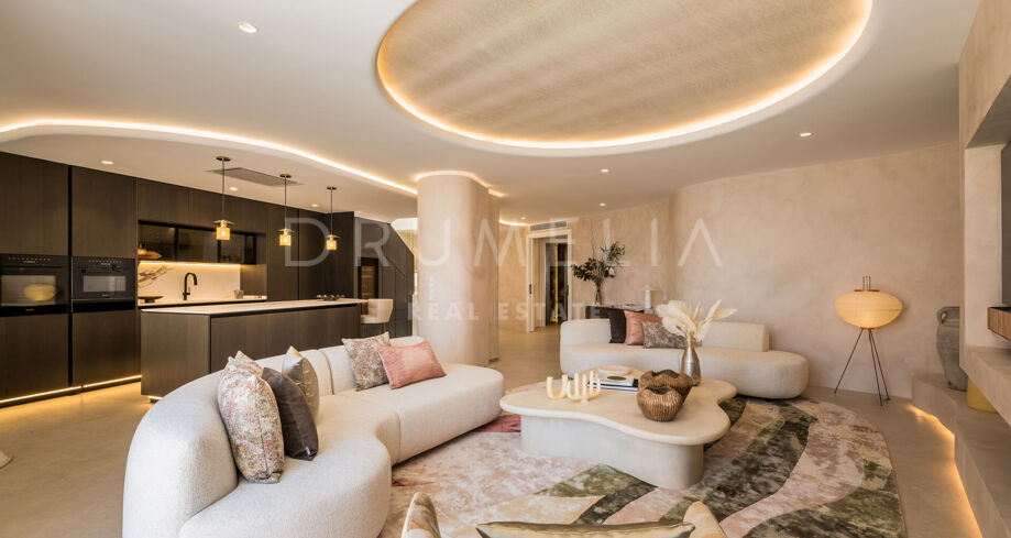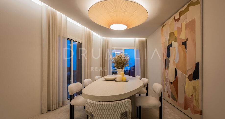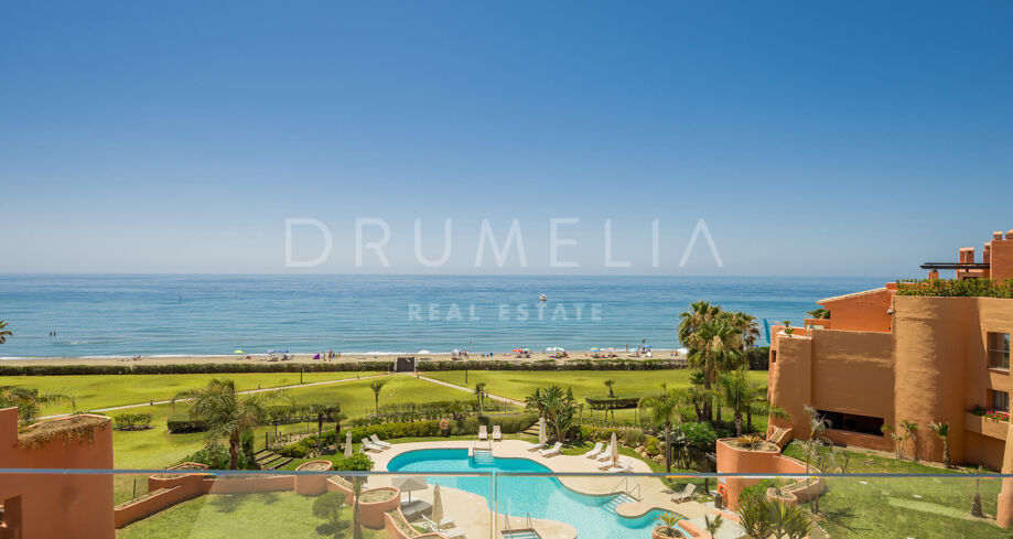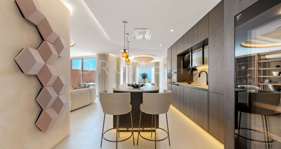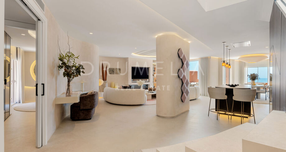 Rodeado de exuberante vegetación y propiedades de lujo de Marbella Este, el excepcional apartamento de 2 niveles con sus 242 m² y otros 200 m² de terrazas ofrece un nivel de espacio que normalmente sólo se puede encontrar en villas. La ubicación y la orientación sur/oeste confieren a este maravilloso ático dúplex unas vistas maravillosas directamente a la playa. Las coloridas cometas de los surfistas iluminan el cielo azul cuando el tiempo y las condiciones son las adecuadas. Desde ambas terrazas se puede disfrutar de la belleza de una ubicación en primera línea de playa, con vistas abiertas al mar Mediterráneo, Gibraltar y el norte de África. Esta propiedad excepcional cuenta con 4 dormitorios y 5 baños, una nueva cocina abierta de diseño Siematic con electrodomésticos Miele, amplias y elegantes zonas de estar y comedor.