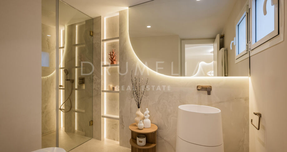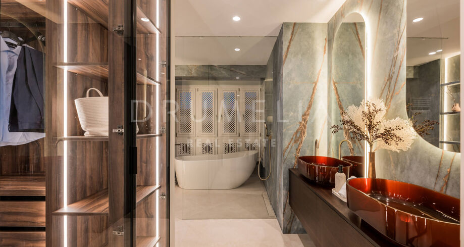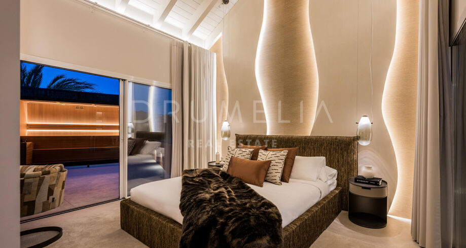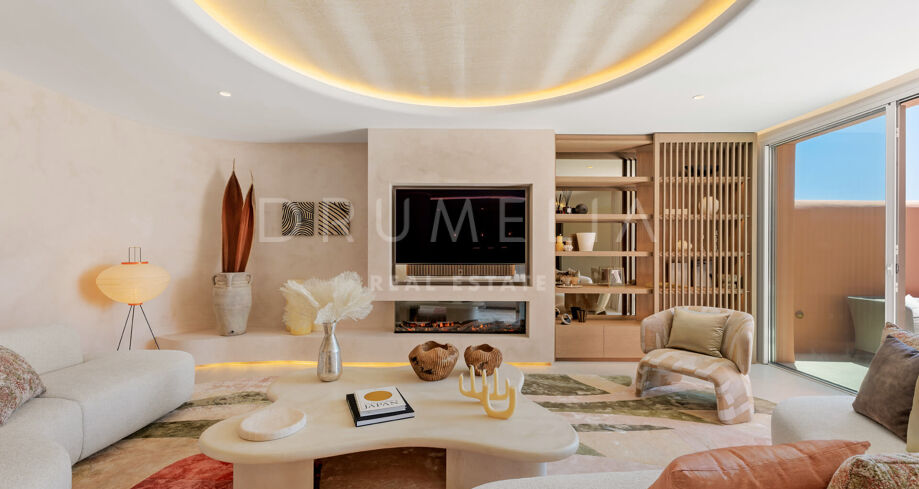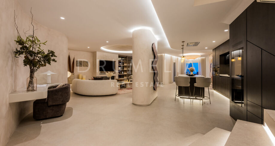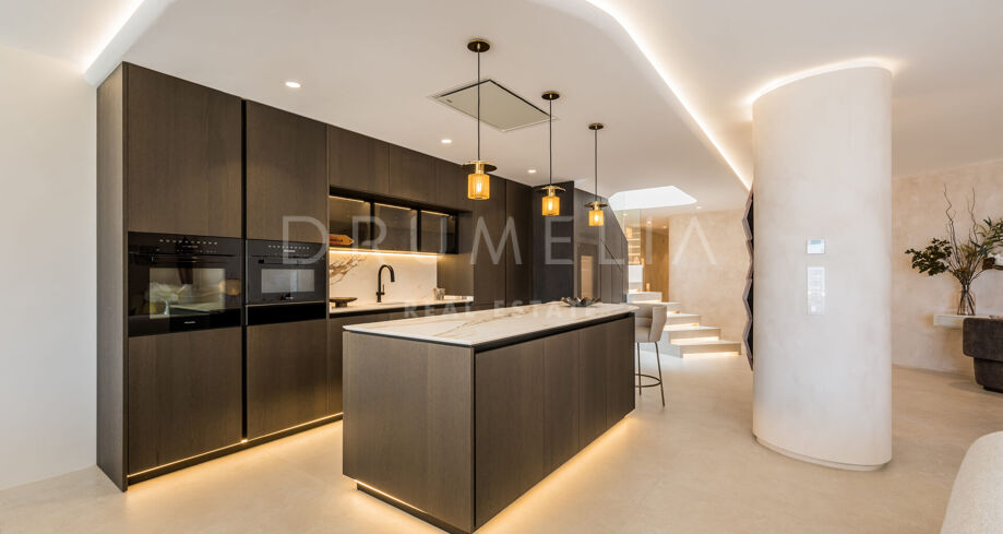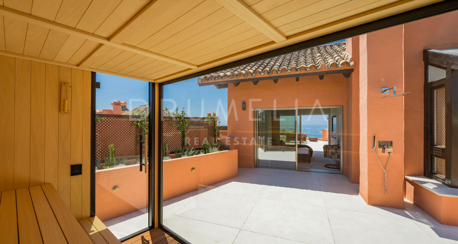 Bellamente renovado a un nivel muy alto y con un gusto exquisito, esta casa impresiona con un diseño interior exclusivo, muebles contemporáneos elegantes, armarios hechos a medida, un sistema de sonido Bang & Olufsen, una chimenea eléctrica y muebles de exterior Kettal con estilo. El ático se vende con 2 plazas de aparcamiento subterráneo y un trastero. Un sistema de alarma le dará tranquilidad. No se pierda este impresionante ático en un lujoso complejo en Marbella Este que ofrece uno de los mejores entornos en primera línea de playa de la Costa del Sol, dentro de un oasis de tranquilidad y privacidad y con fantásticas vistas. ¡Una oportunidad única!