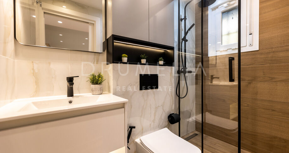 Elegantemente diseñado y meticulosamente ejecutado, este apartamento ha sufrido una completa transformación desde la base cada detalle ha sido considerado dando como resultado un hogar que sin esfuerzo se casa con la modernidad y el confort. Se vende en un estado excelente, totalmente amueblado, con plaza de garaje, suelos de mármol y madera, aire acondicionado frío y calor, alarma, armarios empotrados, barbacoa, doble acristalamiento, etc. Con su excelente dirección y sus impresionantes vistas panorámicas, este moderno apartamento presenta una oportunidad excepcional en el mercado inmobiliario de Marbella. Puede ser su residencia para vivir permanentemente, apartamento de vacaciones u oportunidad de inversión.