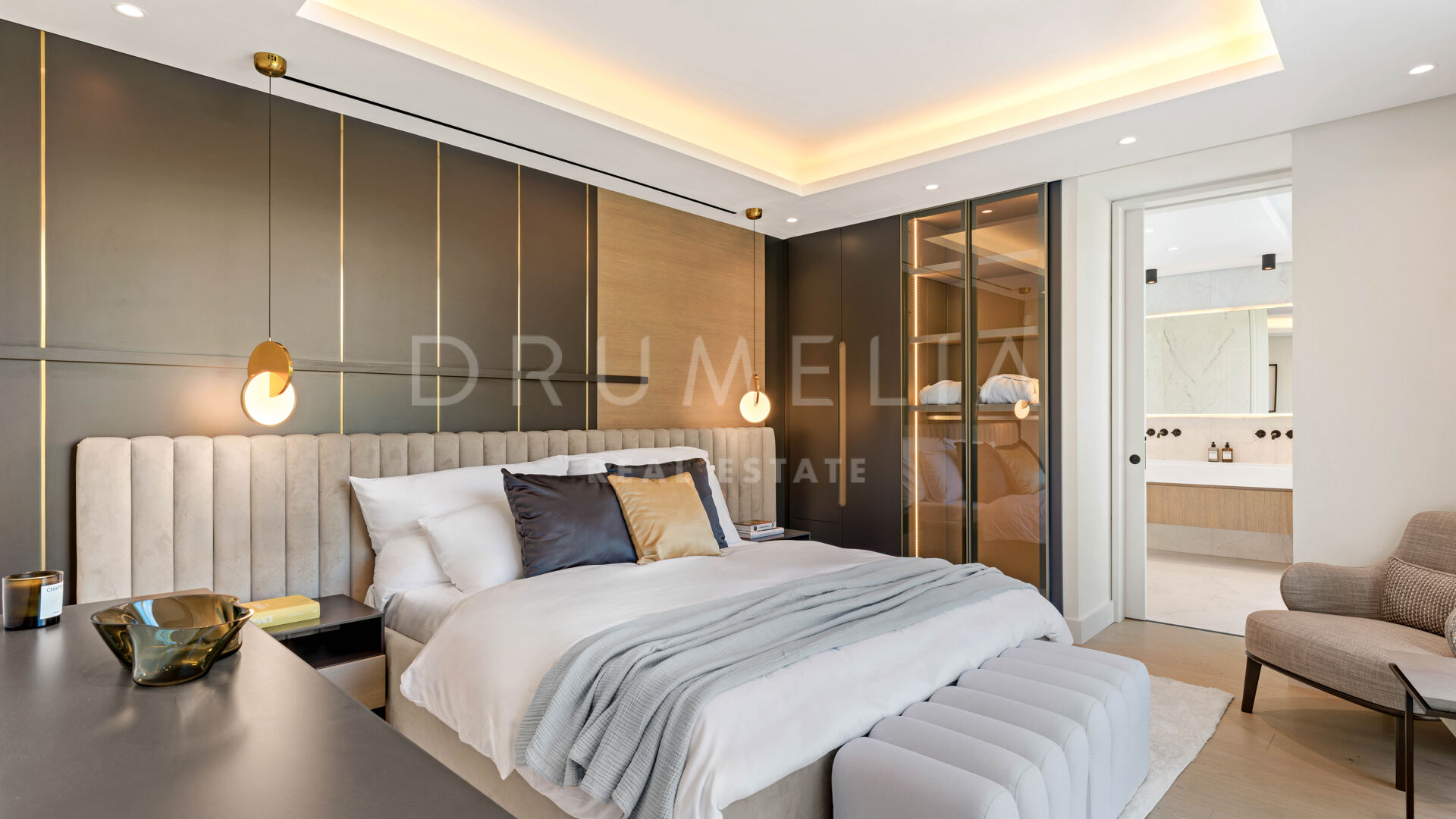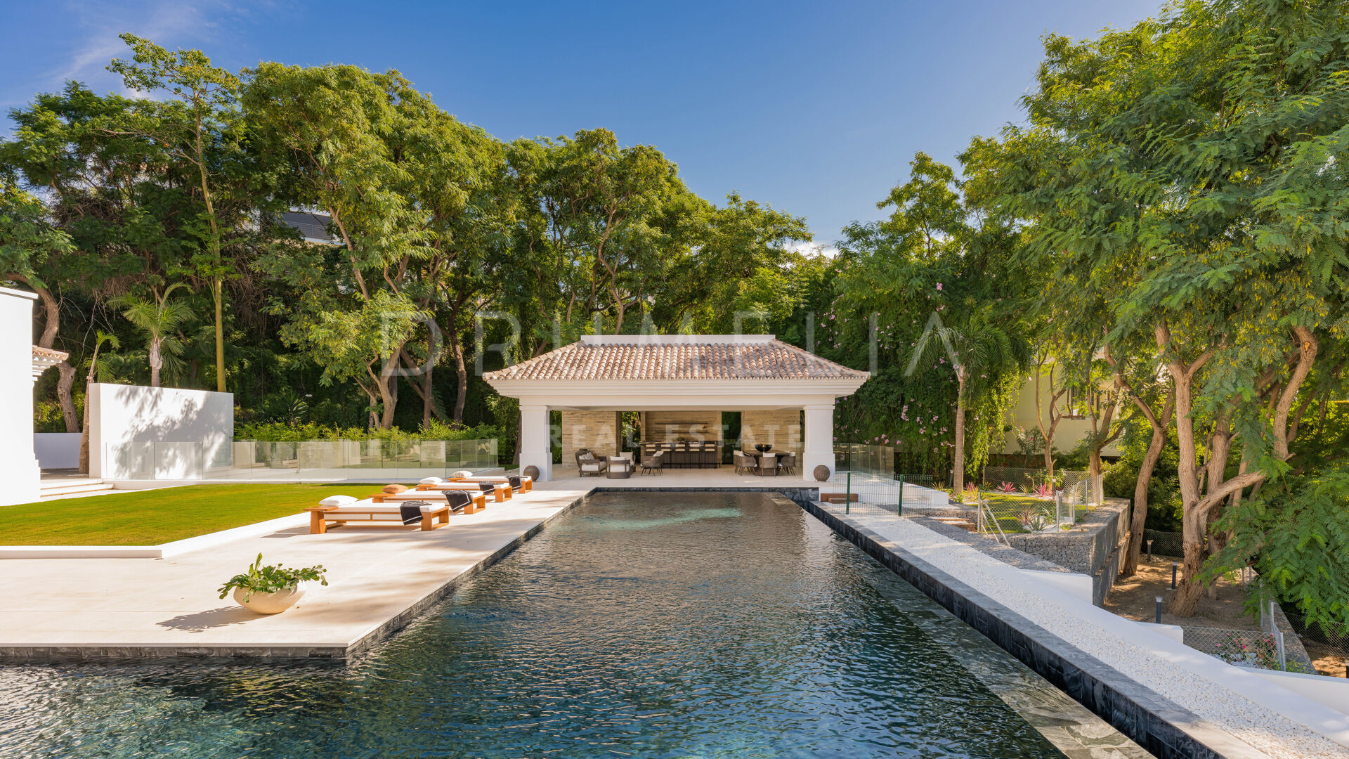 En la planta superior, la impresionante suite principal goza de una posición privilegiada con una terraza privada abierta y vistas panorámicas. Otros 4 dormitorios en suite tienen terrazas privadas y ofrecen un alojamiento generoso. El ocio perfecto está garantizado por todas las comodidades del nivel inferior de esta mansión. Aquí encontrarás una increíble zona de SPA que incorpora una piscina cubierta climatizada, una piscina fría, una sauna, un hammam, una sala de masajes y un gimnasio totalmente equipado. También están la bodega, la sala de cine y la sala de juegos con mesas de billar y póquer. Los aficionados a los coches podrán aparcar 3 coches en un garaje privado, además de contar con aparcamiento exterior. En el exterior, un jardín llano y cuidado rodea la piscina infinita de 20 m con un gran cenador con zonas de estar y comedor, bar y cocina. Las terrazas de 323 m² invitan a disfrutar del glorioso estilo de vida mediterráneo.