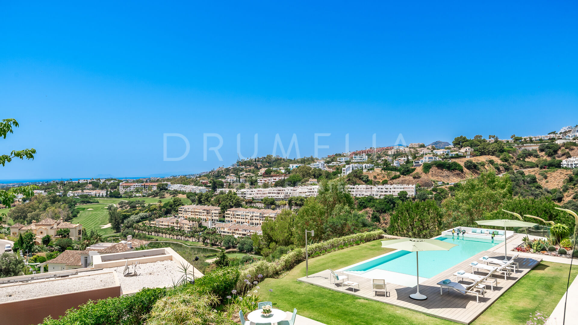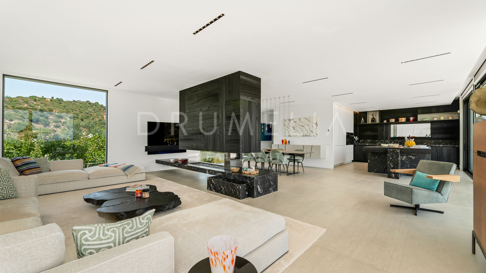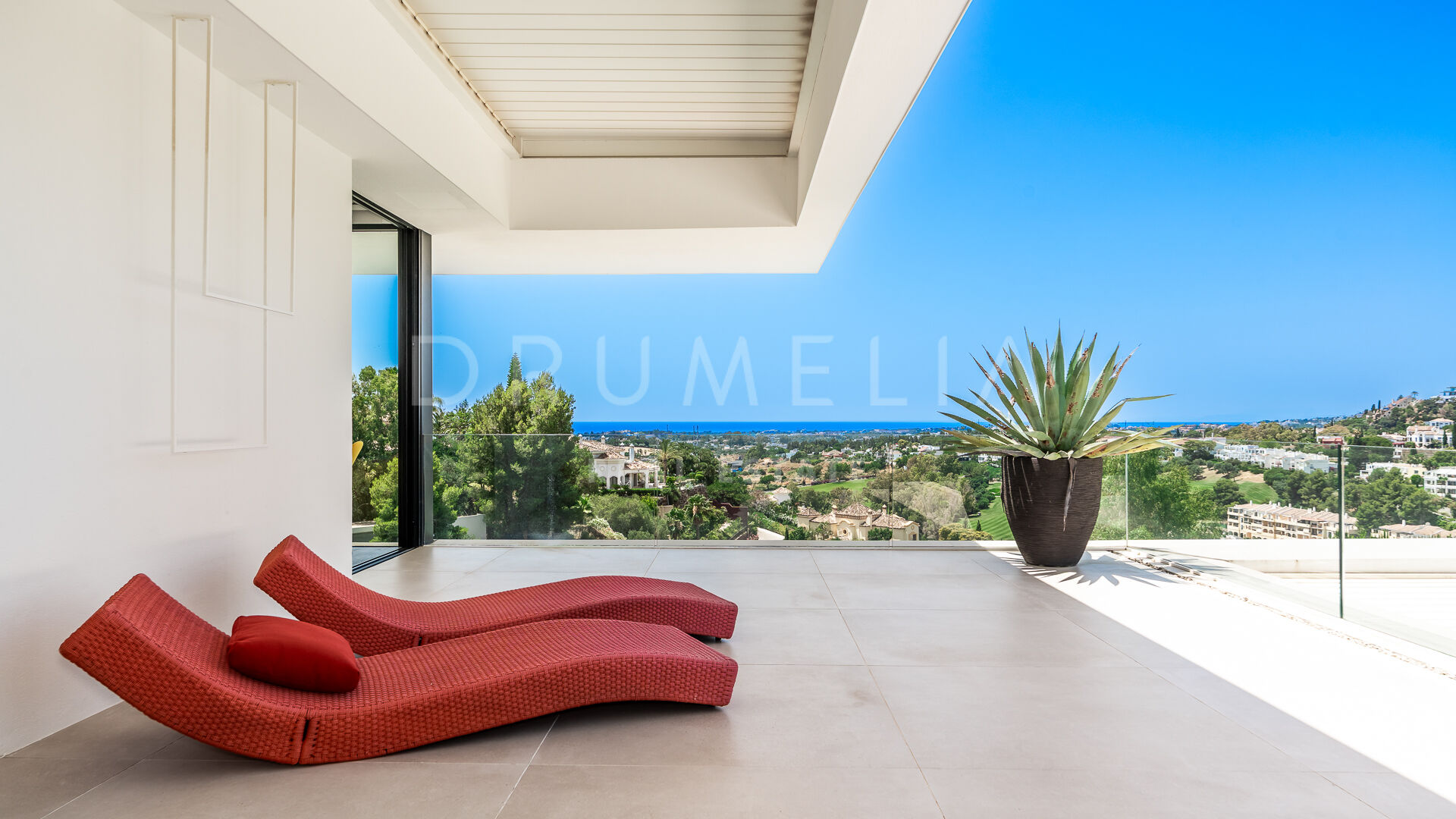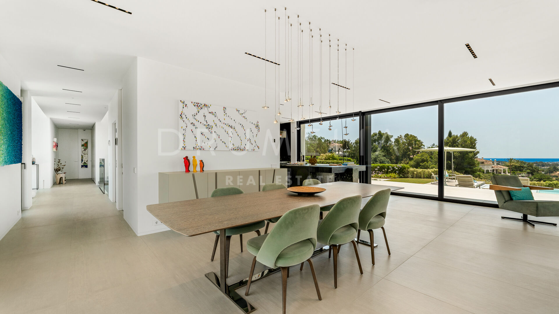 Esta villa contemporánea en Nueva Andalucía, situada en una exclusiva urbanización cerrada a solo 10 minutos de Puerto Banús, destaca por su lujo, privacidad y espectaculares vistas panorámicas al mar, la montaña y el campo de golf. Construida sobre una parcela elevada de 2.750 m², cuenta con 770 m² edificados y 480 m² de terrazas, con un diseño moderno de líneas limpias, abundante luz natural y un sistema domótico completo que garantiza eficiencia energética y confort.