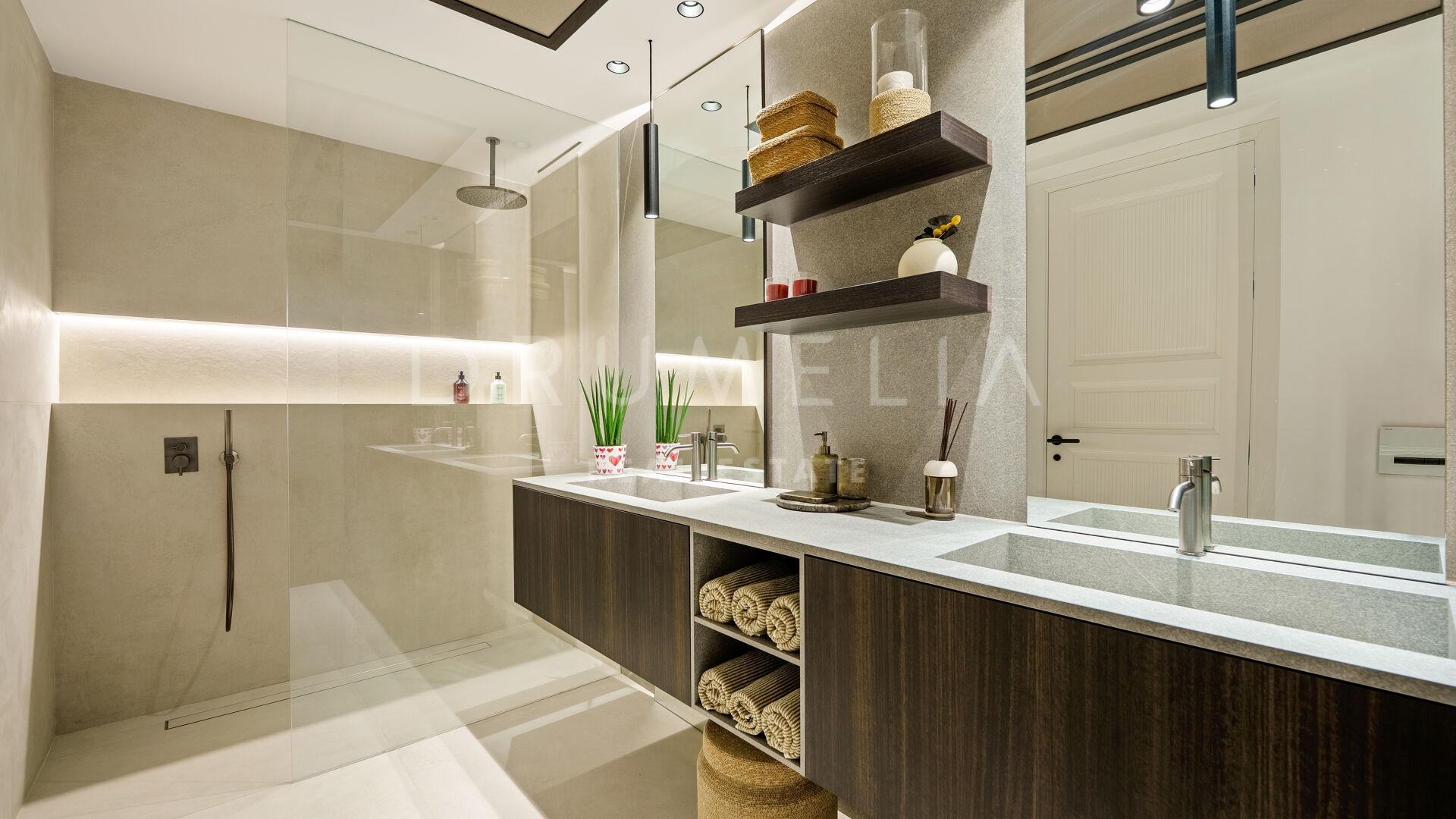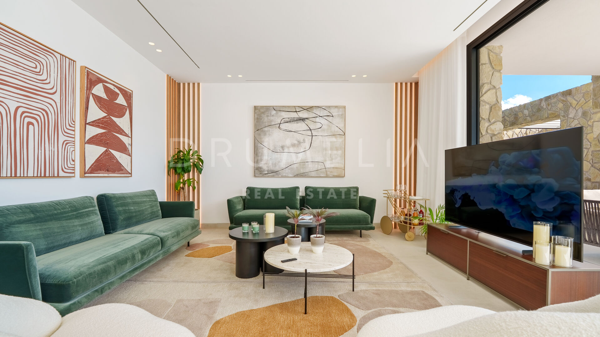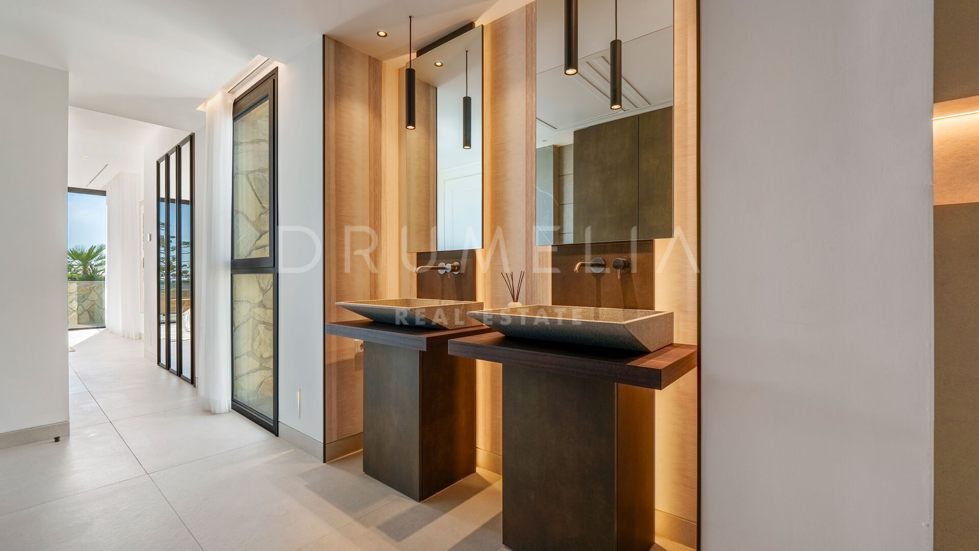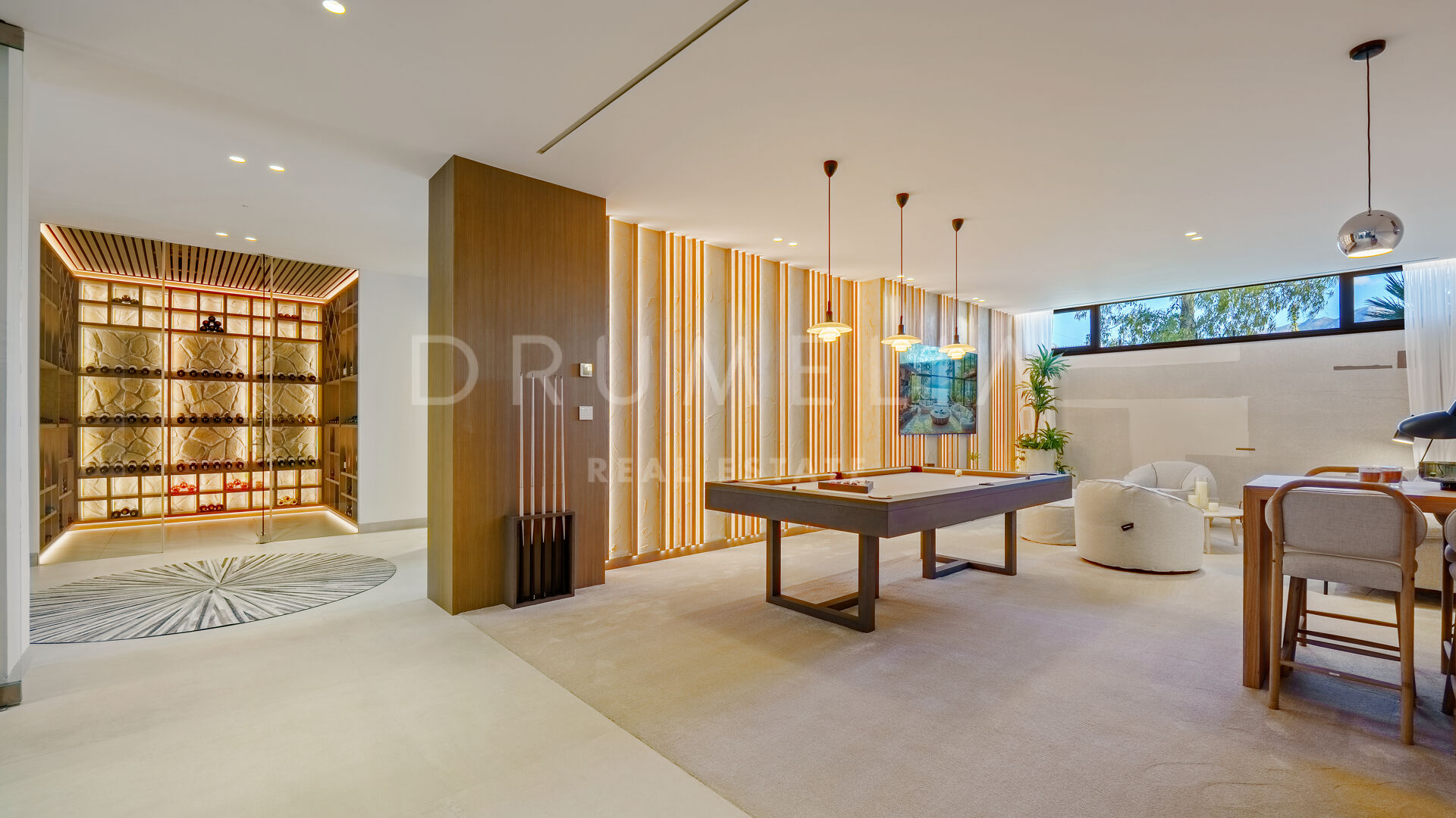 Con una superficie de 605 m² distribuidos en tres niveles, la villa ofrece cinco dormitorios y cuatro baños, todos diseñados con la máxima atención al detalle. La planta principal cuenta con espacios abiertos de salón y comedor que se integran perfectamente con amplias terrazas y una impresionante piscina infinita de 73 m², creando un estilo de vida interior–exterior ideal tanto para el entretenimiento como para el descanso. Los ventanales de suelo a techo inundan los interiores de luz natural, resaltando las líneas limpias y los acabados contemporáneos de la villa.