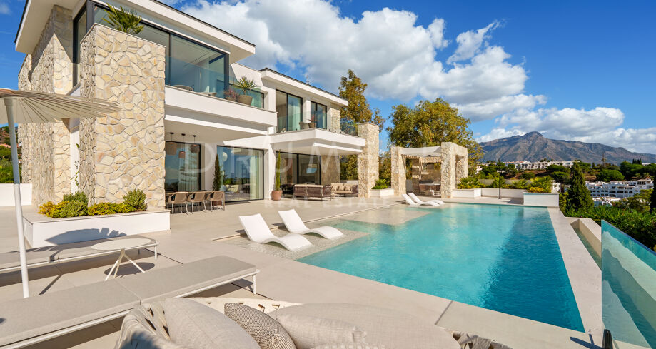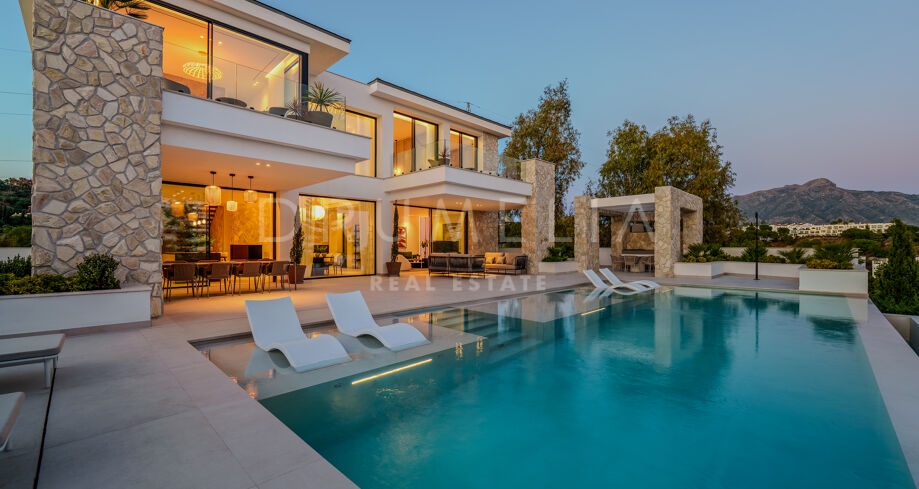 Esta villa es una residencia contemporánea excepcional ubicada en una exclusiva comunidad cerrada en La Quinta, Marbella. Diseñada y construida por Cogitari Homes, esta sofisticada propiedad encarna la esencia del estilo de vida mediterráneo moderno, combinando elegancia arquitectónica, confort refinado y la serenidad de su entorno natural. Perfectamente situada entre el mar Mediterráneo y la montaña La Concha, disfruta de vistas panorámicas a la costa y al valle.