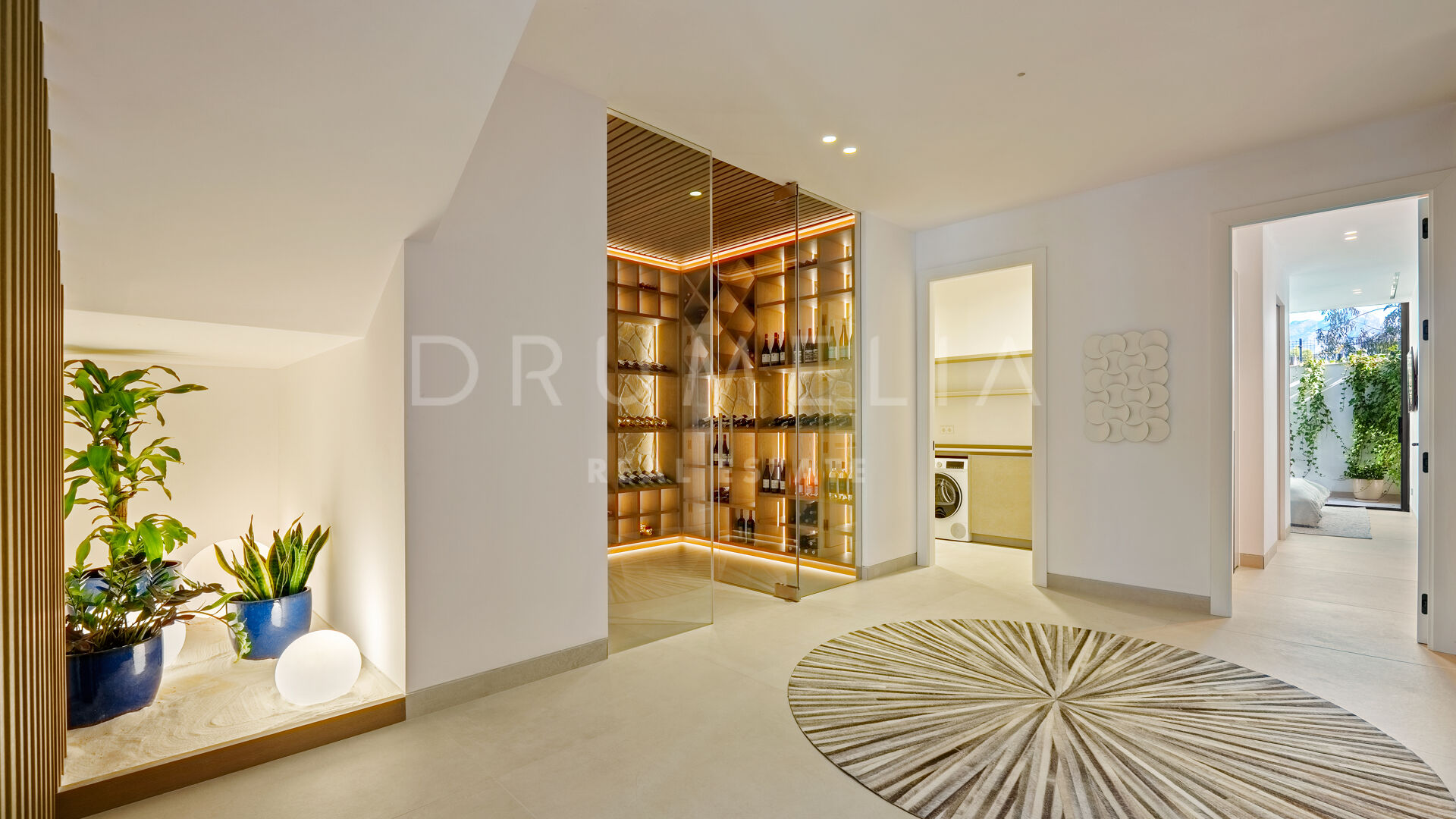 La planta superior alberga las suites privadas, incluida una suite principal con terraza, vestidor y vistas espectaculares. El nivel de entretenimiento incorpora un gimnasio, bodega, sala de cine y un garaje para varios vehículos, además de lavandería y almacenamiento. Todo ello se encuentra a pocos minutos de La Quinta Golf & Country Club, Los Naranjos y Los Arqueros.