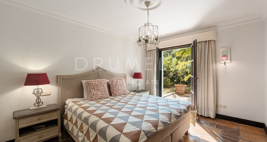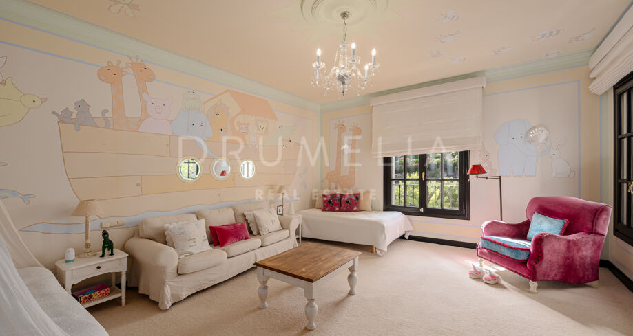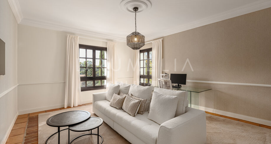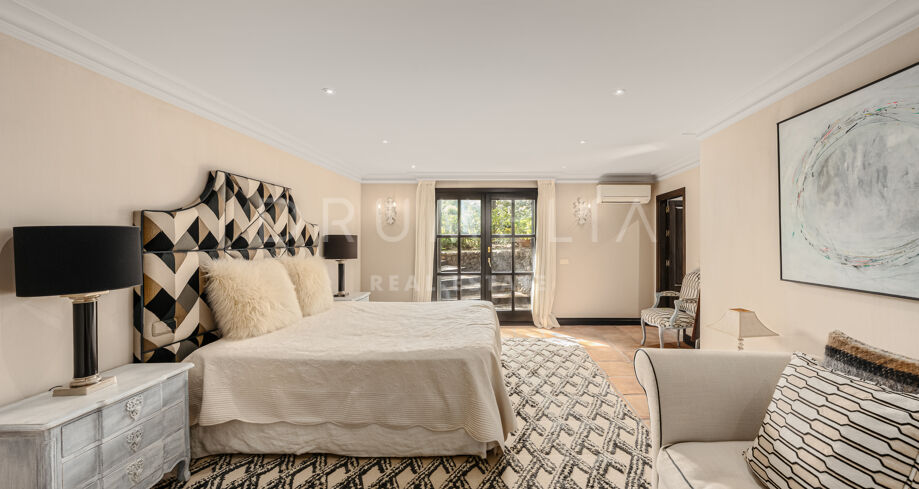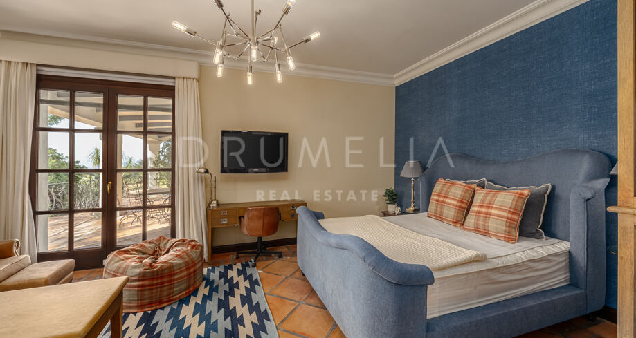 Los 6 dormitorios son muy amplios. Uno de los dormitorios dispone también de cocina americana; muchos tienen acceso a la terraza o a los jardines. La mayoría de los cuartos de baño disponen tanto de ducha como de bañera. Esta es la casa familiar perfecta que además cuenta con una zona de SPA, gimnasio, bodega, amplias zonas de almacenamiento y lavandería. También hay un pequeño taller anexo al garaje privado. Varios patios con impresionantes vistas y la cocina exterior junto a la zona de la piscina son un punto central para disfrutar de todas las estaciones. El jardín también está bien diseñado con diferentes ambientes que proporciona floración y verdor durante todo el año. Una acogedora avenida de jacarandas y rosas conduce a la casa a través del aparcamiento de invitados. Palmeras maduras, plantas subtropicales, flores y árboles frutales crean un ambiente encantador.