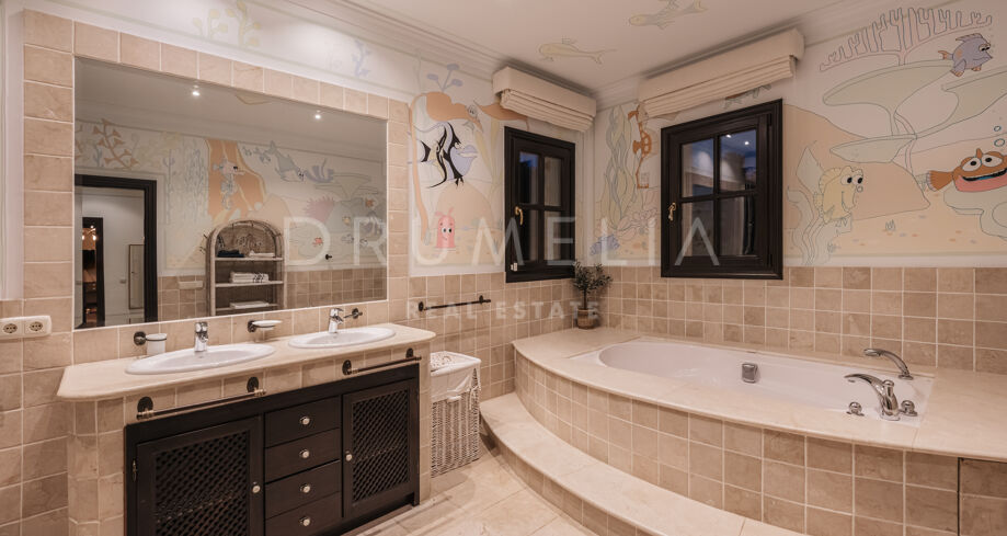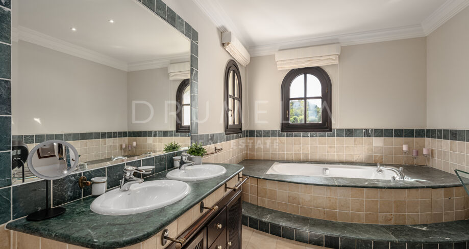 Esta cuidada propiedad en La Zagaleta está en un estado excelente, y las mejoras se han hecho continuamente a lo largo de los años. Toda la propiedad ofrece una clase superior en todo, tiene un sistema de alarma avanzado y muchas características de lujo añadiendo a su lujo, seguridad y confort. Los materiales y acabados son de alta calidad. Las paredes se han pintado con una técnica especial de marmoleado. Gran parte del mobiliario está hecho a medida y los diseñadores de interiores han creado soluciones únicas para la casa. Si busca una casa de lujo en una ubicación privilegiada, ¡esta magnífica villa en La Zagaleta es su elección!