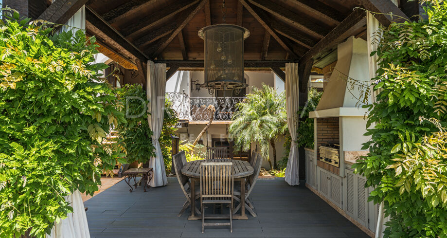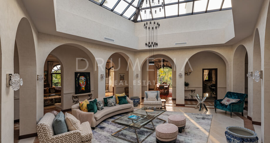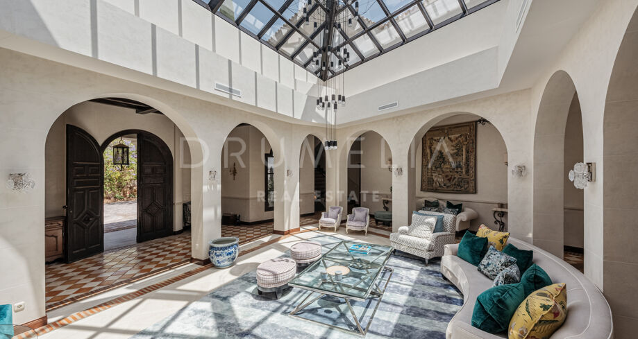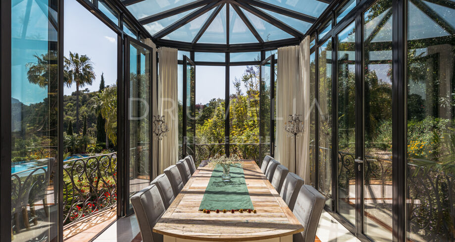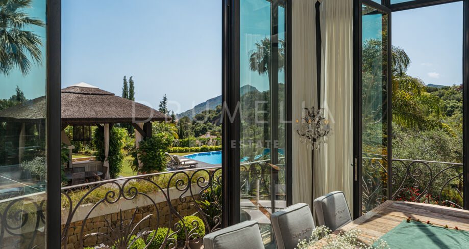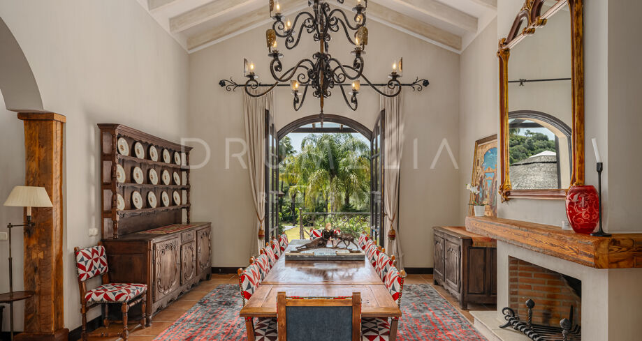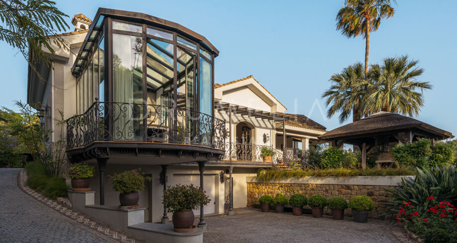 La propiedad de 1.103 m² está enclavada en una gran parcela de5.922 m² con exhuberantes jardines . En un ambiente muy tranquilo. Rodeada de bosques protegidos y propiedades de lujo de La Zagaleta, disfruta de las tranquilizadoras vistas de las colinas y valles, con África y Gibraltar. El arquitecto cordobés Liñán Guijarro ha conseguido integrar armoniosamente diseñada en la naturaleza que la rodea. La casa está muy bien pensada, tiene 3 plantas y amplias escaleras que le dan una buena fluidez. Un acogedor vestíbulo da paso al salón principal con zona de comedor independiente. Las chimeneas abiertas y los generosos techos crean un ambiente lujoso y cálido. La cocina de campo Clive Christian cuenta con un alto nivel de equipamiento y la placa Lacanache que invita a cocinar con la familia y los invitados. Junto a la cocina se encuentra la zona de comedor con paredes y techo de cristal. Las generosas zonas de estar están conectadas con acogedoras terrazas que conducen al jardín y a diversas zonas al aire libre.