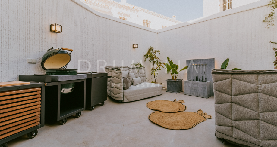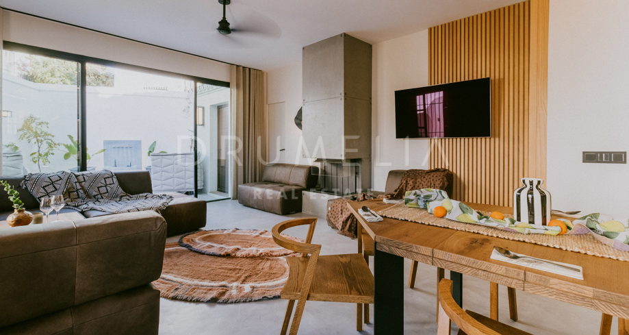 Esta luminosa y acogedora casa adosada reformada de tres dormitorios combina con gran acierto el encanto del diseño andaluz tradicional con una estética contemporánea cuidadosamente actualizada. Situada en una ubicación privilegiada, a pocos pasos de todos los servicios y muy cerca del emblemático Puente Romano, en la Milla de Oro de Marbella, ofrece un estilo de vida cómodo y sofisticado en uno de los entornos más deseados de la Costa del Sol.