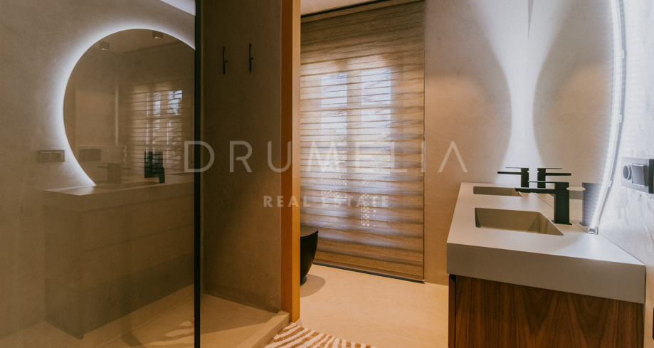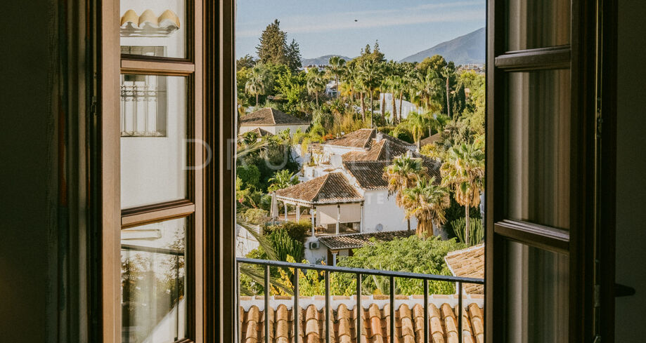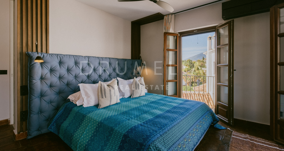 En la planta superior se conserva el suelo original, aportando carácter y autenticidad a la vivienda tras la reforma. La suite principal cuenta con un encantador balcón tipo Juliet con vistas agradables y un baño en suite cuidadosamente diseñado. Un segundo dormitorio también en suite dispone de una acogedora zona de estar, mientras que el tercer dormitorio, actualmente reconvertido, ofrece versatilidad como habitación de invitados, despacho o espacio de almacenamiento. Una propiedad reformada con sensibilidad, ideal para quienes buscan una vivienda con estilo atemporal y confort moderno en el corazón de Marbella.