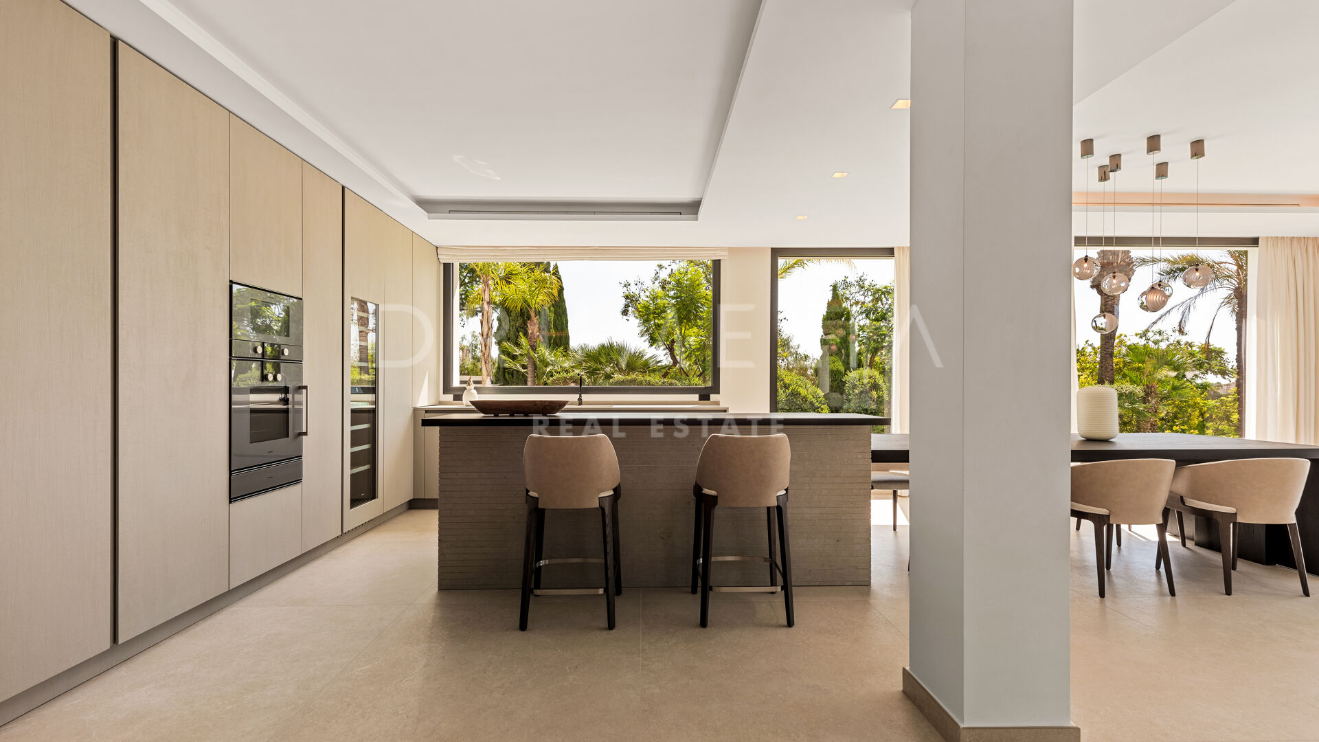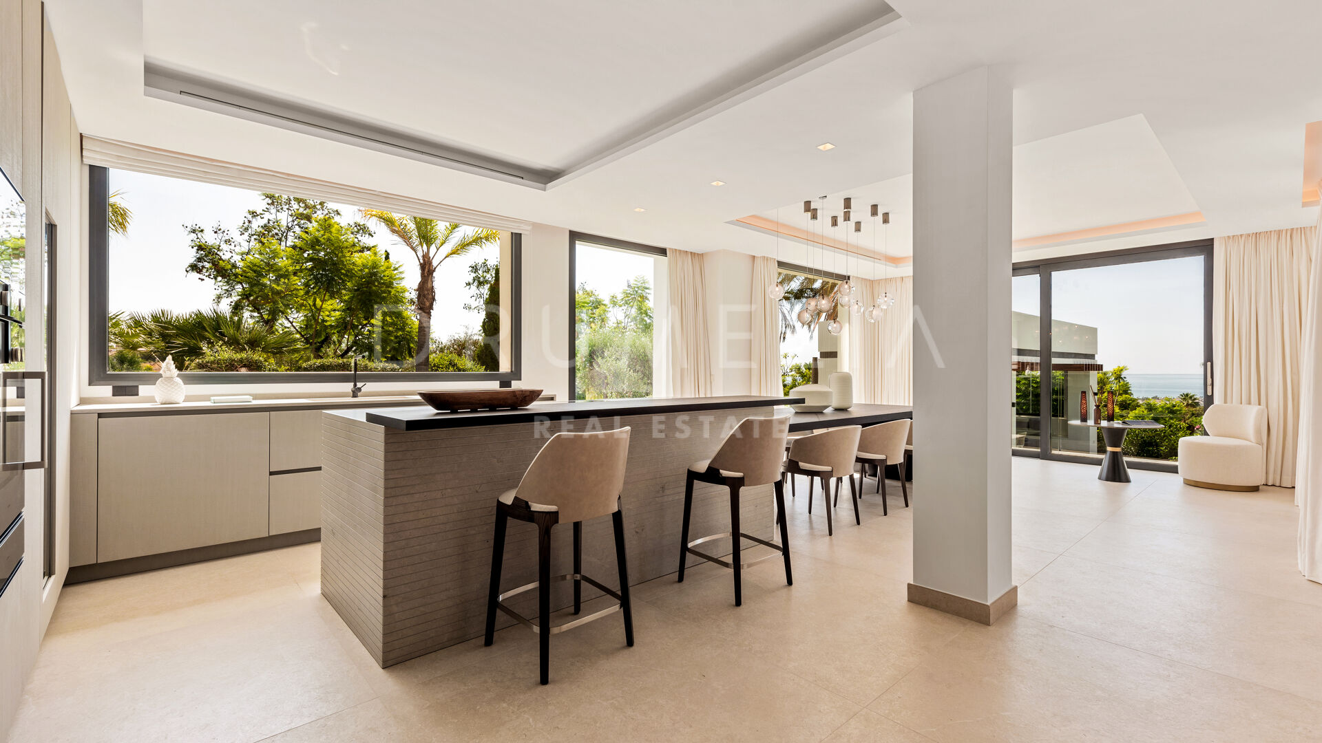 Situada en la prestigiosa zona de Los Flamingos, la villa está convenientemente cerca de la playa, de renombrados campos de golf y de multitud de opciones recreativas. Con puertas de cristal y una cocina de planta abierta, esta moderna joya combina a la perfección los espacios de vida interiores y exteriores.