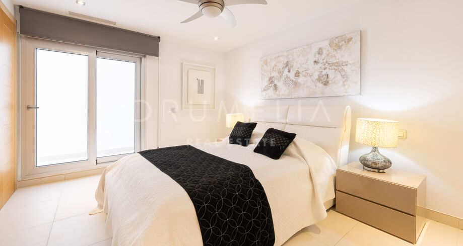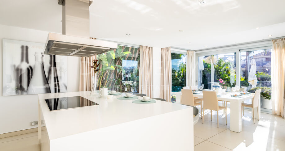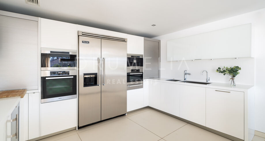 Exudando verdadero chic moderno, esta propiedad ecológica en Nueva Andalucía sale a la venta en excelentes condiciones, con trastero, aire acondicionado, doble acristalamiento, armarios empotrados, puertas de cristal, luces LED, calefacción por suelo radiante y otras características. Un video portero, servicio de seguridad 24 h y alarma le darán tranquilidad.