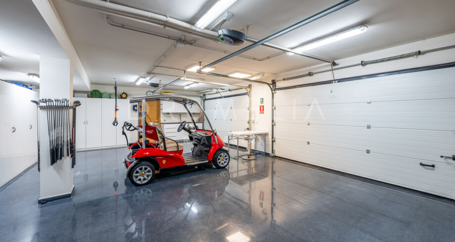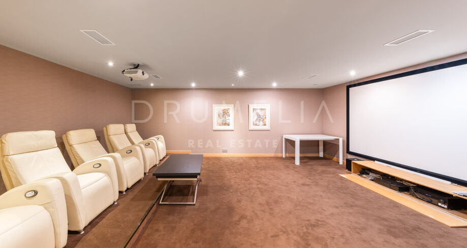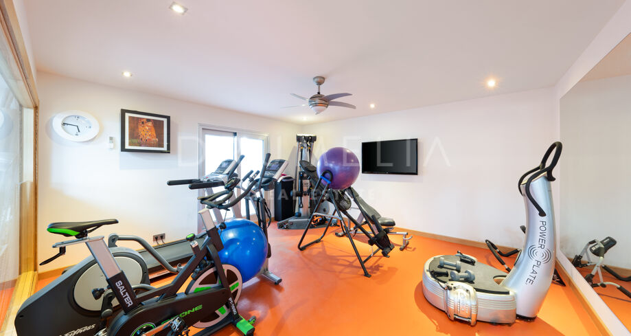 Una escalera flotante de estilo industrial resulta moderna y elegante. En la planta superior hay 2 dormitorios con baño propio. Ambas suites tienen terrazas privadas con vistas al campo de golf, lo que crea un telón de fondo sereno y hermoso. El nivel inferior es un enclave de indulgencia, que alberga 2 dormitorios adicionales, un gimnasio bien equipado e instalaciones de sauna para aquellos que dan prioridad a su bienestar. Los amantes del cine tienen a su disposición una sala de cine. Un espacioso garaje puede albergar 2 de sus coches. El meticuloso jardín, las amplias terrazas y las zonas al aire libre están perfectamente diseñados para disfrutar del mundialmente famoso estilo de vida mediterráneo y del fabuloso clima de la Costa del Sol, considerado el mejor de la Europa continental. Invitan a celebrar reuniones al aire libre con familiares y amigos, y momentos de ocio junto a la piscina y el jacuzzi, mientras se sumerge en las sobrecogedoras vistas que le envuelven.