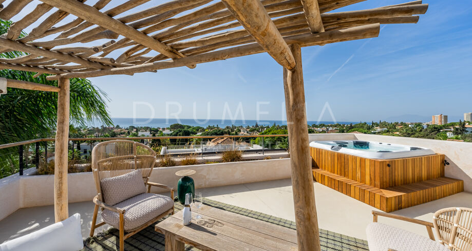 Encantadora villa con un exótico ambiente de resort e impresionantes vistas al mar en Marbesa