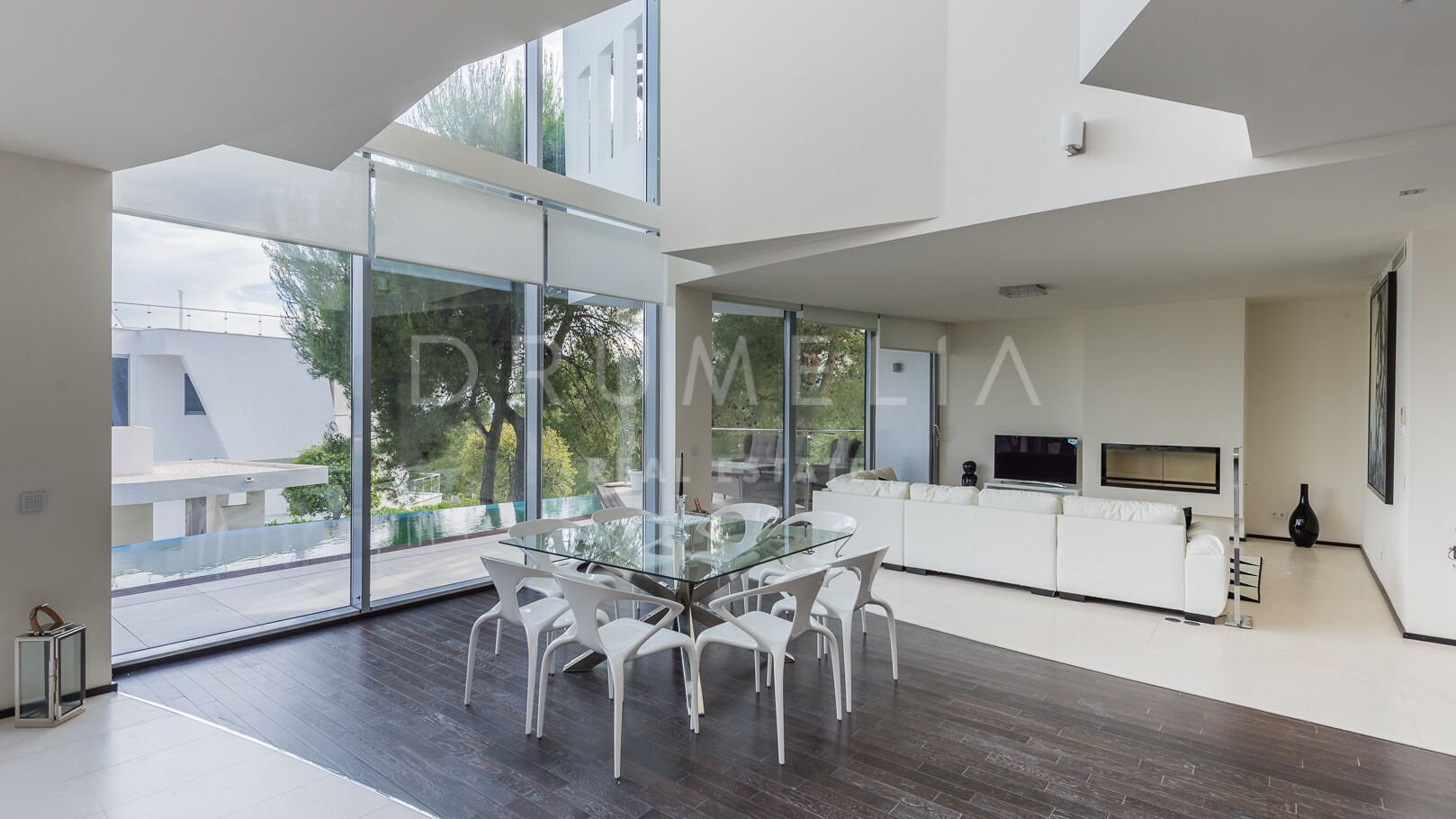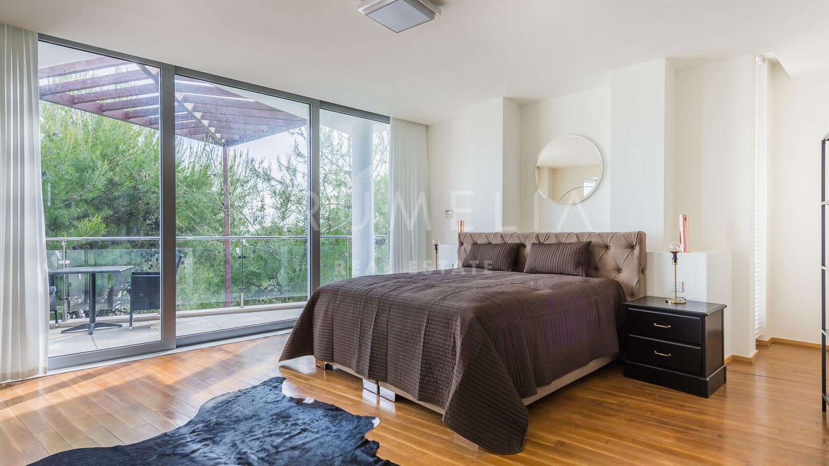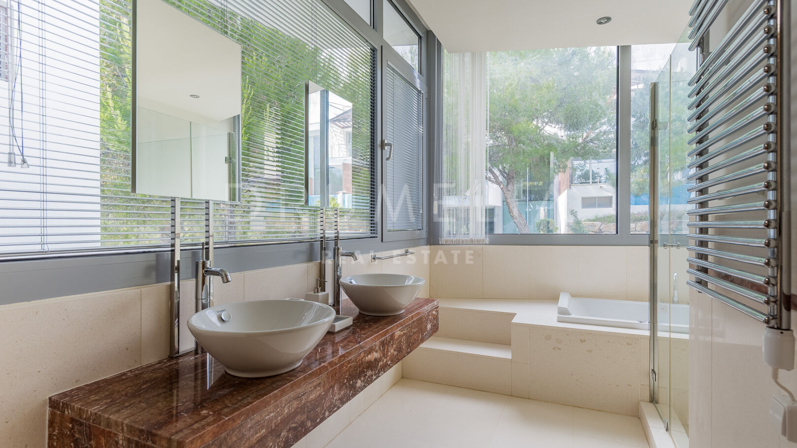La moderna casa de 860 m² ofrece un espacio vital flexible con un amplio salón de planta abierta con techo de doble altura, una elegante cocina en blanco y negro y un comedor, 5 dormitorios con balcones y 5 modernos baños, 1 aseo de invitados, garaje, amplias terrazas con salones y una piscina infinita. Promueve la funcionalidad actualizada y el diseño de moda con una cuidadosa atención a los detalles contemporáneos: un concepto de planta abierta, abundancia de luz natural y cristal, paleta de colores neutros restringida por el estilo contemporáneo, líneas limpias y fuertes formas geométricas, emocionantes escaleras de moda. La propiedad goza de unas vistas espectaculares del exuberante entorno verde, la gran piscina, la emblemática montaña de La Concha y unas inolvidables vistas panorámicas al mar.
