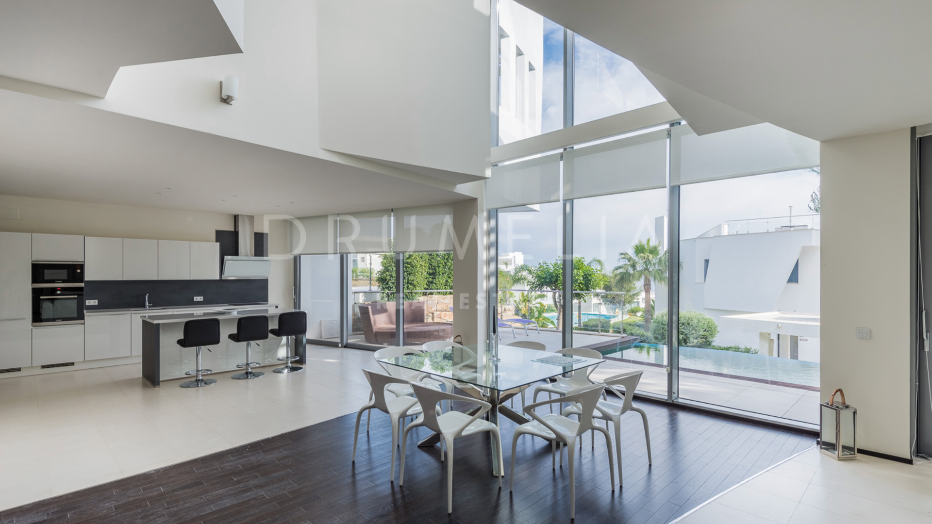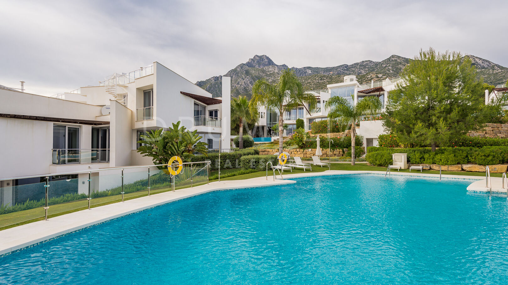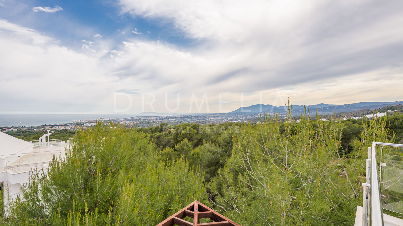 Esta impresionante e innovadora casa adosada con una elegante fachada asimétrica irregular y 89 m² de terrazas está situada en la exclusiva urbanización privada de Sierra Blanca, en la Milla de Oro de Marbella. Se trata de una de las direcciones más conocidas de Marbella y de toda la región mediterránea. Impresionante, elegante y única en muchos sentidos, esta propiedad ofrece unos estándares, un diseño y una calidad excepcionales, con mucha luz natural, soluciones de iluminación ergonómicas de los diseñadores, formas claras y líneas geométricas, una paleta de colores contemporánea y detalles que crean una imagen muy moderna y un ambiente elegante. La maravillosa residencia está enclavada en el entorno natural de la urbanización cerrada de la ladera de la montaña, en una de las zonas más deseadas de Marbella, con la proximidad de propiedades de alta gama, a sólo unos minutos del glamuroso Puerto Banús, el casco antiguo de Marbella, excelentes playas de arena, incluso galardonadas con Banderas Azules ecológicas, colegios internacionales y todo tipo de servicios que puede ofrecer la prestigiosa y hermosa Costa del Sol. La propia urbanización cuenta con hermosos jardines subtropicales, un gimnasio, una sauna, un baño turco y 3 piscinas comunitarias, una de ellas climatizada.