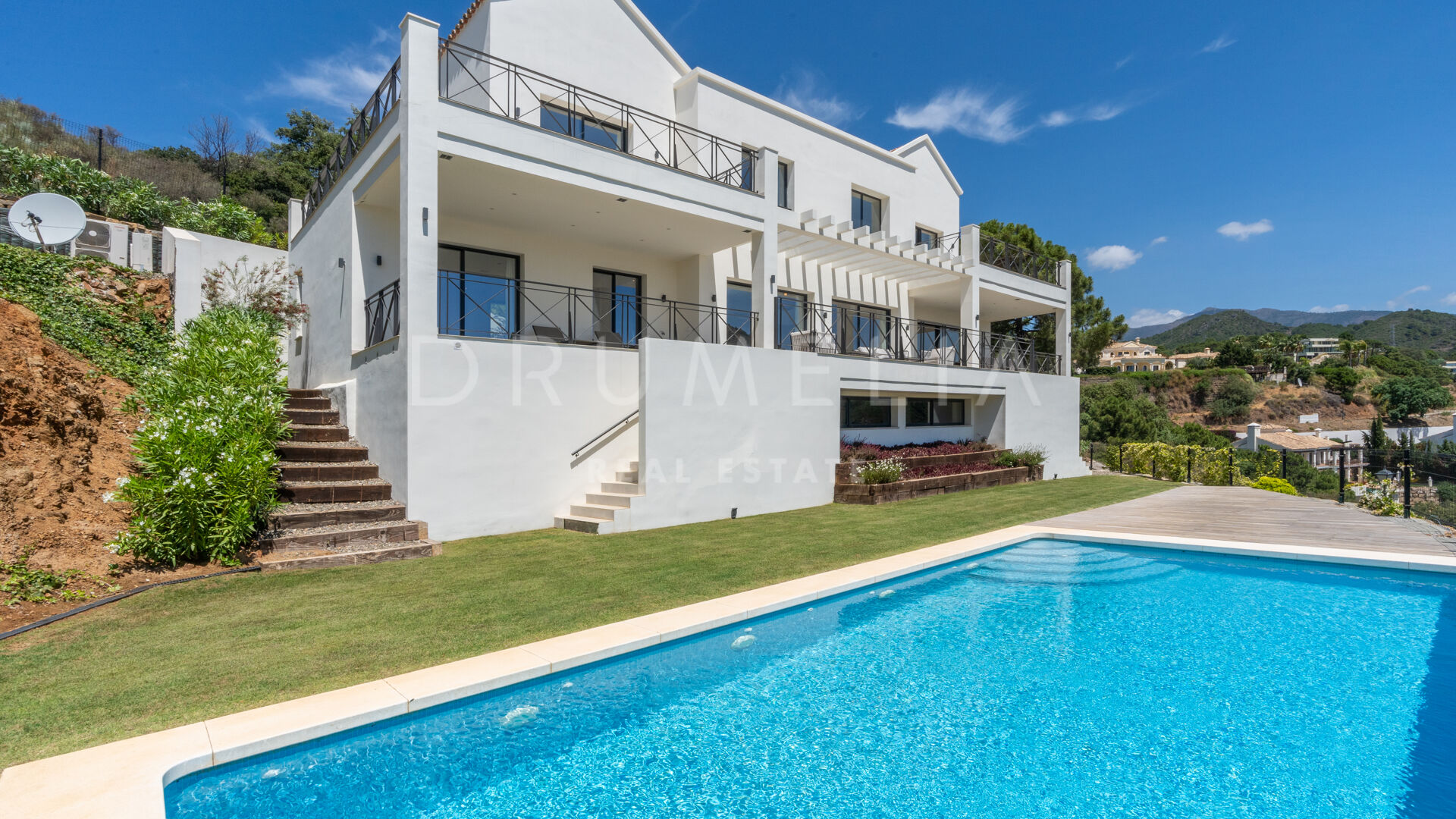 Ubicada dentro del complejo de golf cerrado con entrada controlada y servicio de seguridad 24 horas, la impresionante propiedad está diseñada como parte integrante del paisaje. Está rodeada de una exuberante vegetación y de propiedades de lujo similares de Monte Mayor, que se extiende por más de 330 hectáreas de terreno con una construcción de baja densidad. Permite a los propietarios disfrutar de la naturaleza, el espacio y la privacidad, pero estar a menos de 15 minutos en coche de la animada costa y los centros turísticos más populares. Los clubes de tenis y campos de golf de primera categoría, las playas con bandera azul, los elegantes clubes de playa, los bares y restaurantes de moda, las boutiques de diseño, el fabuloso Puerto Banús, San Pedro, Estepona, Benahavís y Marbella, todo está cerca.