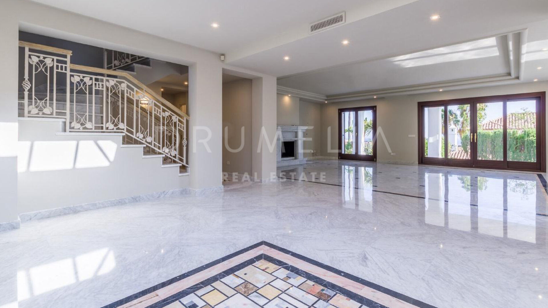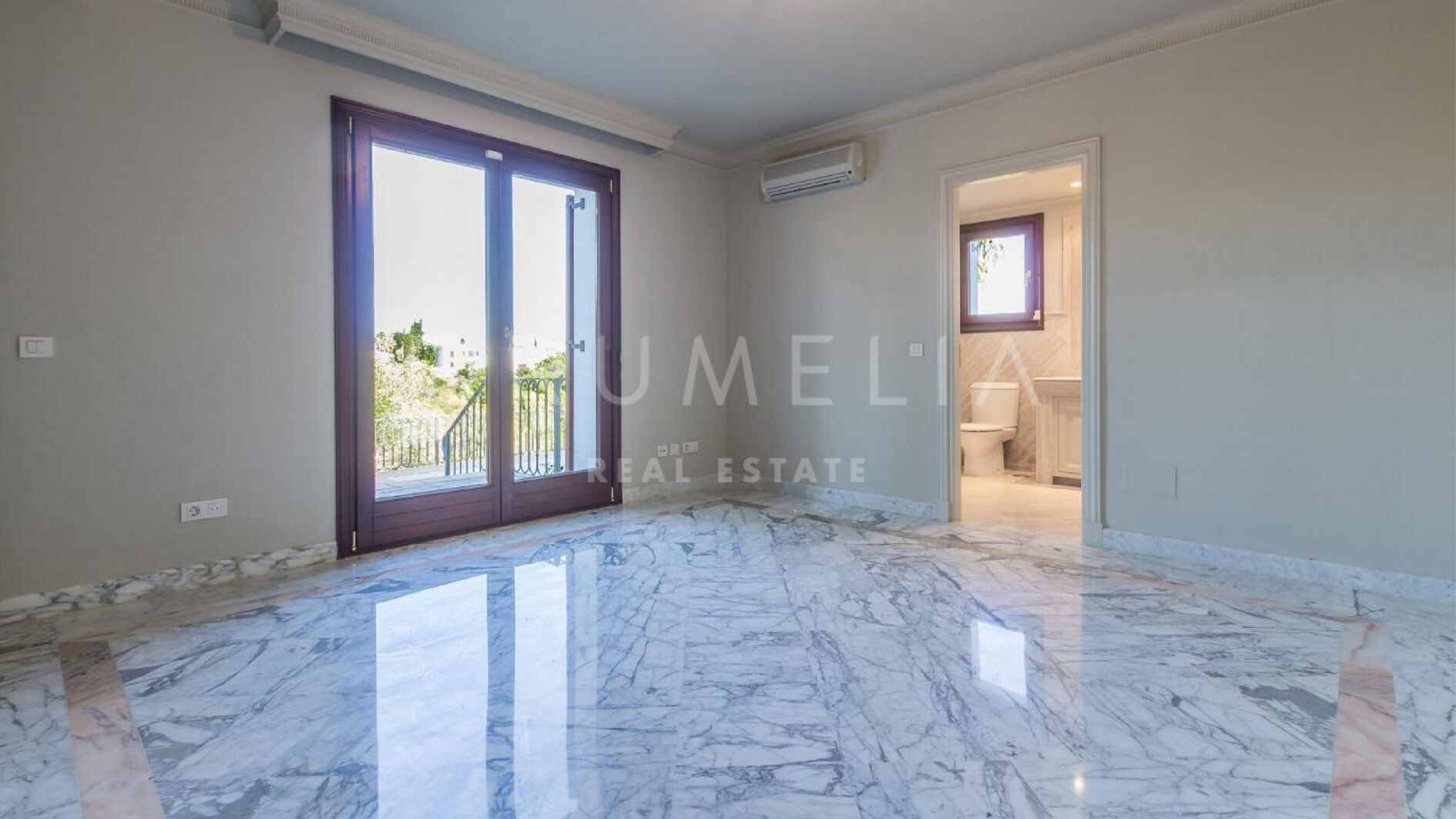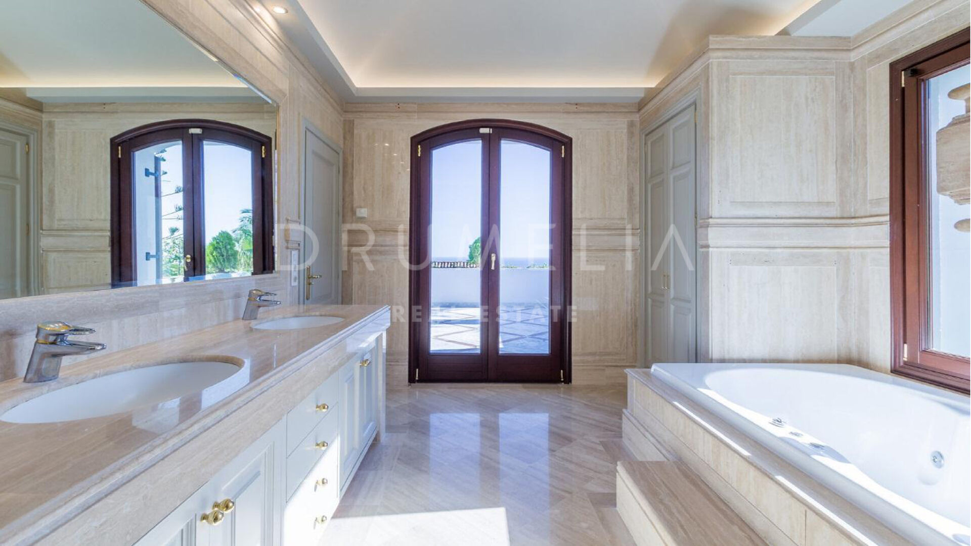 La propiedad de 590 m² con vistas despejadas a la montaña, al golf y al mar está situada en una parcela de 1.187 m². Su belleza arquitectónica entra en verdadera perspectiva, cautivando la vista con líneas elegantes, materiales naturales y únicos, colores serenos y agradables a la vista y detalles gradualmente perceptibles: inusuales techos suspendidos, magníficos suelos de mármol de color y arte con calefacción por suelo radiante, exquisita escalera y otros elementos que aportan encanto, carácter y atmósfera de fiabilidad y dignidad a la notable propiedad.