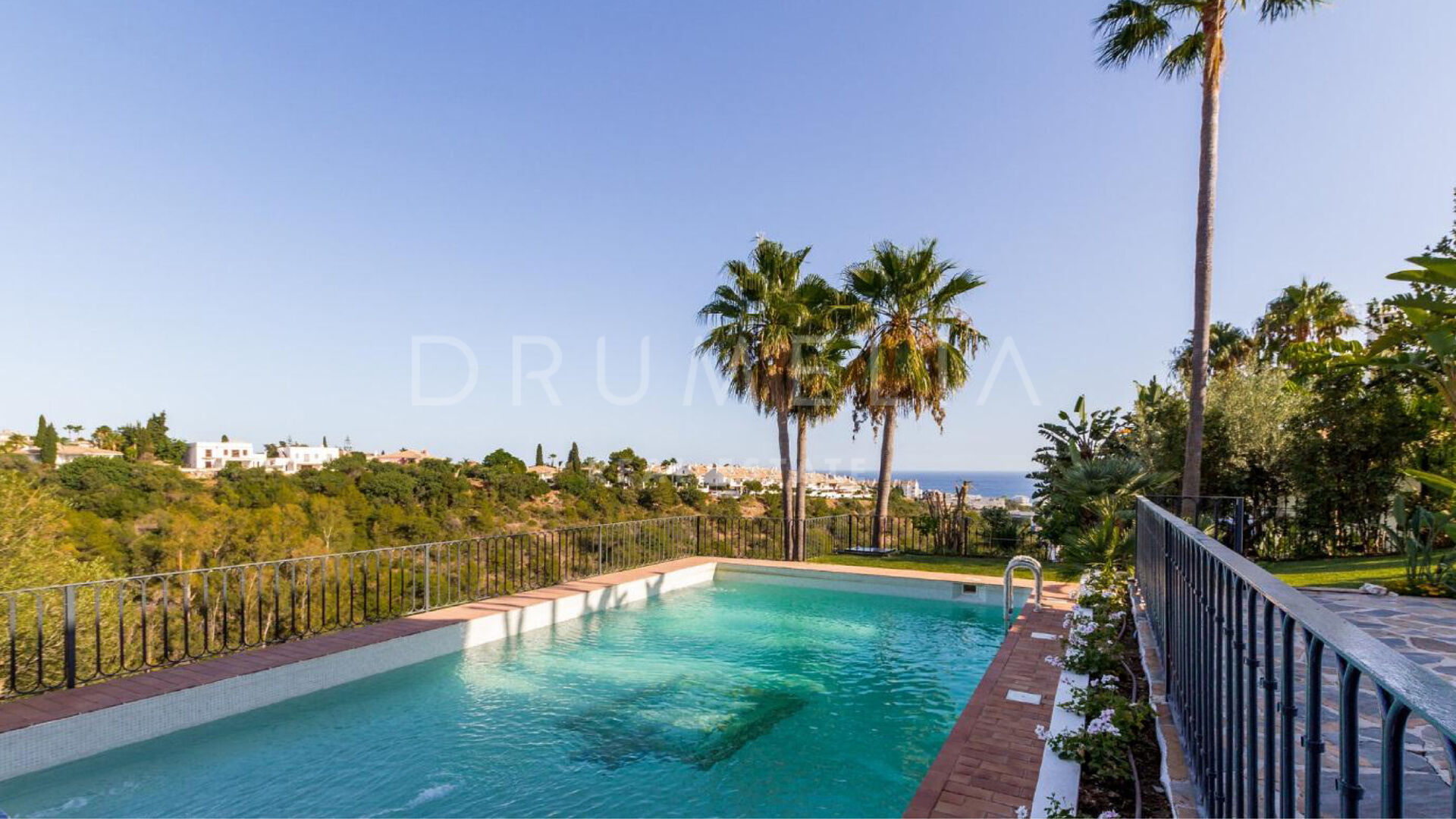 Los espacios exteriores son perfectos para la relajación y el entretenimiento durante todo el año, ofreciendo zonas chill out, un gran porche con vistas al mar y al valle circundante, un patio trasero privado donde la cocina se abre al jardín, piscina, solarium y maravillosos jardines maduros con cipreses mediterráneos, dracenas y yucas, altas palmeras y zonas verdes bien cuidadas. Todo ha sido cuidadosamente creado para aprovechar al máximo las excepcionales vistas hacia el Mediterráneo y el idílico paisaje andaluz.
