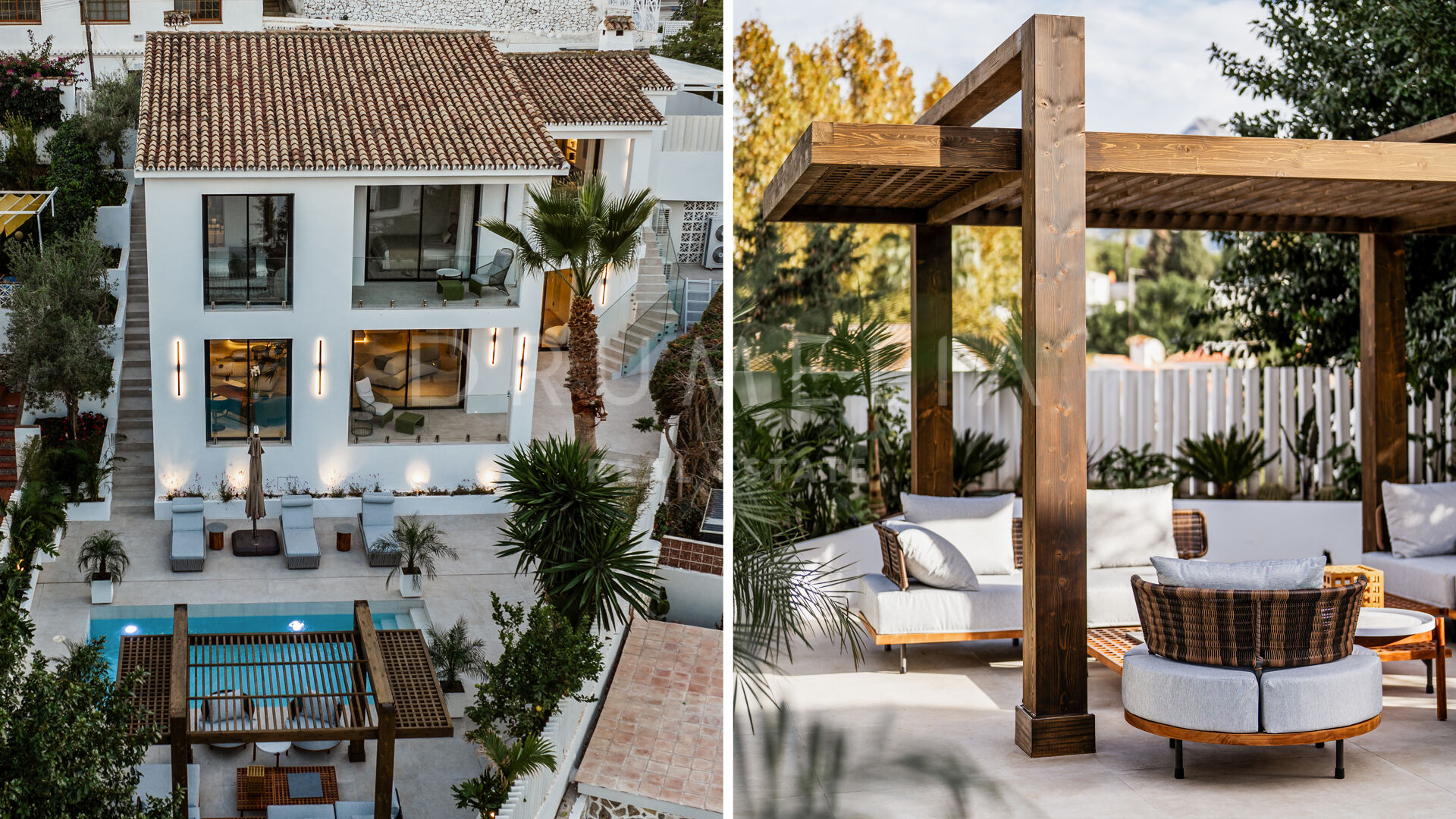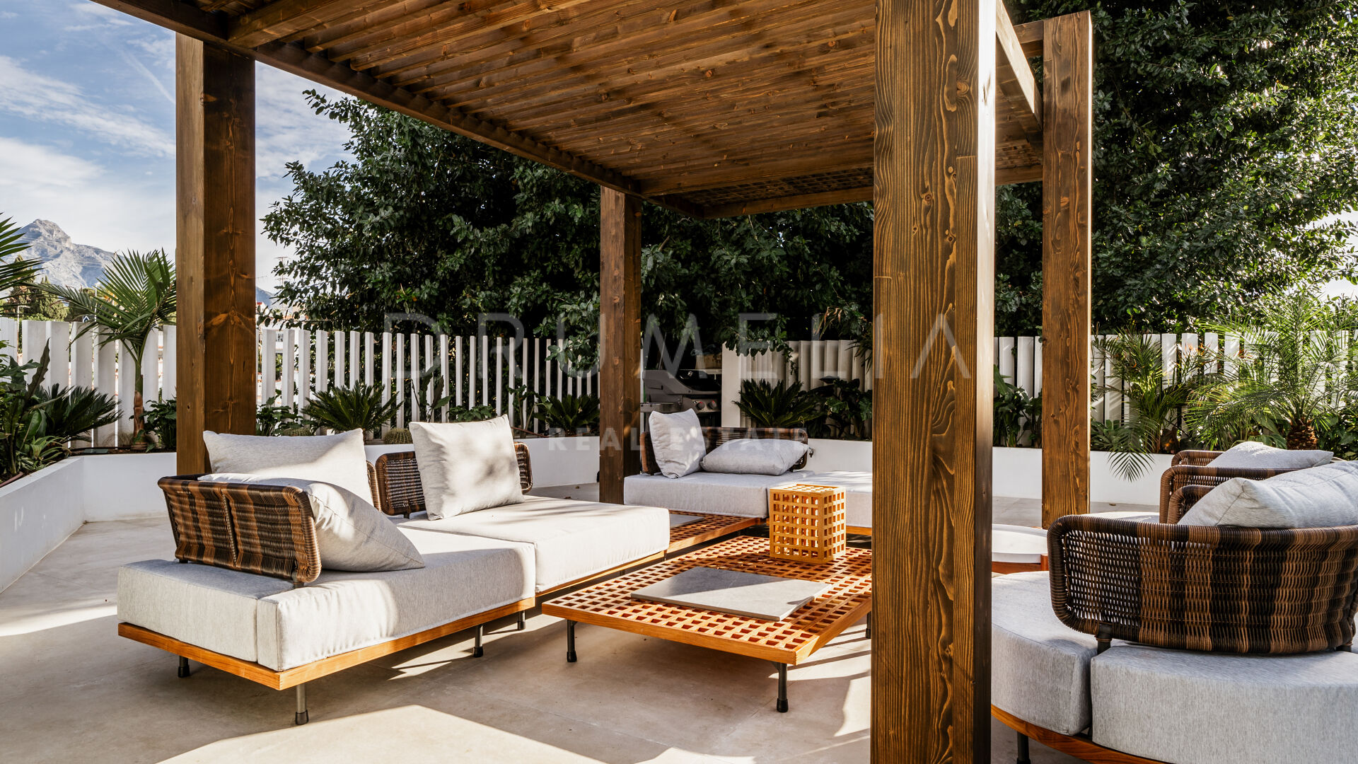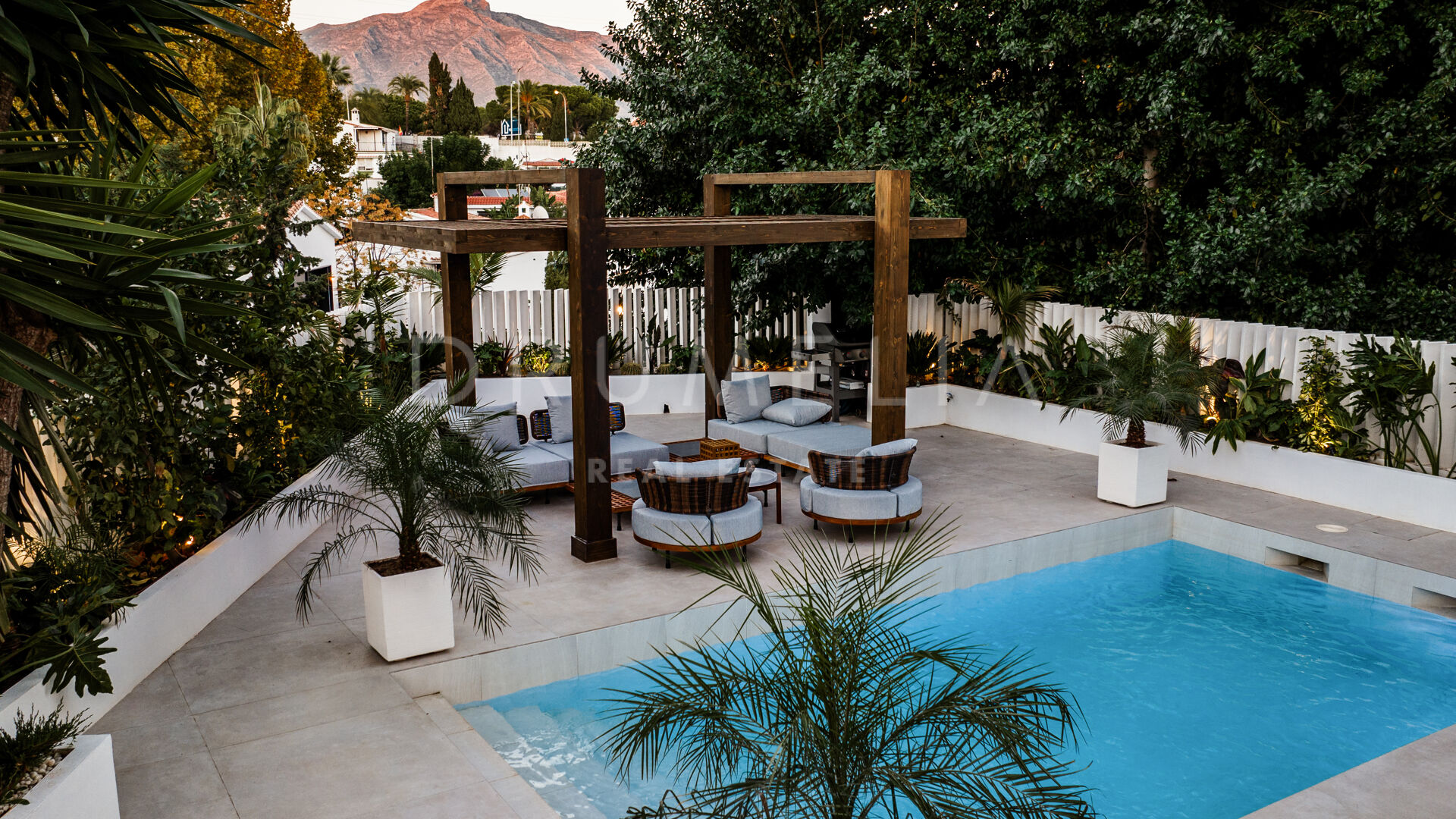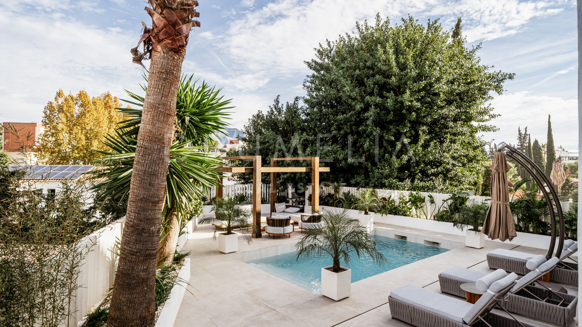 Rodeada de exuberante vegetación y propiedades similares de Nueva Andalucía, la casa de 260 m² con 166 m² de terrazas tiene una parcela privada de 506 m². Con su orientación este, disfruta al máximo del sol de la mañana y de las emblemáticas vistas a la montaña de La Concha. La residencia combina lujo y funcionalidad. Ofrece una experiencia de vida práctica y cómoda con un amplio salón y comedor, una cocina totalmente equipada y con estilo, 5 dormitorios serenos y bellamente decorados con suelos de madera y paredes de acento, 5 baños de lujo, una sauna y un gimnasio también con hermosos suelos de madera. Las puertas correderas de cristal integran a la perfección los espacios interiores y exteriores. Se abren a las zonas para tomar el sol, de ocio, chill-out y barbacoa. Una piscina climatizada permite disfrutar de ella todo el año. Una pérgola completa este acogedor espacio. La propiedad también incluye una cochera con cargador eléctrico.