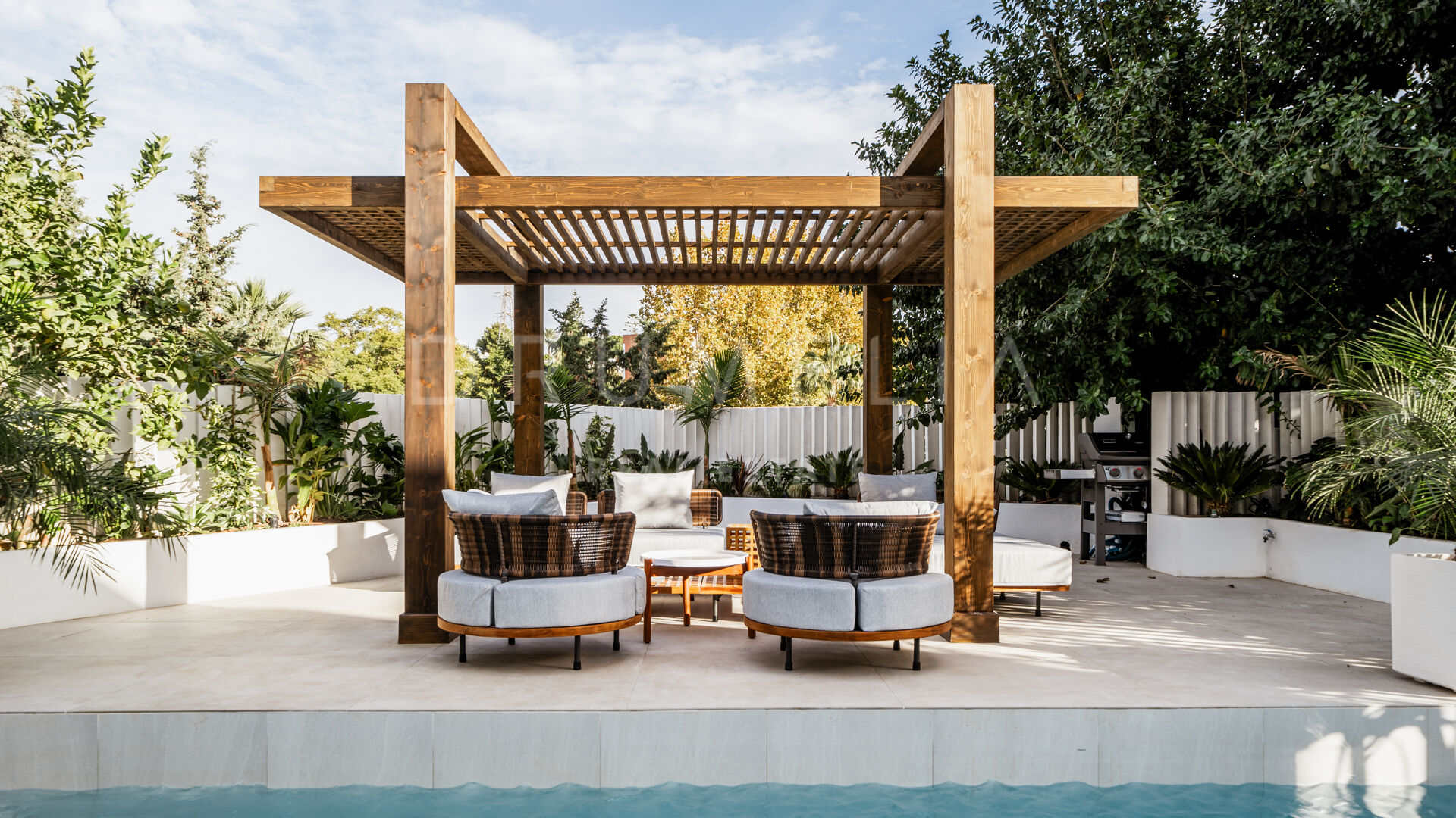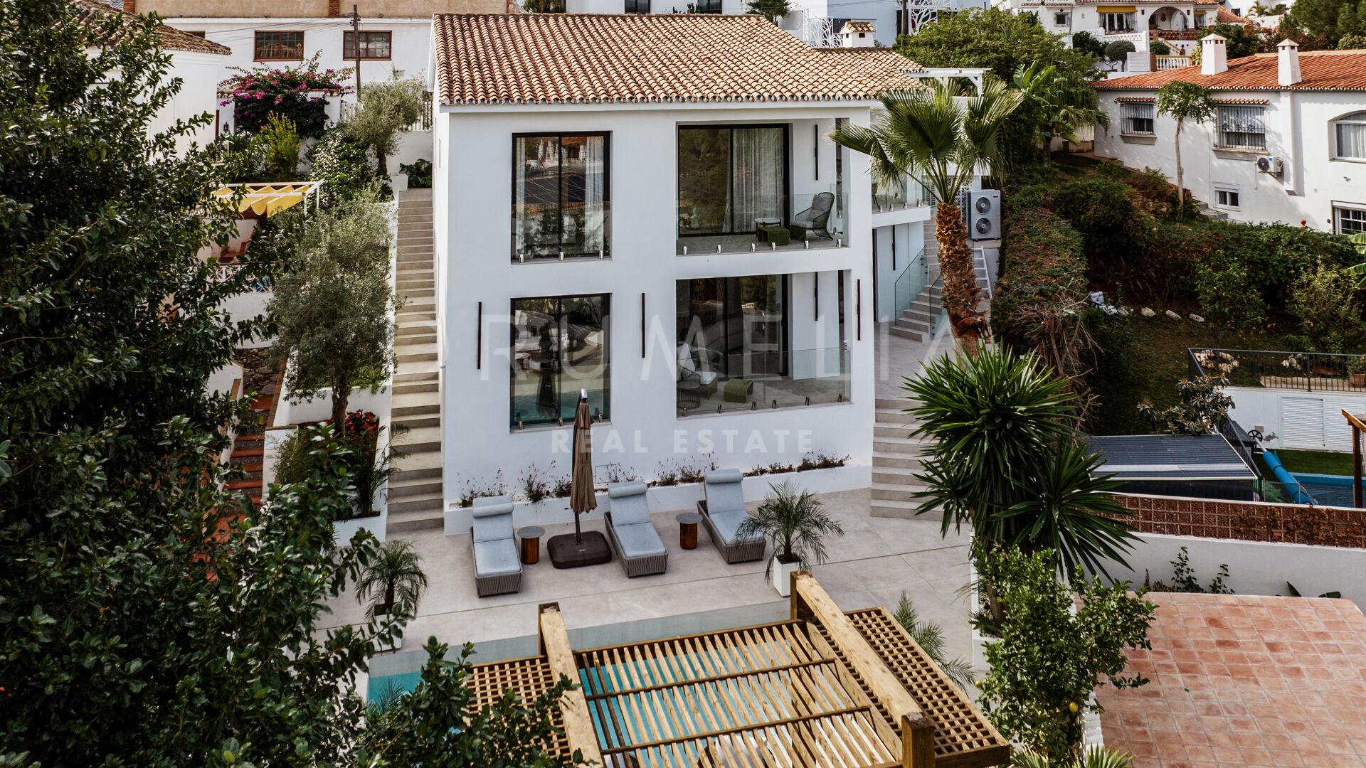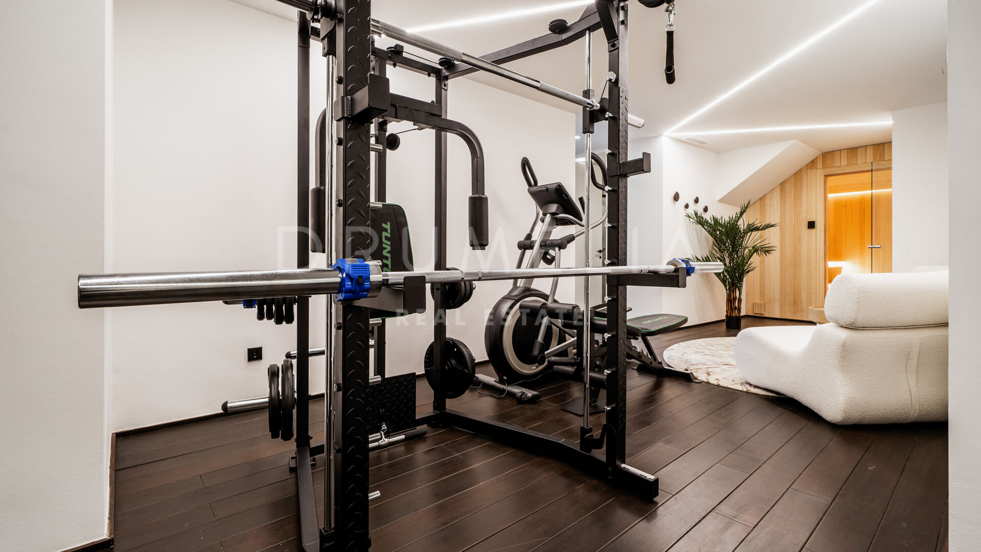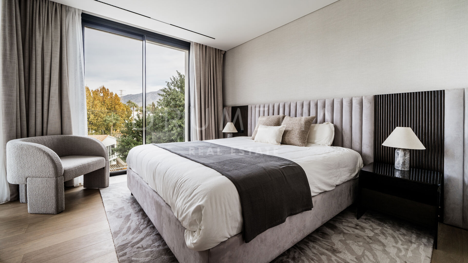 Rodeada de exuberante vegetación y propiedades similares de Nueva Andalucía, la casa de 260 m² con 166 m² de terrazas tiene una parcela privada de 506 m². Con su orientación este, disfruta al máximo del sol de la mañana y de las emblemáticas vistas a la montaña de La Concha. La residencia combina lujo y funcionalidad. Ofrece una experiencia de vida práctica y cómoda con un amplio salón y comedor, una cocina totalmente equipada y con estilo, 5 dormitorios serenos y bellamente decorados con suelos de madera y paredes de acento, 5 baños de lujo, una sauna y un gimnasio también con hermosos suelos de madera. Las puertas correderas de cristal integran a la perfección los espacios interiores y exteriores. Se abren a las zonas para tomar el sol, de ocio, chill-out y barbacoa. Una piscina climatizada permite disfrutar de ella todo el año. Una pérgola completa este acogedor espacio. La propiedad también incluye una cochera con cargador eléctrico.
