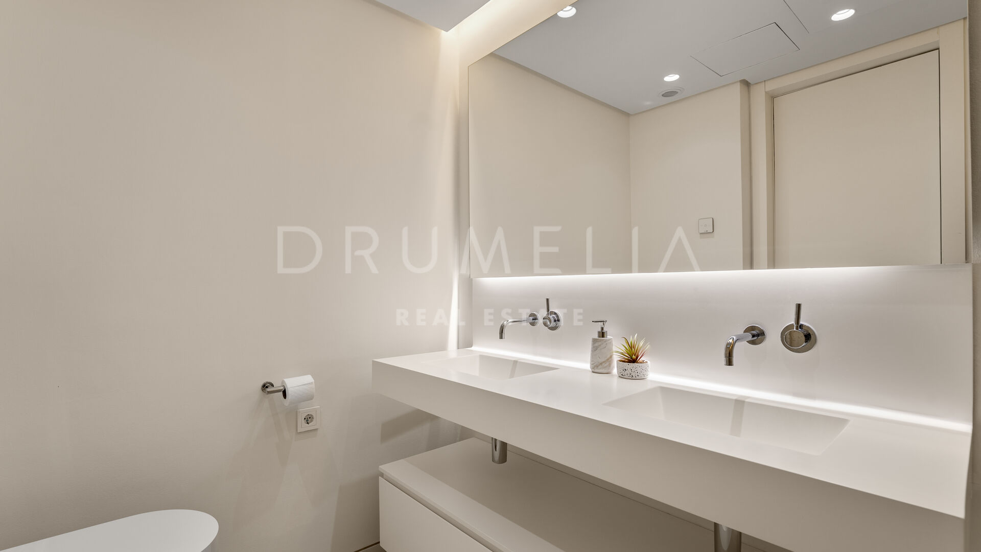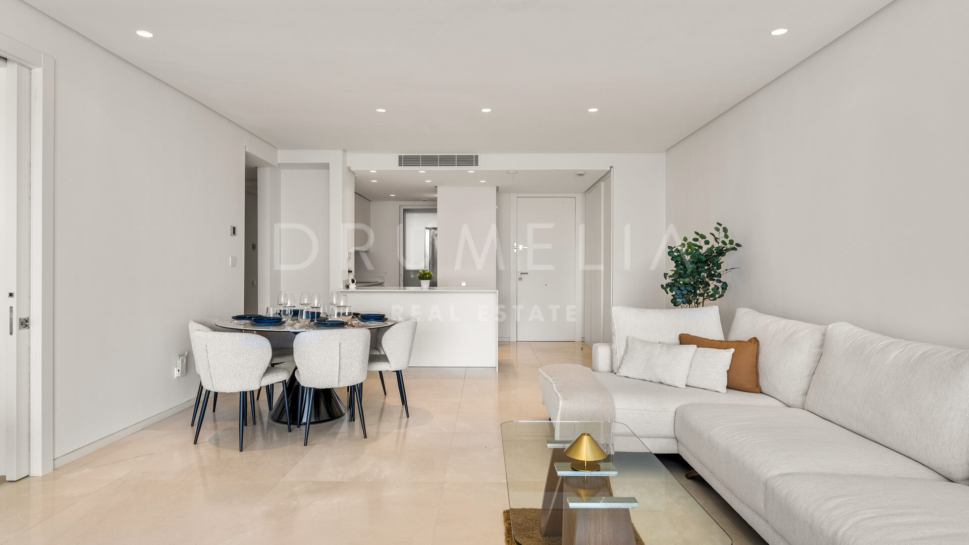 Realizado por la prestigiosa firma Villarroel-Torrico, este apartamento cuenta con refinados acabados, lujoso mobiliario y un estilo elegante y contemporáneo que ofrece comodidad y clase. Como parte de la Fase 1 de Palo Alto, la propiedad ofrece acceso a servicios excepcionales, como dos piscinas exteriores privadas de agua salada, cuidados jardines y diversas zonas de ocio.