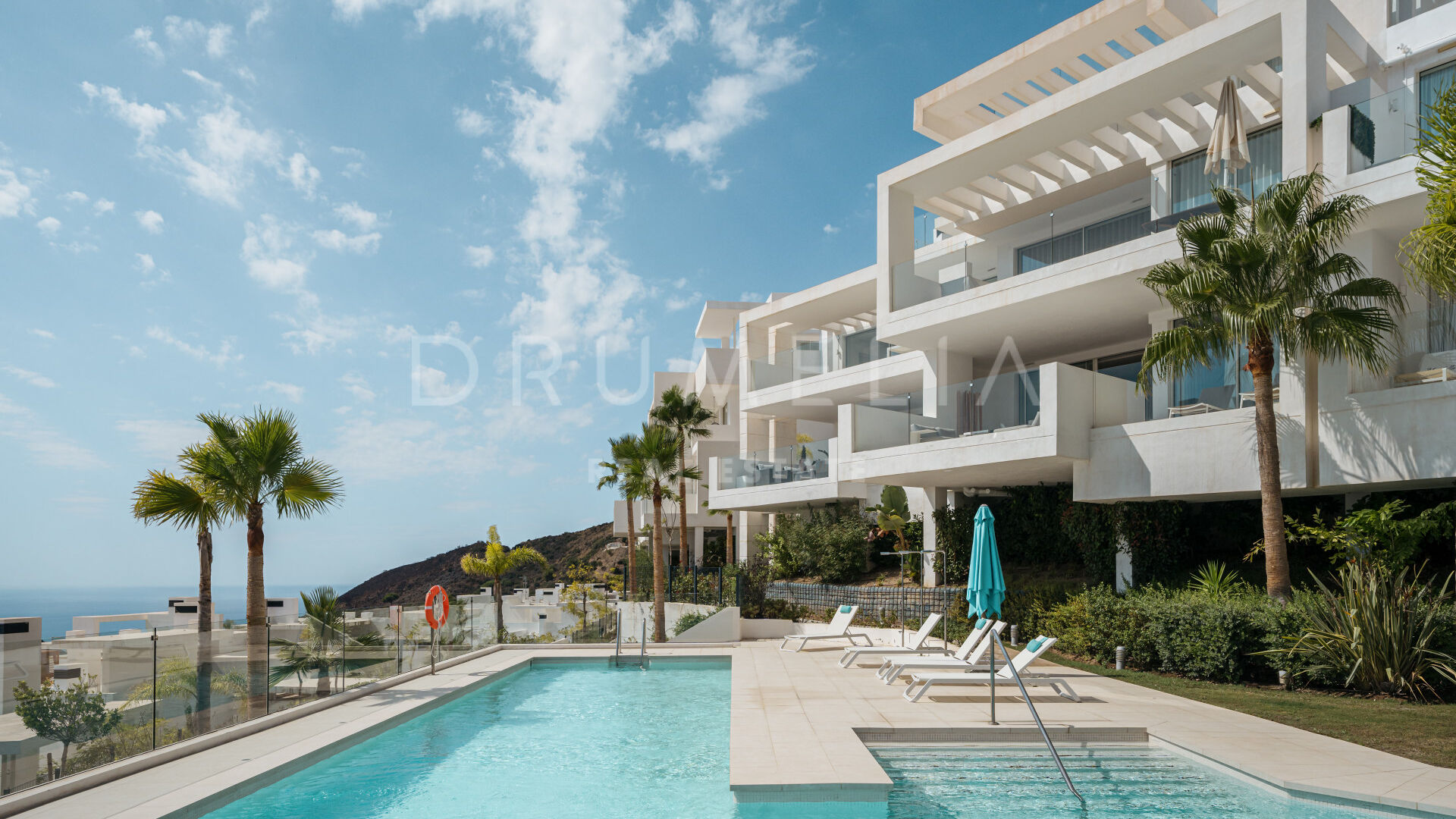 Situado en el prestigioso enclave cerrado de Palo Alto, en las pintorescas colinas de Ojén, este exquisito apartamento de 2 dormitorios y 2 baños ofrece una serena mezcla de paz y accesibilidad. A sólo 6,7 km del animado centro de Marbella, la residencia ofrece amplias vistas al mar Mediterráneo y al campo andaluz.