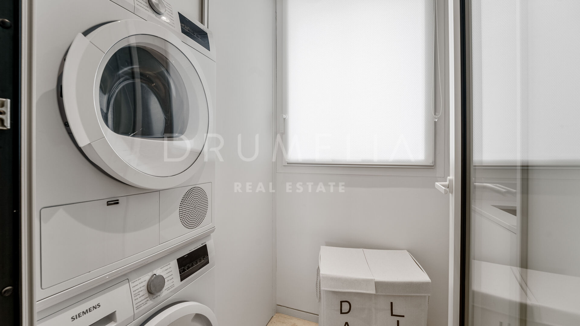 Para la seguridad, la comunidad ofrece vigilancia las 24 horas del día, un portero acogedor, cámaras de vigilancia y acceso controlado, con un sistema de alarma en el apartamento, calefacción por suelo radiante, aire acondicionado y un avanzado sistema de domótica que combinan la tecnología de vanguardia con la practicidad cotidiana. Una plaza de aparcamiento subterráneo y un trastero añaden comodidad.