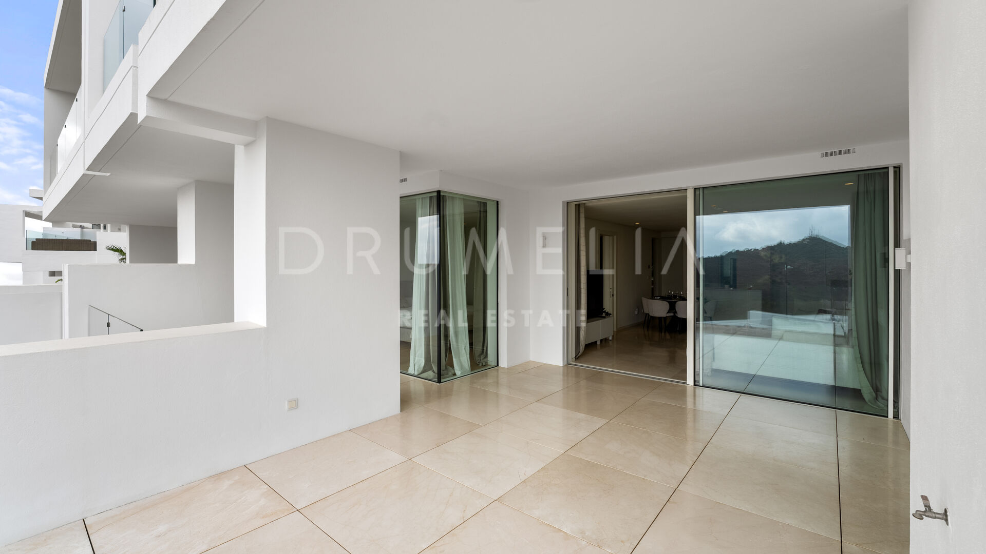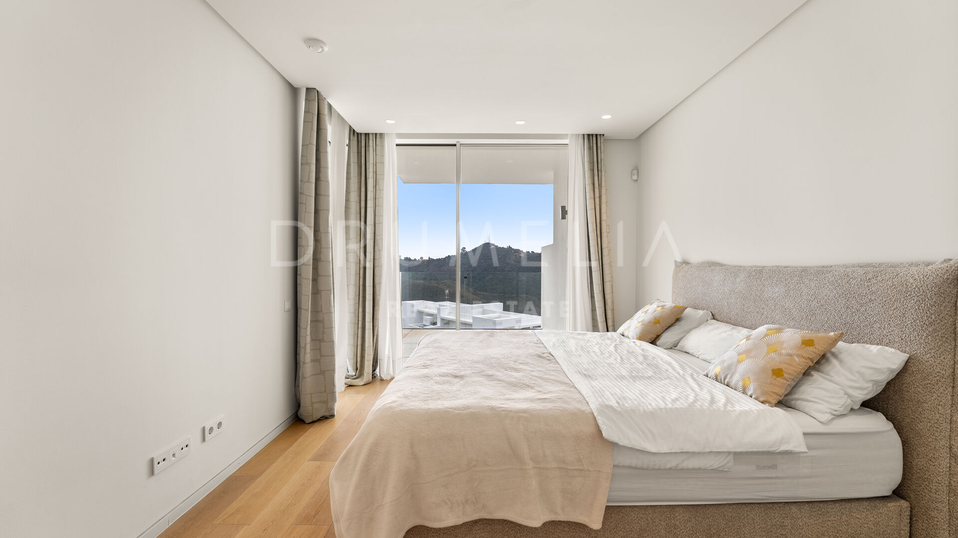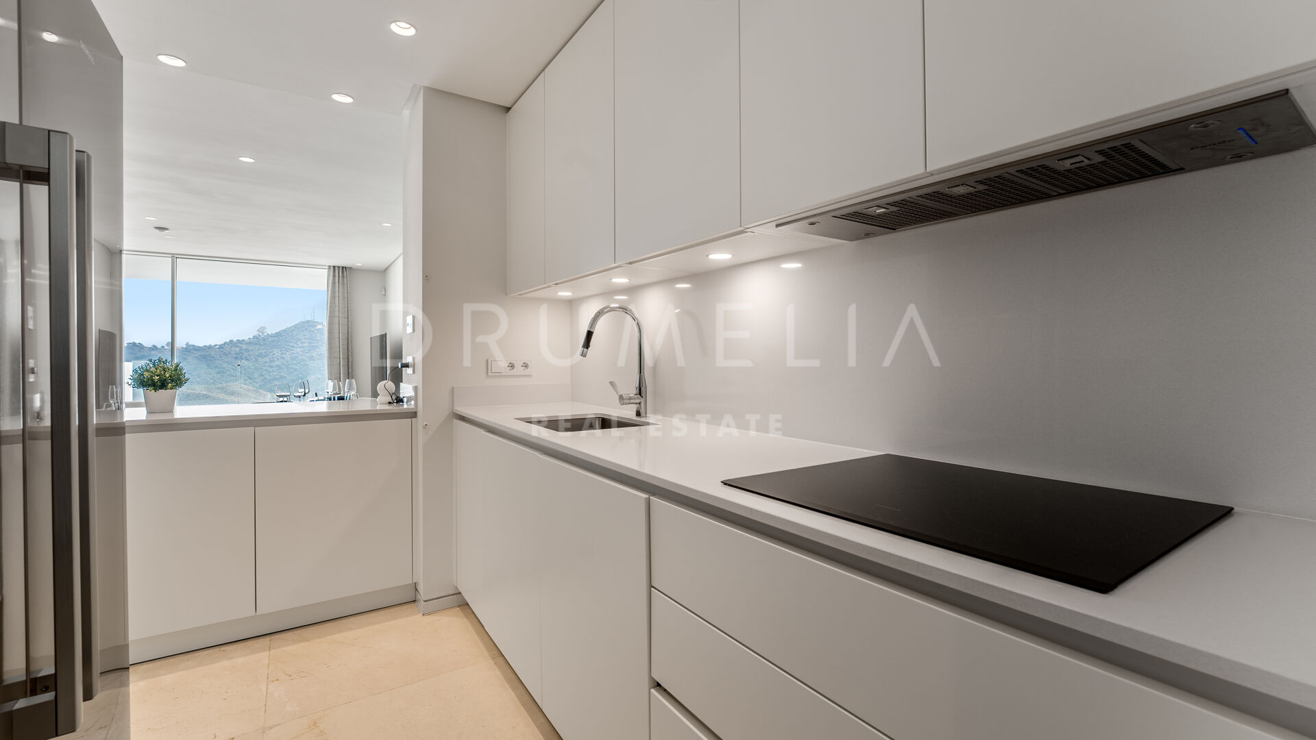 Al entrar, le recibe una distribución diáfana totalmente amueblada que muestra un salón elegantemente diseñado y una impresionante cocina Gunni & Trentino, equipada con sofisticados electrodomésticos Siemens. Los amplios ventanales Schüco comunican a la perfección el salón con una generosa terraza, donde podrá disfrutar de impresionantes vistas a la montaña y al mar. El dormitorio principal cuenta con un lujoso baño en suite, complementado por un dormitorio de invitados, un baño secundario y un práctico lavadero.