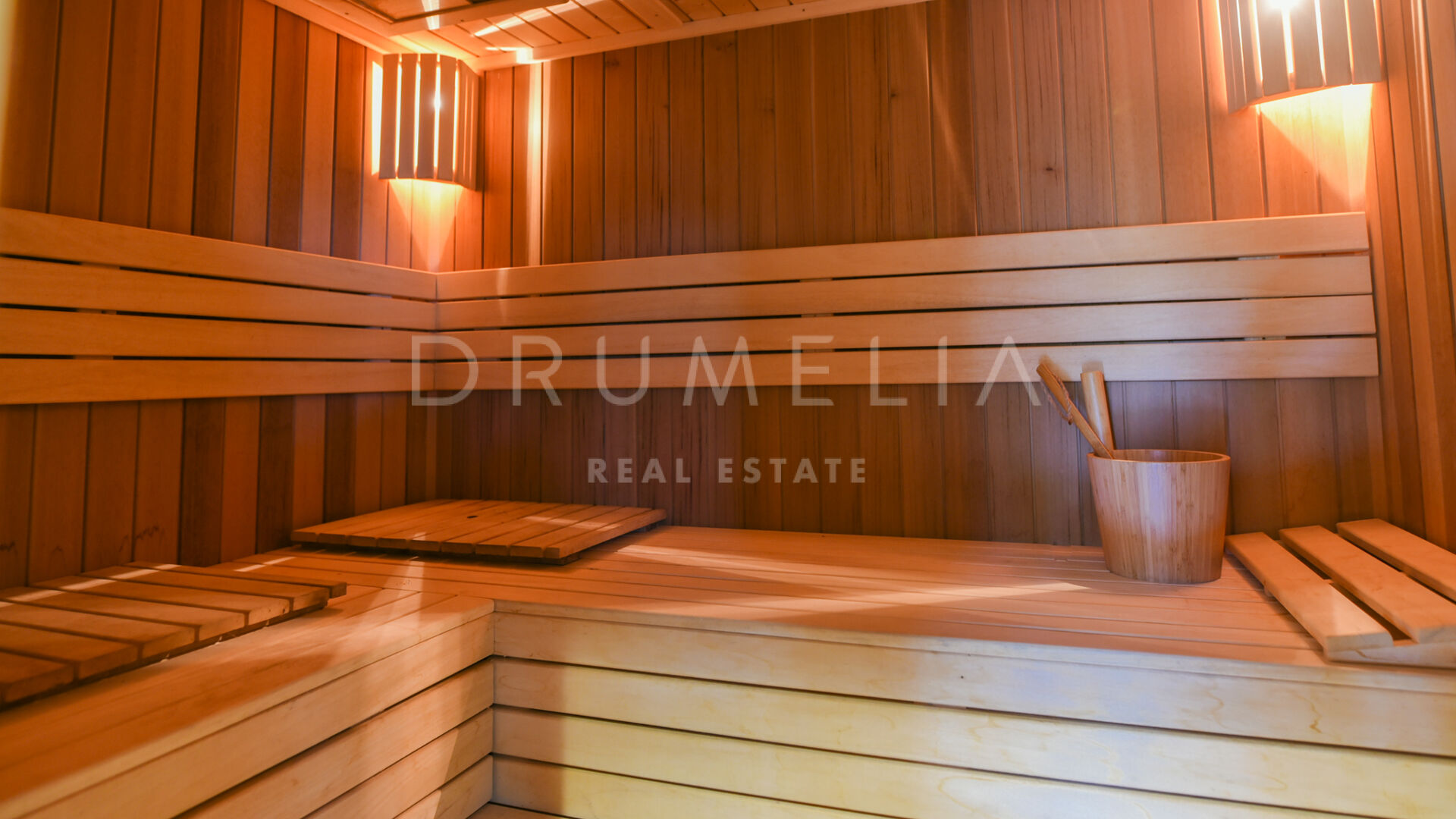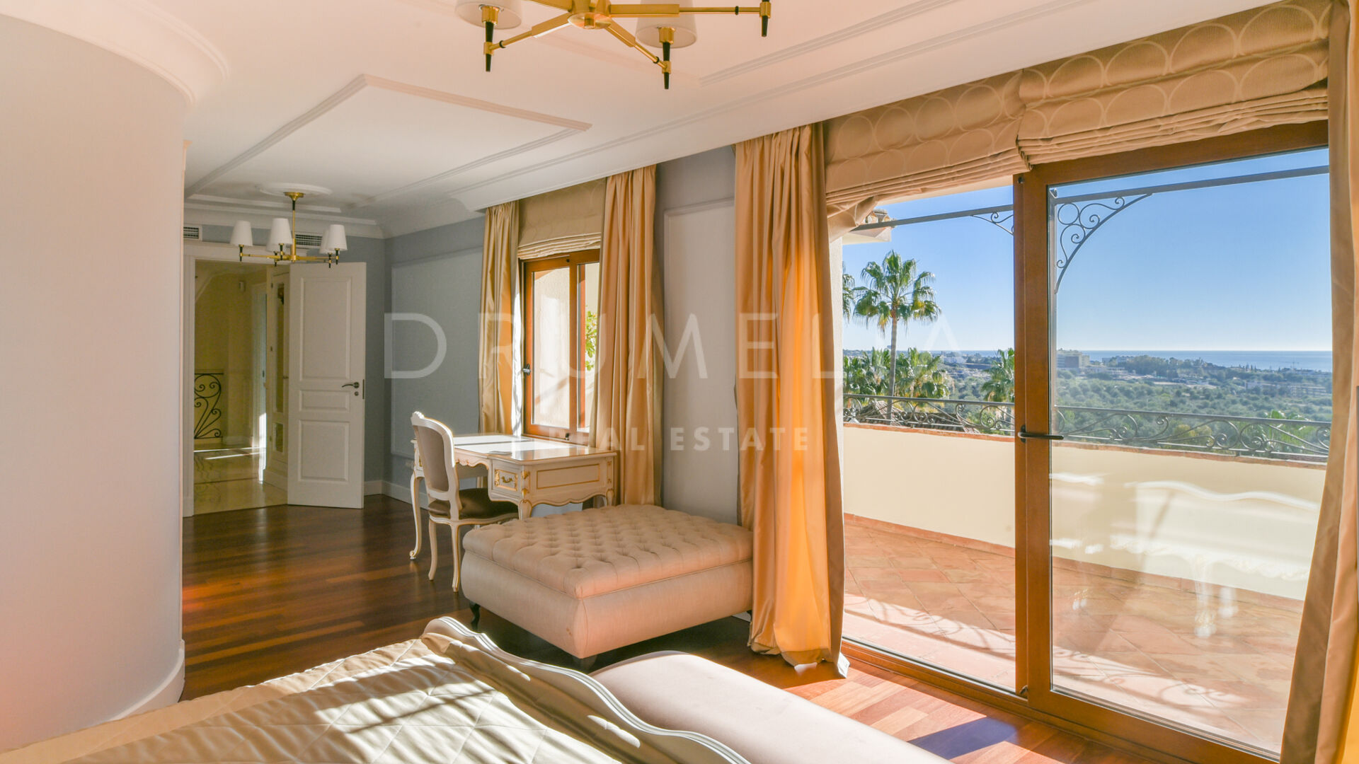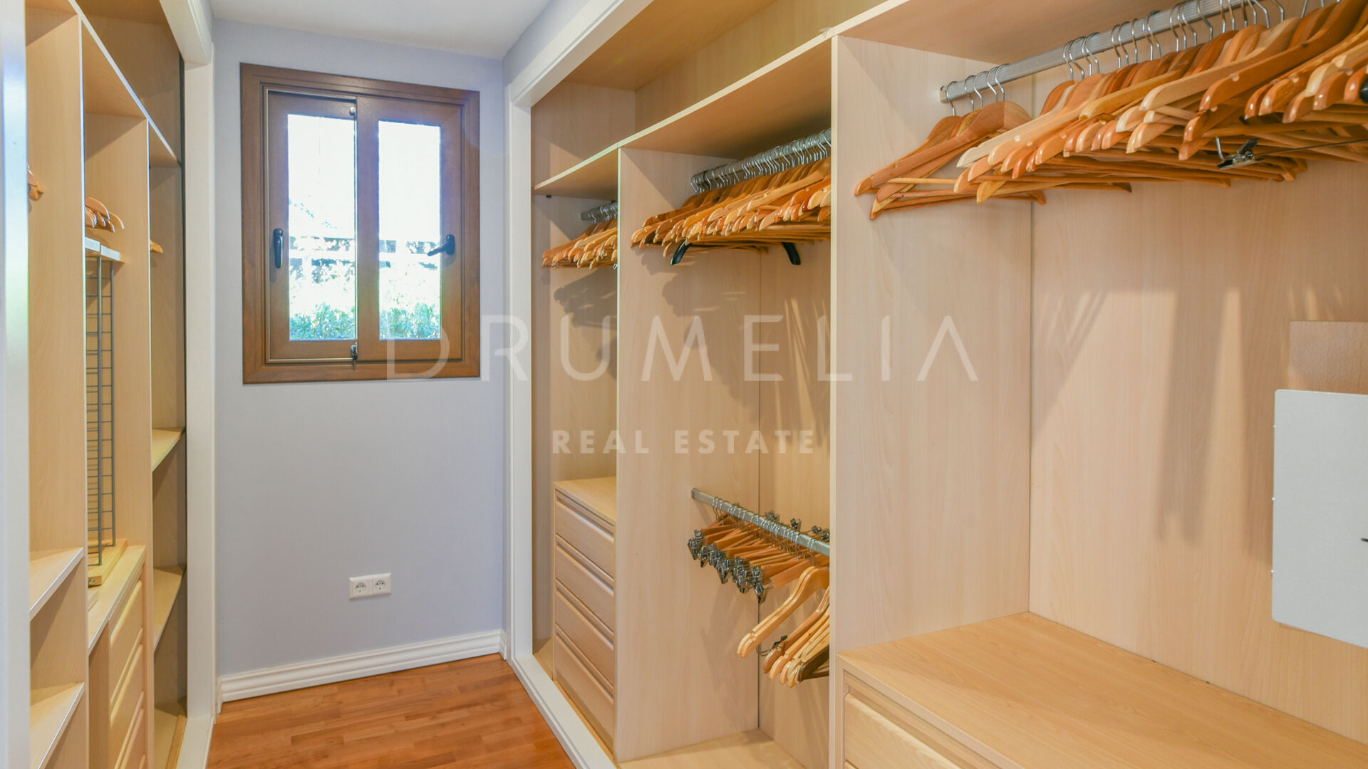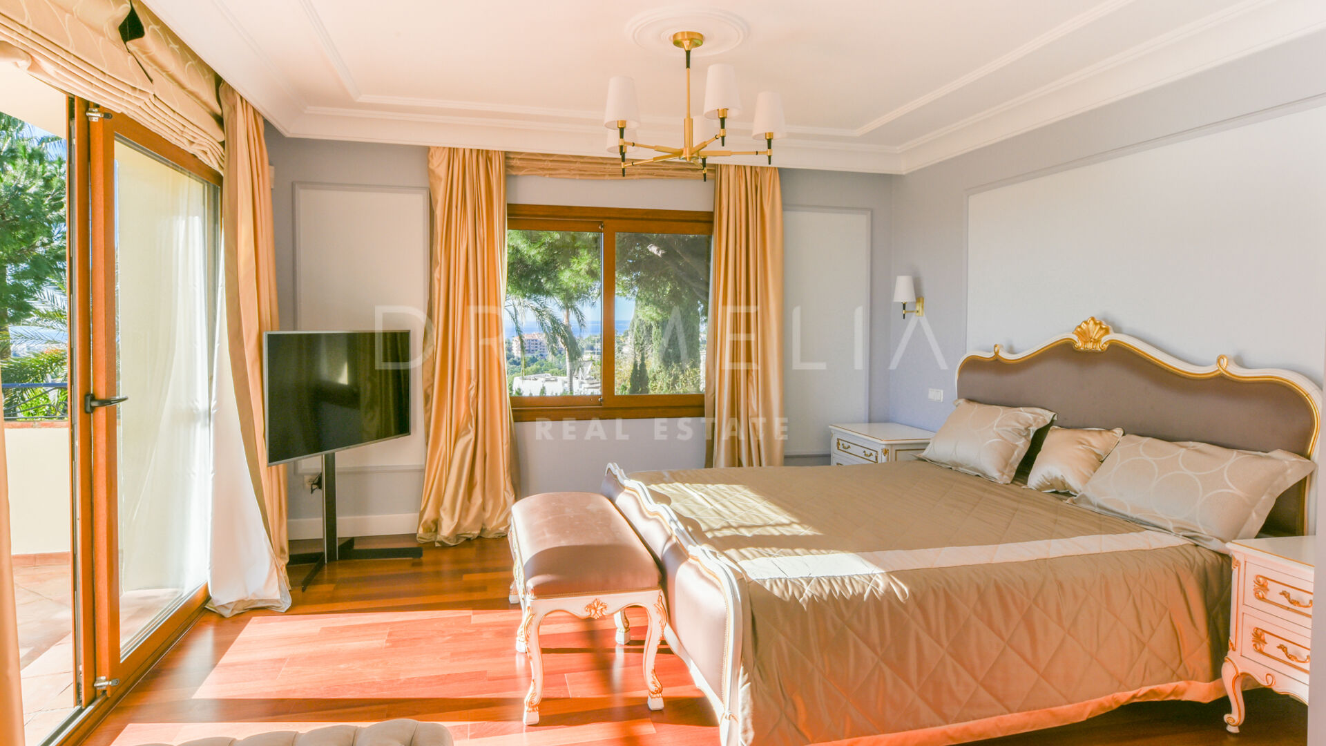 Rodeada de propiedades similares de alta gama y de una hermosa naturaleza, la magnífica casa está construida en 3 niveles y cuenta con 3 espaciosas suites para invitados, un apartamento para el personal y un enorme dormitorio principal con zona de estar e impresionante vestidor. El amplio y acogedor salón con una zona de relax junto a una chimenea comunica con la fantástica cocina totalmente equipada, conectada con un elegante comedor familiar. Se abre a las amplias terrazas con increíbles vistas panorámicas al mar y a toda la costa. El nivel inferior ofrece alojamiento para invitados o para el personal, con una cocina, un dormitorio adicional, un rincón vinoteca y un gran centro SPA con sauna de infrarrojos y sala de vapor (baño turco). Esta propiedad tiene un amplio garaje cubierto para 2 coches y otras 2 plazas de aparcamiento descubiertas. La gran parcela tiene 2 niveles; en el nivel superior hay una pérgola junto a una piscina, una zona infantil y mucho más, mientras que en otra zona hay árboles frutales y pinos mediterráneos. Las terrazas cubiertas, soleadas y privadas de 116 m² invitan a disfrutar del estilo de vida mediterráneo