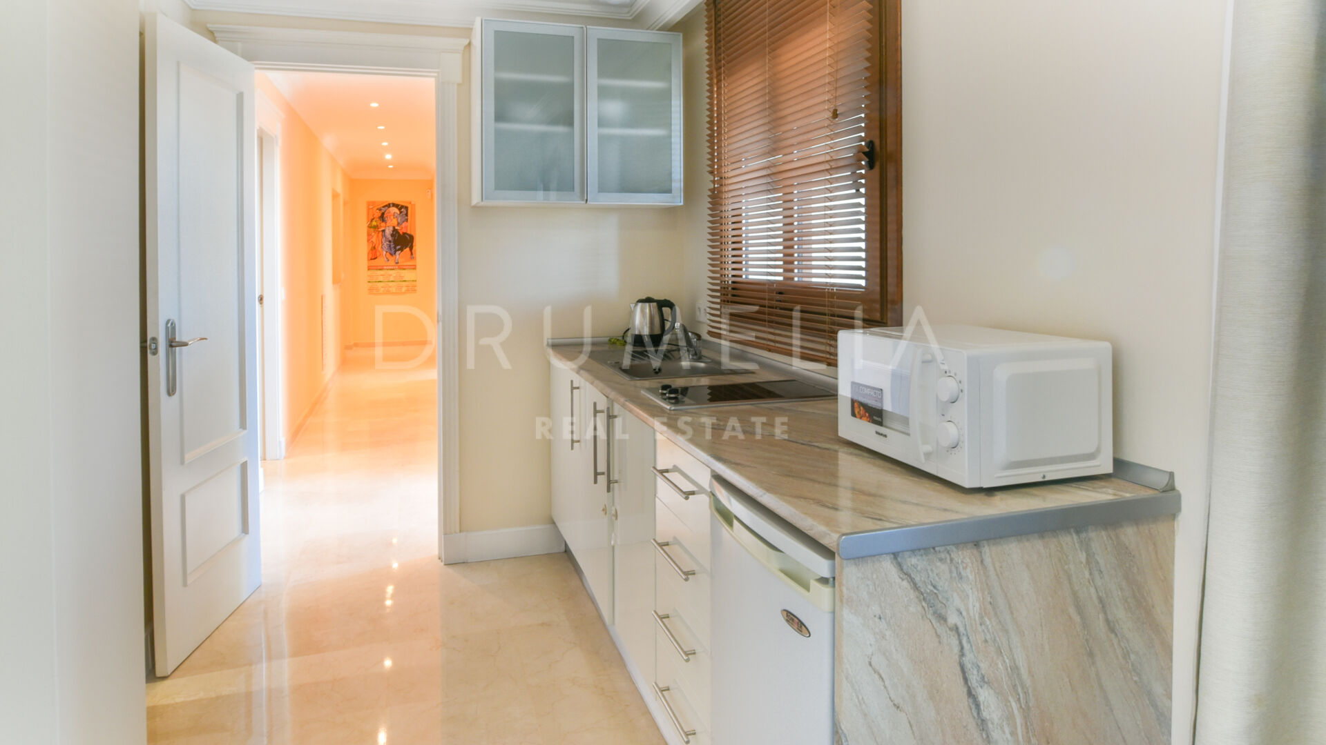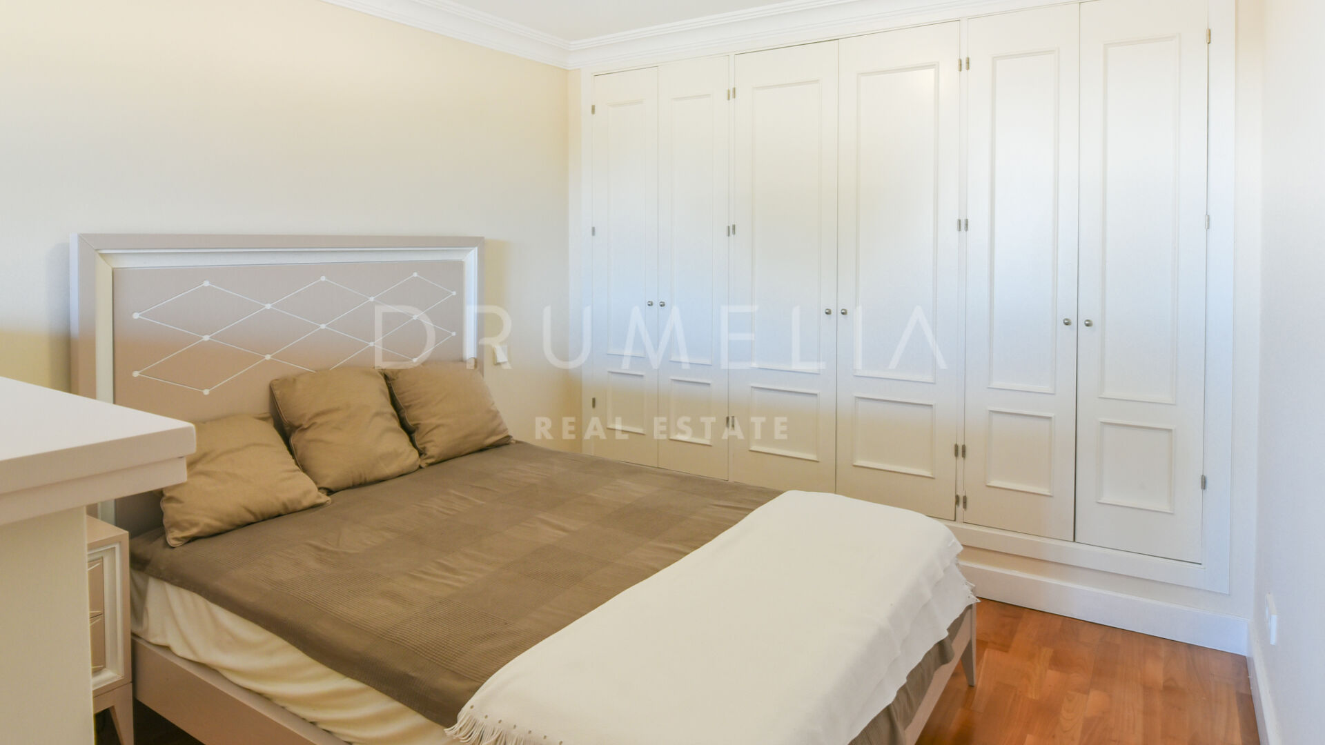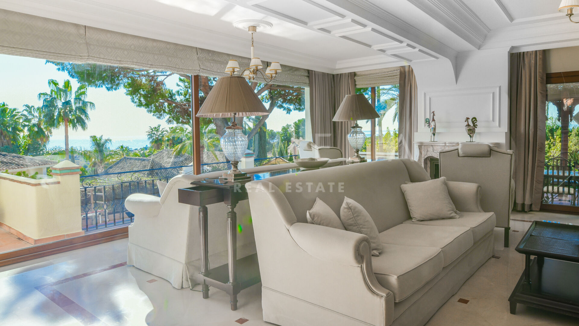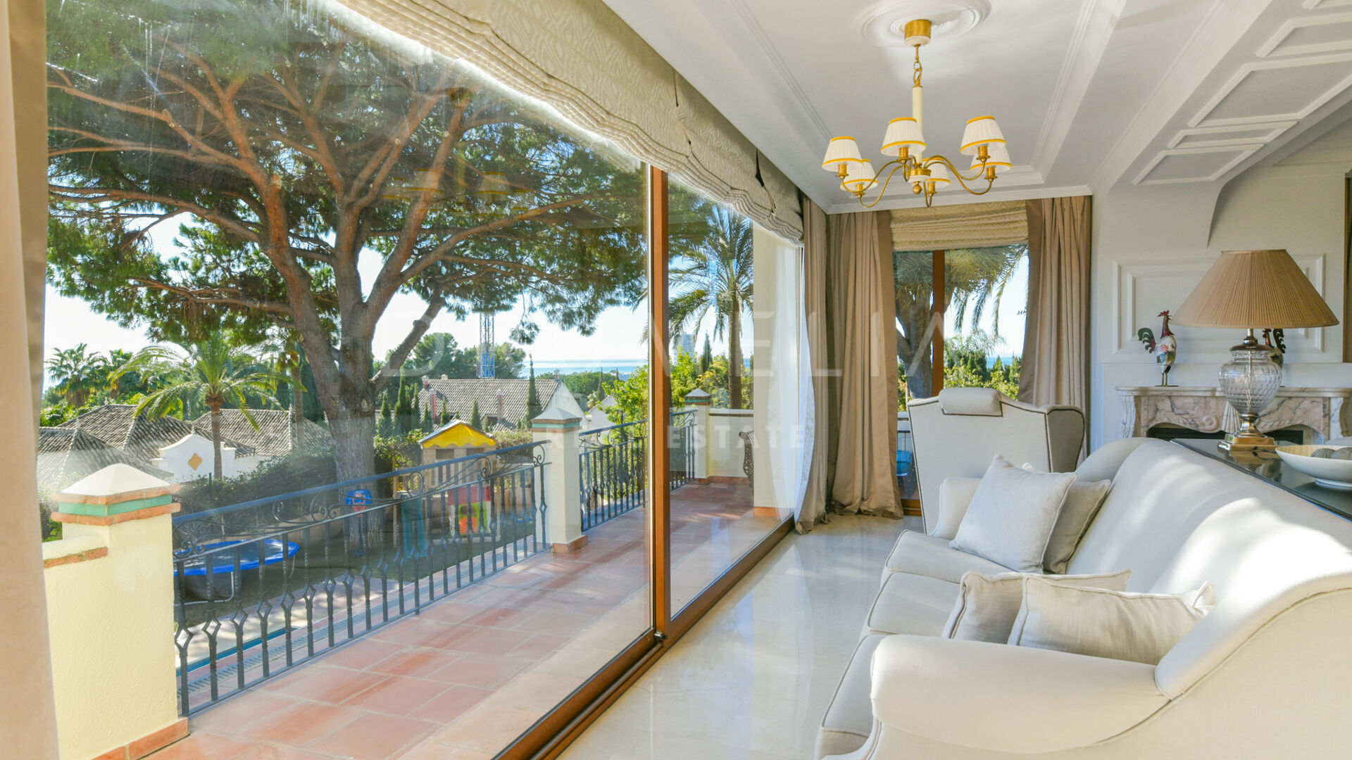La impresionante casa de Marbella Este se vende en buen estado y con todas las prestaciones que necesitas, como aire acondicionado, doble acristalamiento, puertas de cristal, armarios empotrados, etc. Dispone de alarma y videovigilancia, sistemas eléctricos con placas solares fotovoltaicas y agua con inventor de primera calidad. Las características peculiares de esta villa son sus puertas y algunas de sus ventanas traídas de África. La impresionante chimenea de mármol, los suelos de mármol fino con calefacción por suelo radiante, los elementos decorativos distintivos de Al-Andalus, los nuevos suelos de mármol y los acabados de madera en los dormitorios añaden exclusividad a esta extraordinaria propiedad.