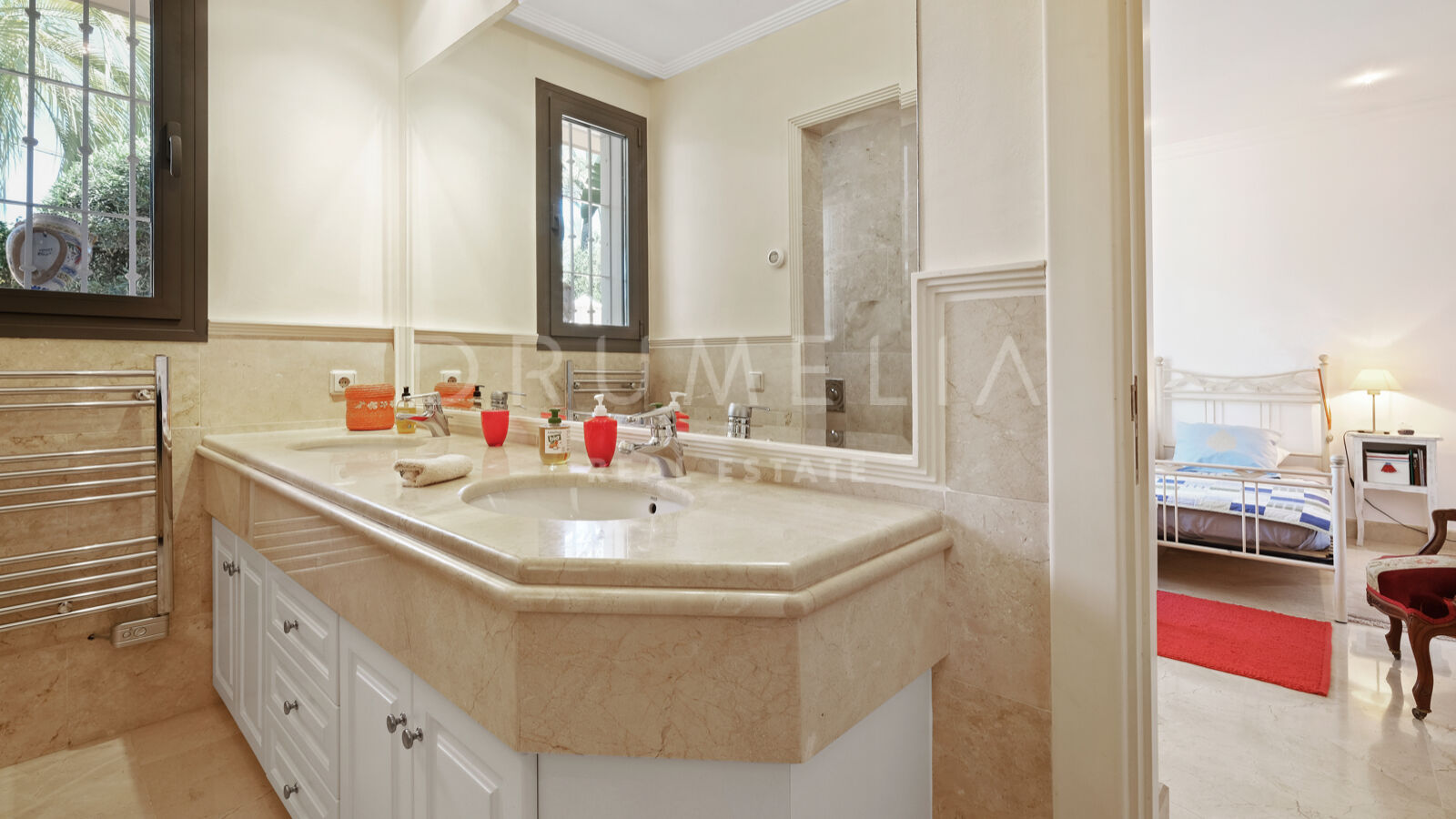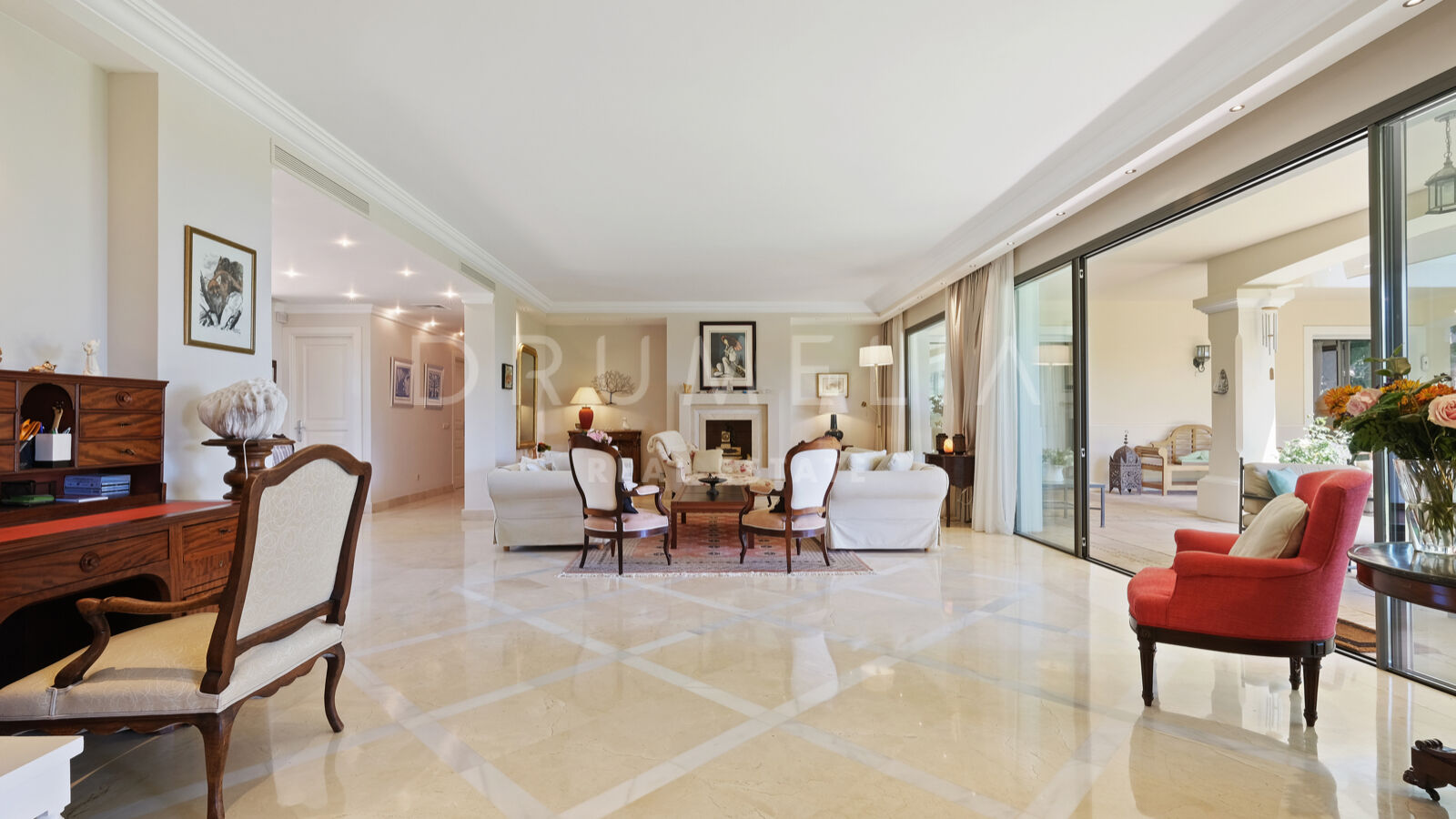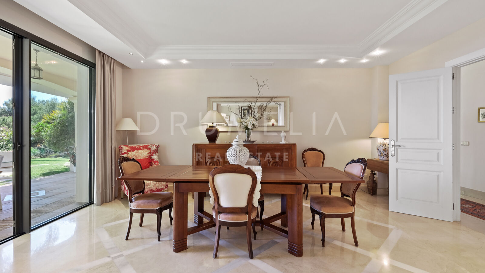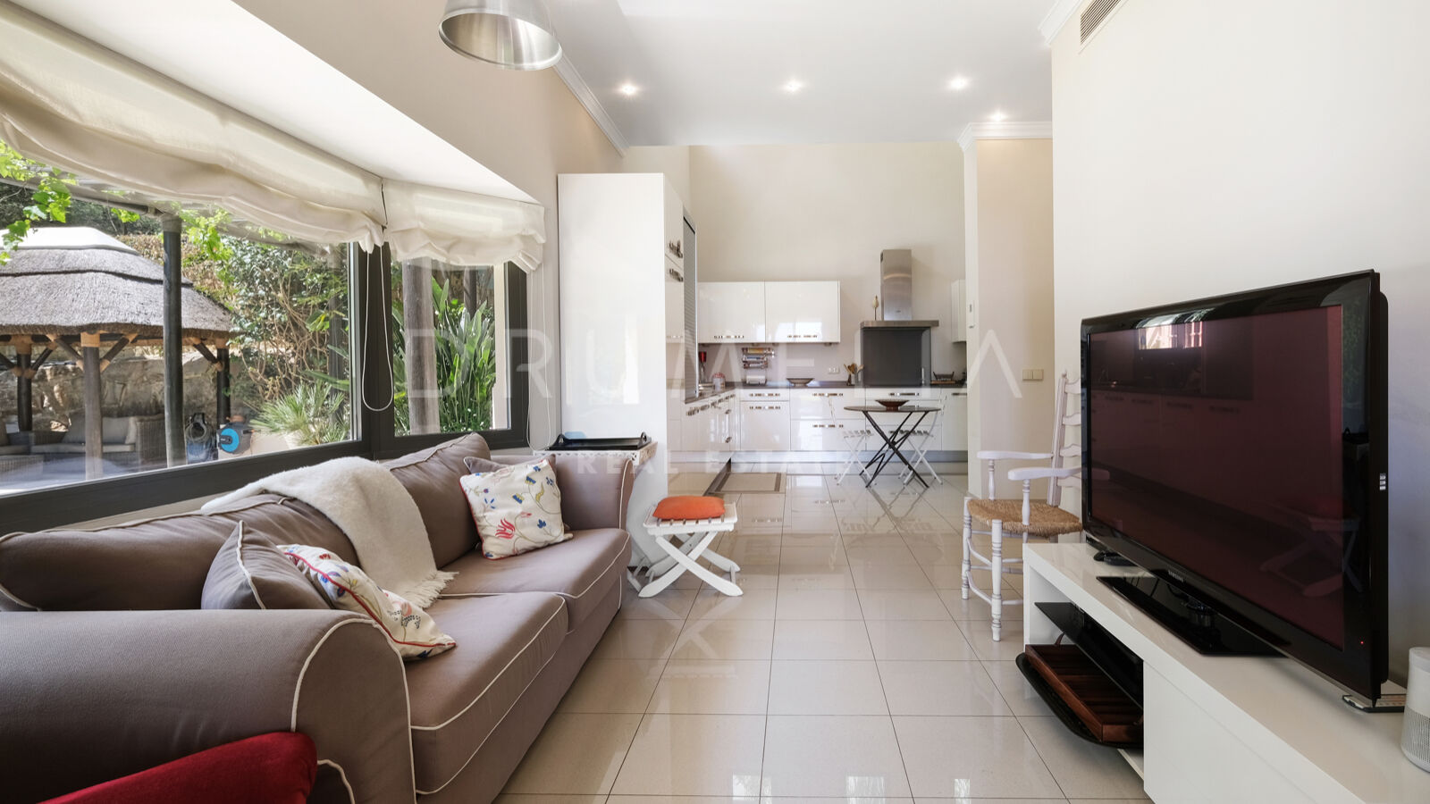 Disfrutarás de la perfecta conexión entre la vida interior y exterior en esta planta, ya que la cocina, el salón y el comedor, y 2 dormitorios en suite se abren a las amplias terrazas y a un jardín meticulosamente ajardinado. Invitando a disfrutar del mundialmente famoso estilo de vida mediterráneo, la parcela cuenta con una piscina equipada con sistema de ósmosis, un solárium, un exótico pabellón con zona de estar que garantiza puro disfrute y relajación en la intimidad de tu propio oasis. Los jardines con un olivo centenario, palmeras y una cuidada vegetación subtropical permiten disfrutar del romántico olor de las flores en el aire, y del sonido de las abejas zumbando alrededor de hermosas rosas.