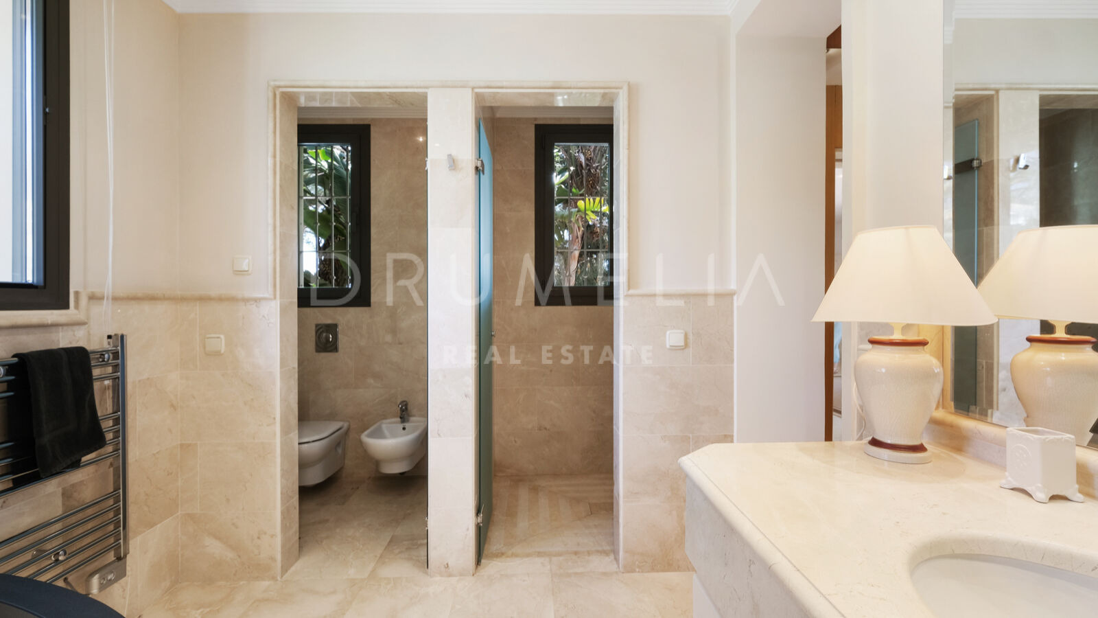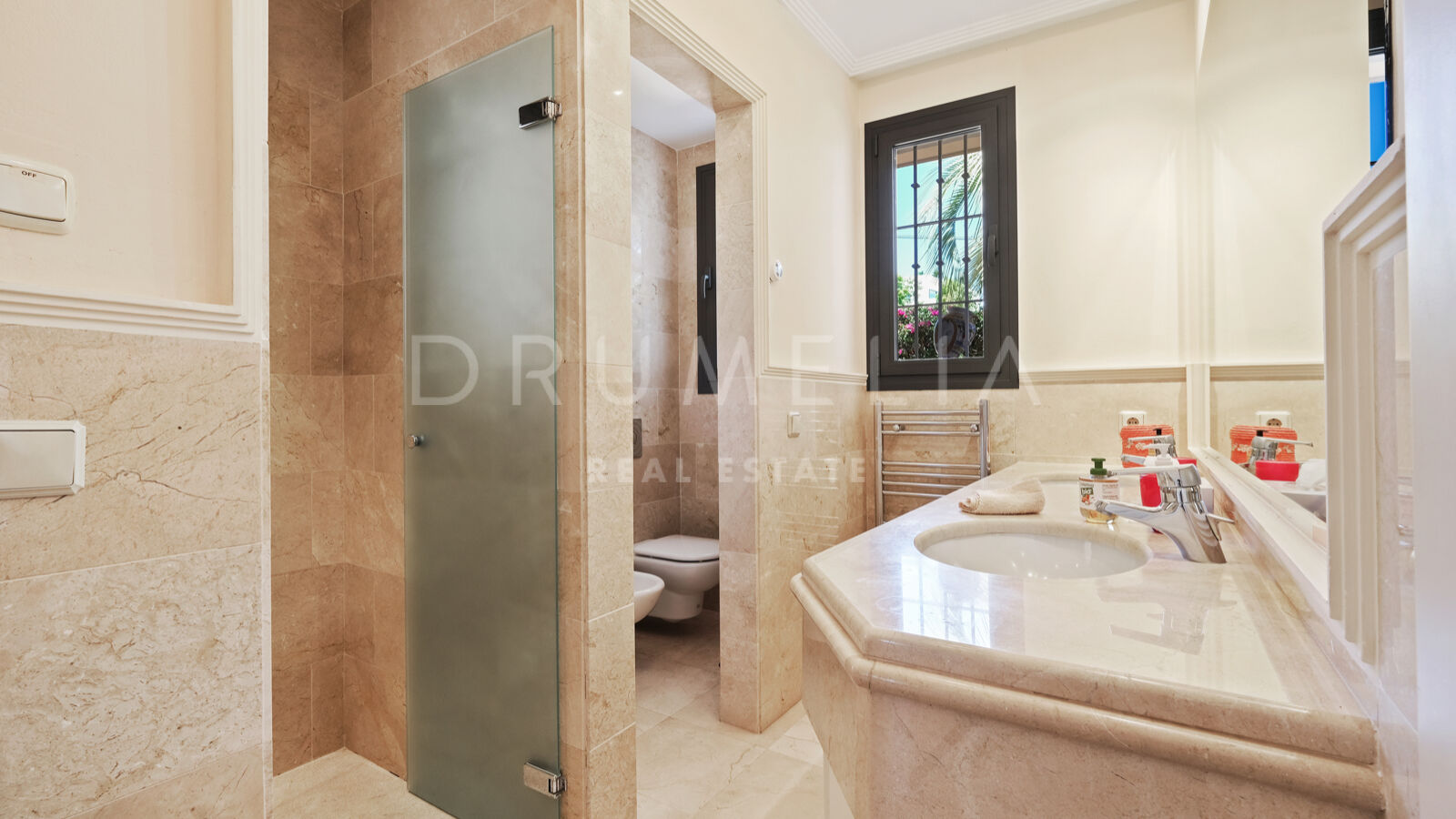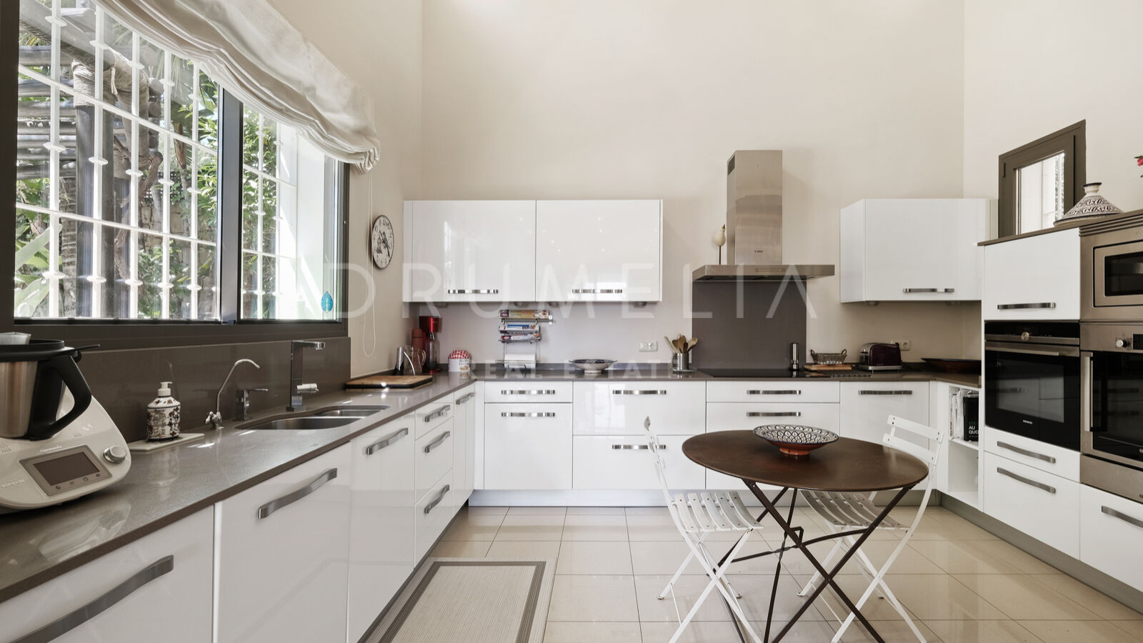 Esta exquisita casa se vende en buen estado y con muchas características que añaden lujo, seguridad y confort, como calefacción central, aire acondicionado, sistema de alarma, iluminación LED, suelos de mármol fino, carpintería de aluminio con doble acristalamiento, armarios empotrados, sistema de filtración de agua, etc. Los grandes ventanales y las puertas de cristal, cuidadosamente diseñados, permiten que la luz natural inunde todas las habitaciones, creando un ambiente acogedor y luminoso en todas ellas.