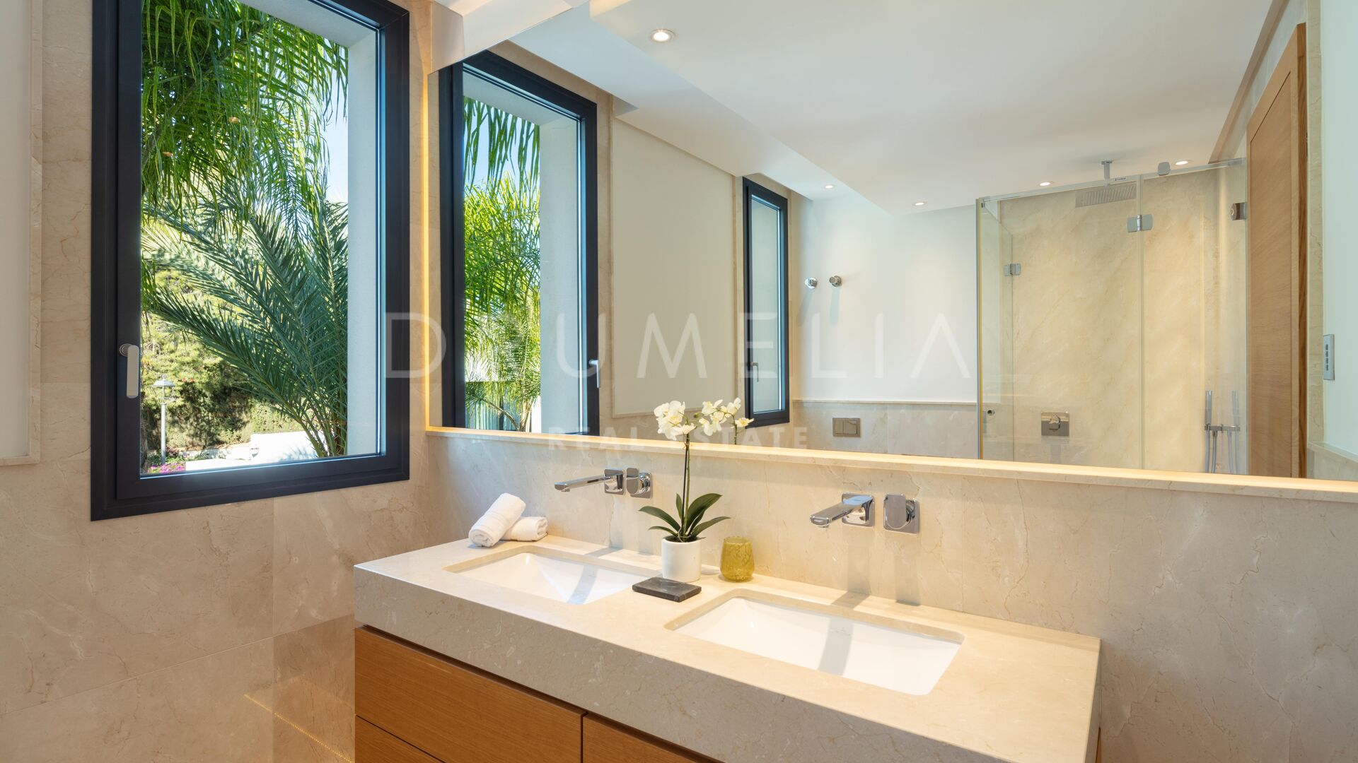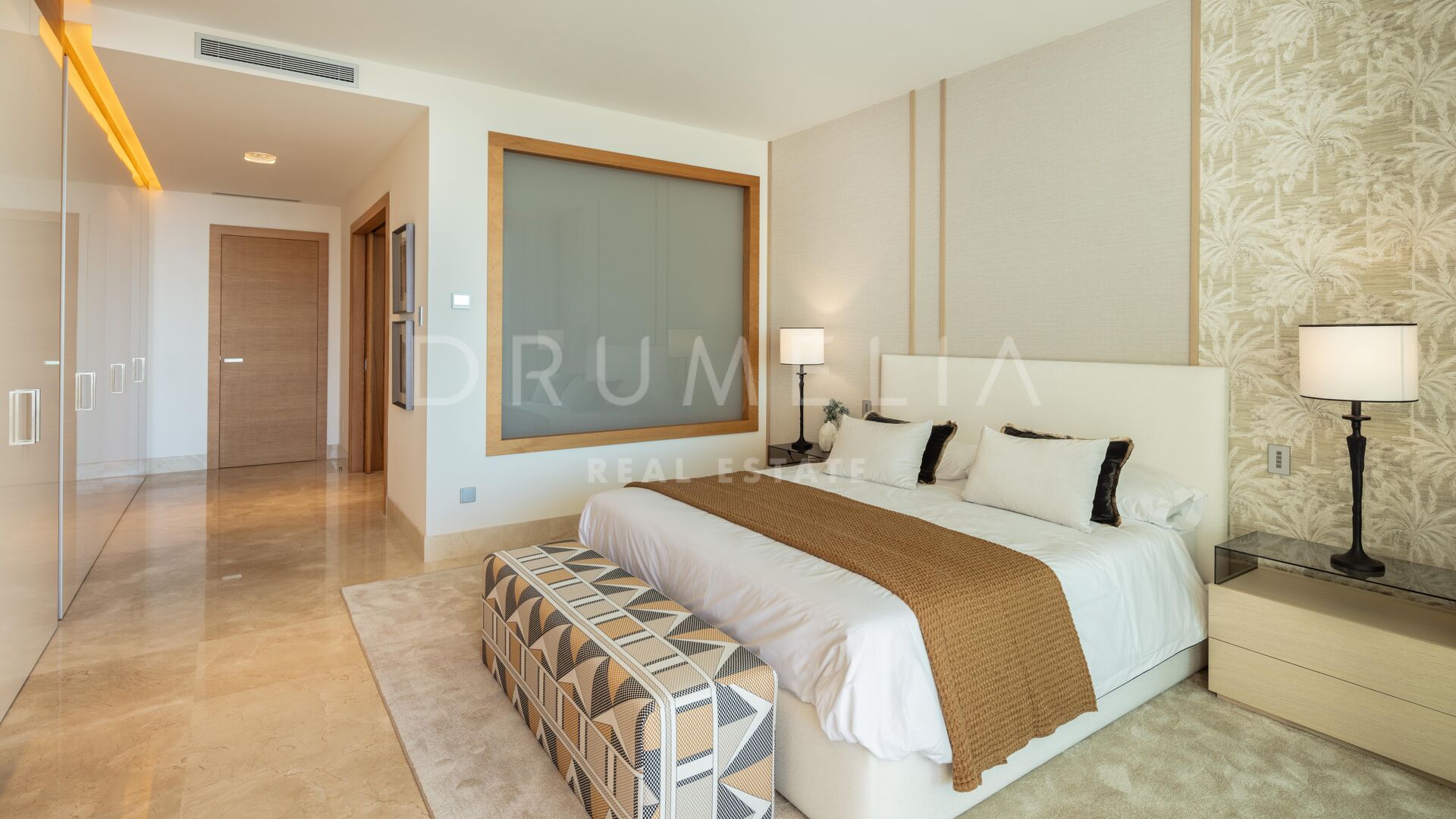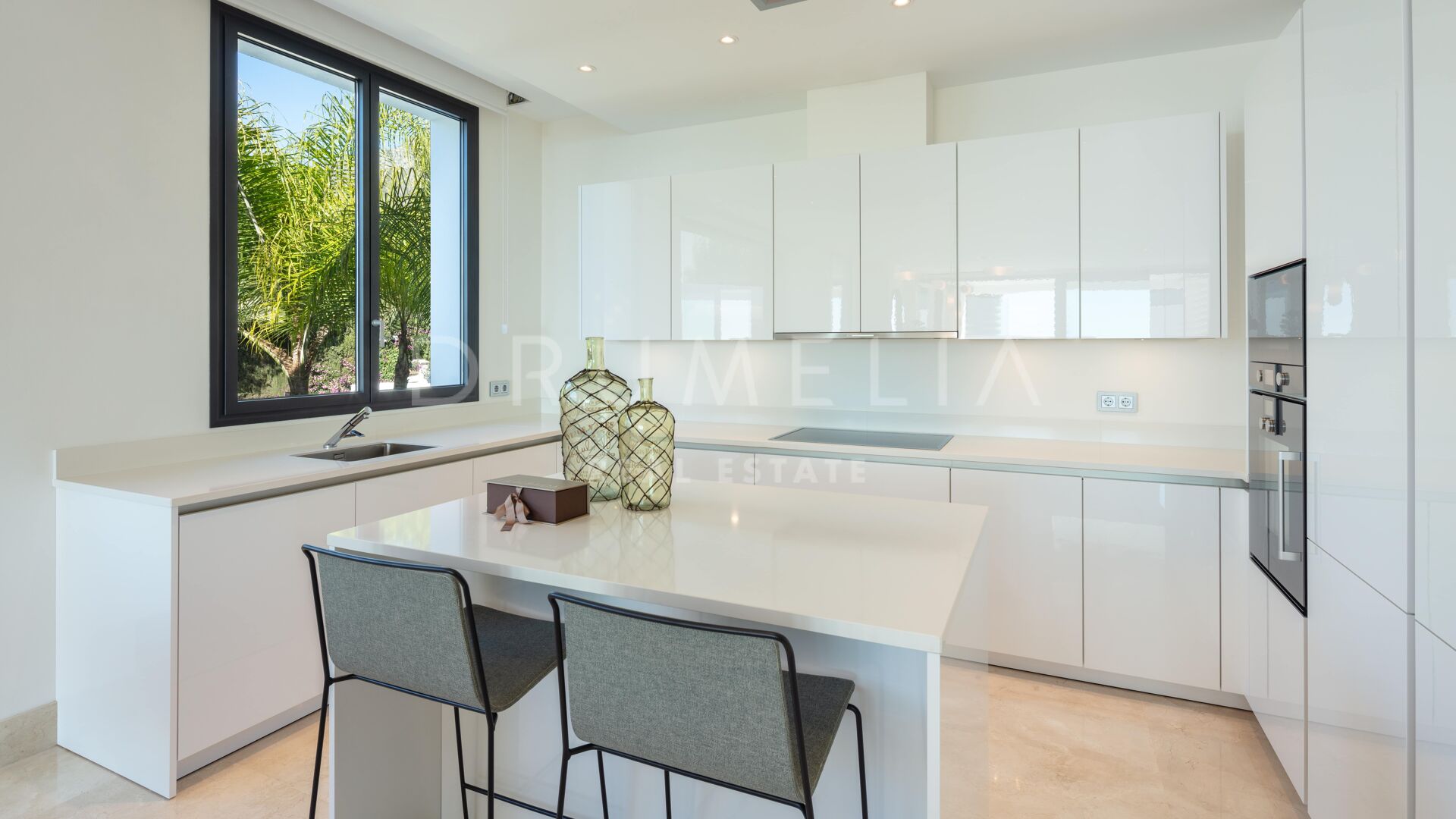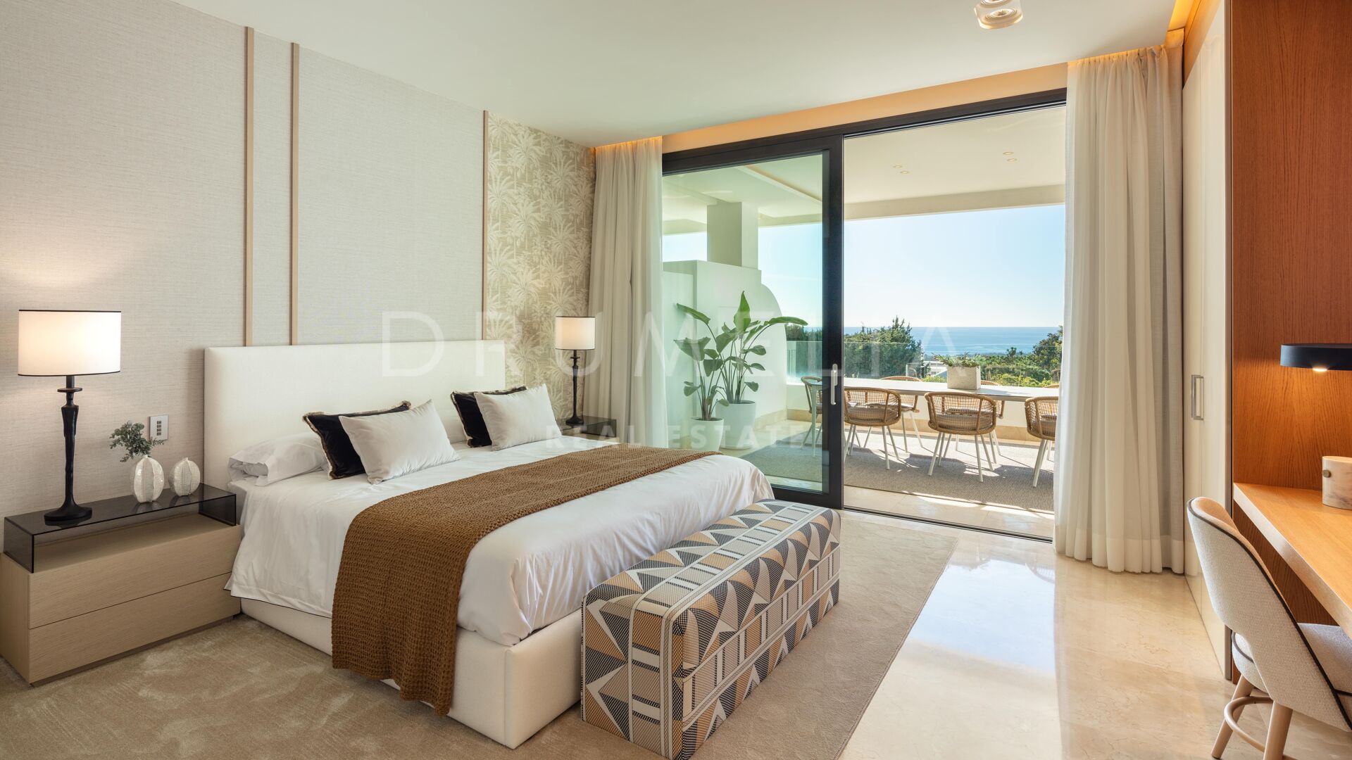 Este ático dúplex bellamente presentado se ofrece a la venta en la prestigiosa comunidad residencial de Sierra Blanca, a poca distancia de todos los servicios de la Milla de Oro, del legendario hotel Marbella Club y Puente Romano y de la playa. El moderno apartamento de lujo de 528 m² está situado en la comunidad cerrada ecológica de Reserva de Sierra Blanca, conocida por sus apartamentos dúplex extragrandes, su alto nivel de seguridad (cámaras de vigilancia, servicio de seguridad 24 h), sus cuidadas zonas comunes y sus vistas panorámicas al mar. Situada en una privilegiada posición elevada, esta urbanización contemporánea perfectamente elaborada presume de refinamiento estético, confort y espectaculares vistas de la emblemática montaña de La Concha, la costa, el puerto y el mar Mediterráneo hasta África.