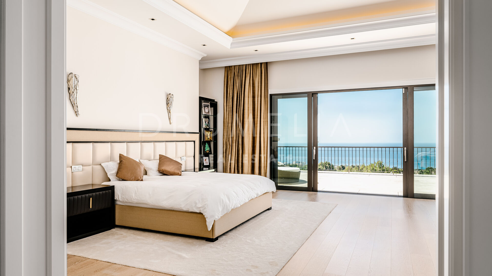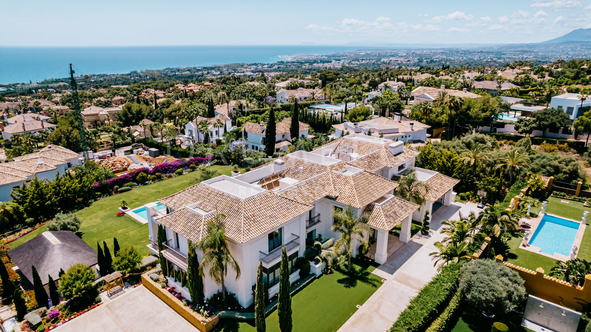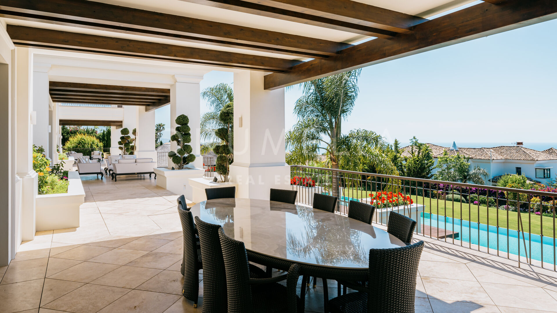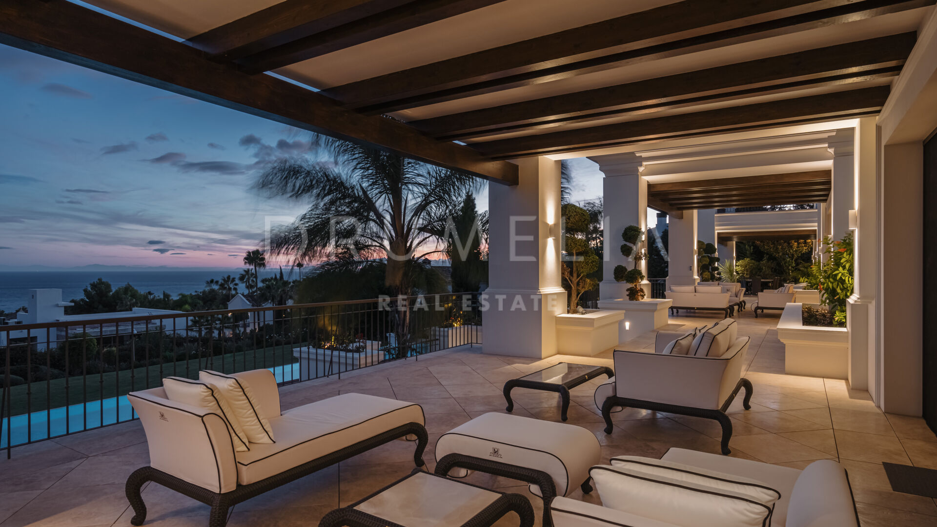 Sólo cabe esperar lo mejor. La propiedad cuenta con una noble y agradable paleta de colores naturales, excelentes suelos de mármol, puertas panorámicas de cristal y bodega de cristal, armarios empotrados de carpintería de calidad, amplio y práctico vestidor de excepcional gusto y calidad, amplio garaje, terrazas cubiertas y soleadas, solárium y balcones privados perfectos para disfrutar de las sensacionales puestas de sol mediterráneas, una copa de vino o una icónica taza de café por la mañana. Imagínate: ¡653 m² de terrazas envuelven tu villa de 1.299 m²!