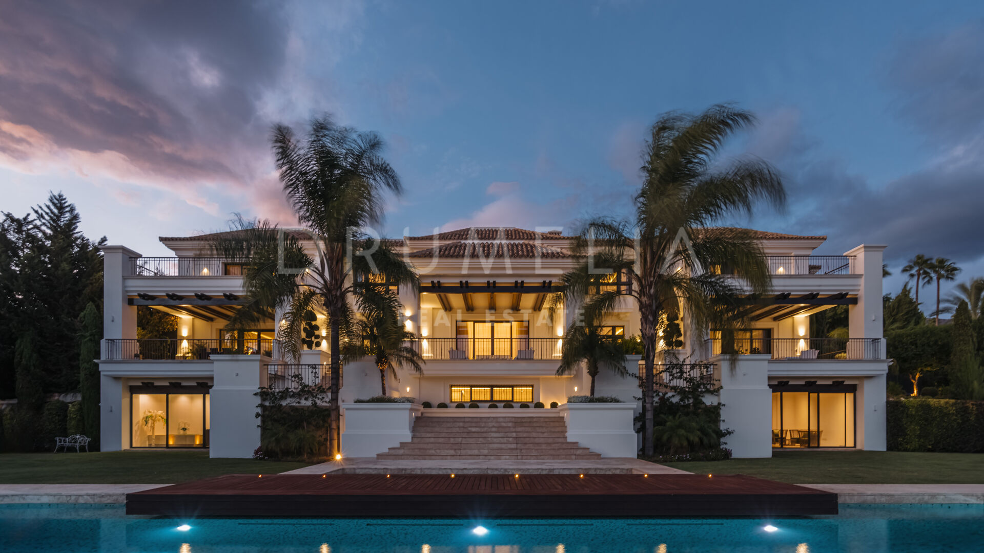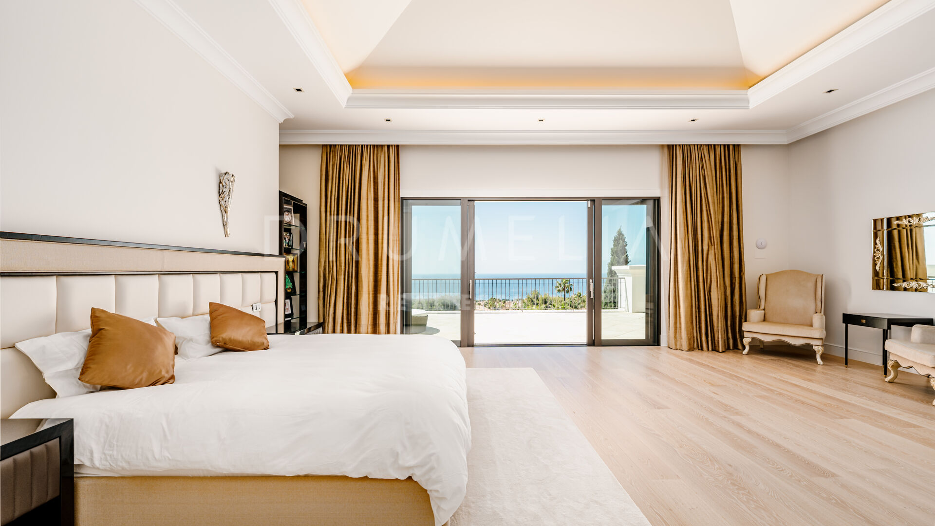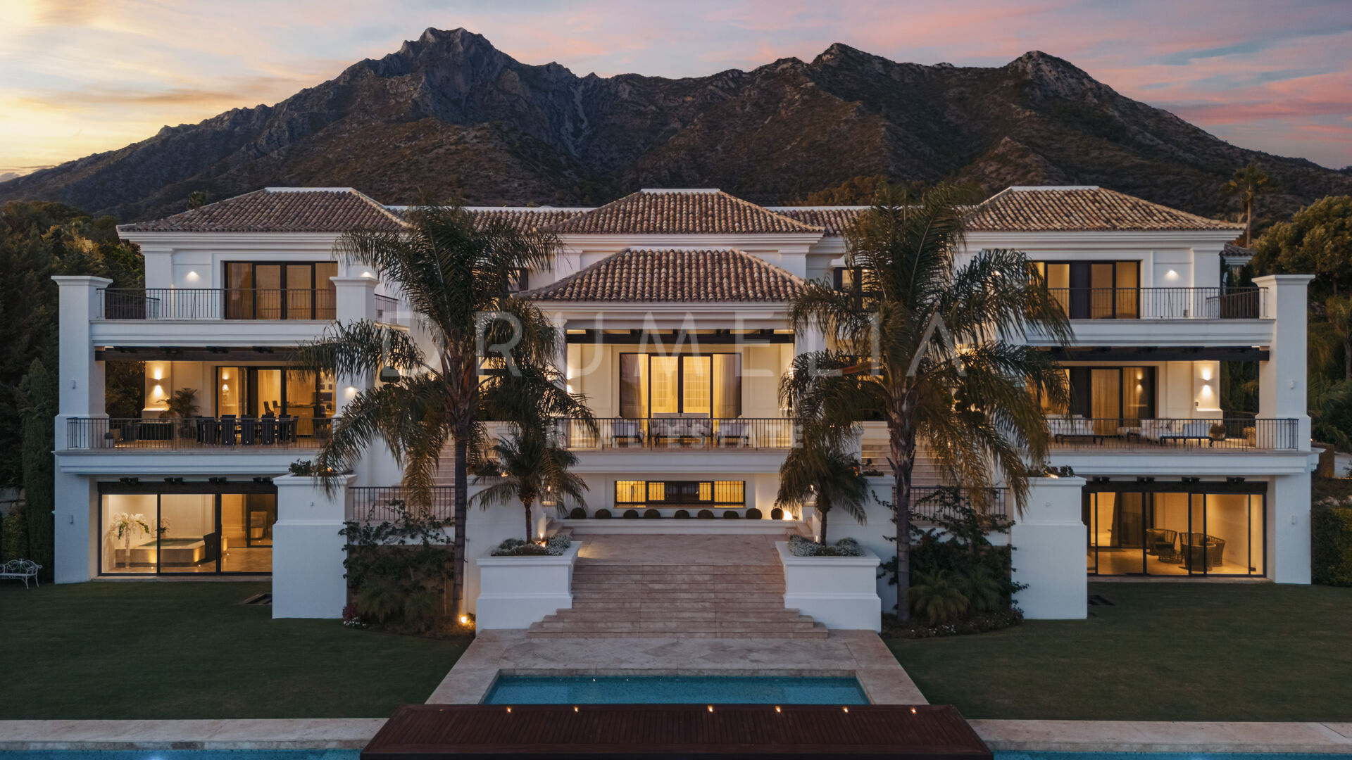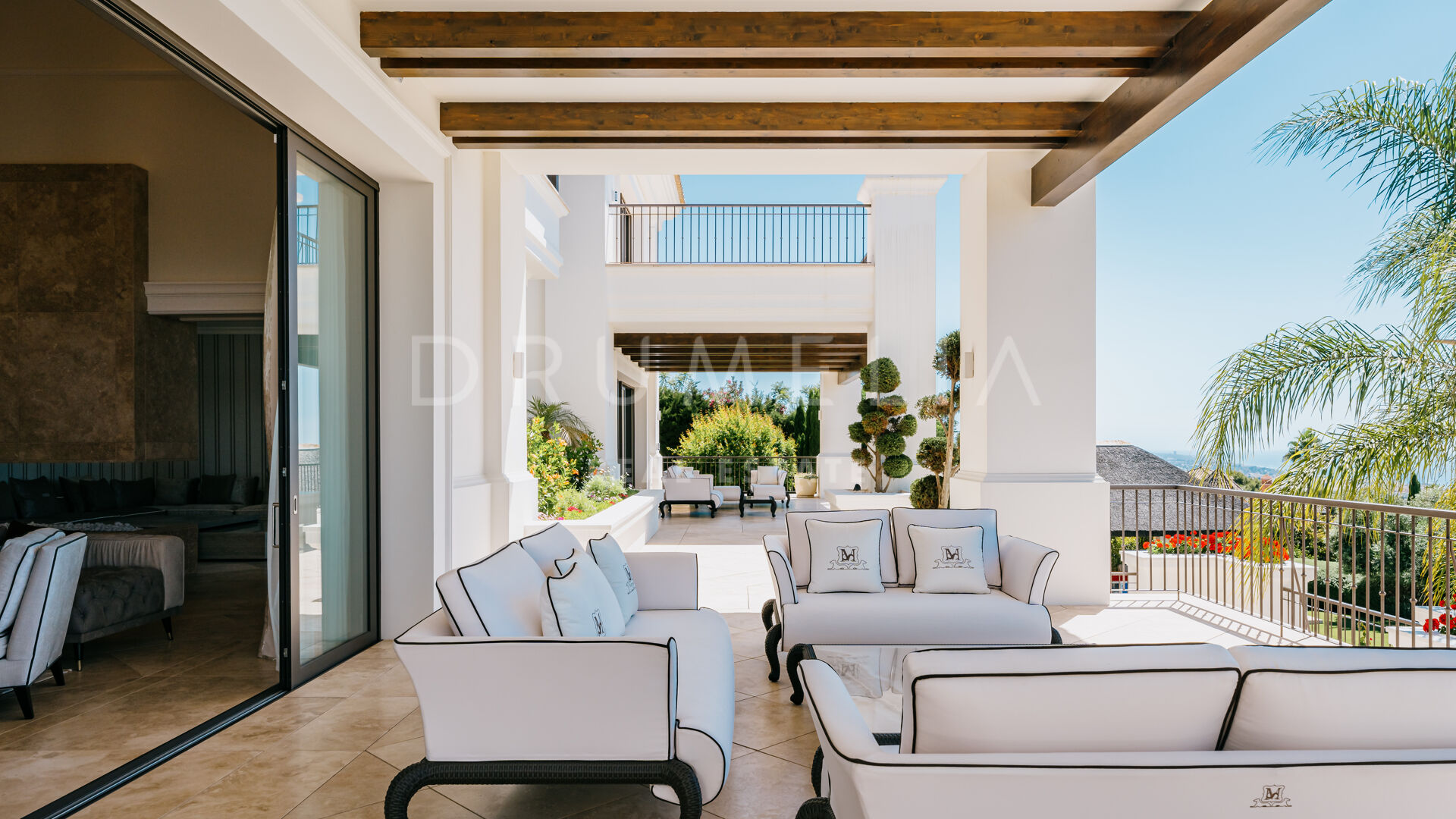 Sólo cabe esperar lo mejor. La propiedad cuenta con una noble y agradable paleta de colores naturales, excelentes suelos de mármol, puertas panorámicas de cristal y bodega de cristal, armarios empotrados de carpintería de calidad, amplio y práctico vestidor de excepcional gusto y calidad, amplio garaje, terrazas cubiertas y soleadas, solárium y balcones privados perfectos para disfrutar de las sensacionales puestas de sol mediterráneas, una copa de vino o una icónica taza de café por la mañana. Imagínate: ¡653 m² de terrazas envuelven tu villa de 1.299 m²!