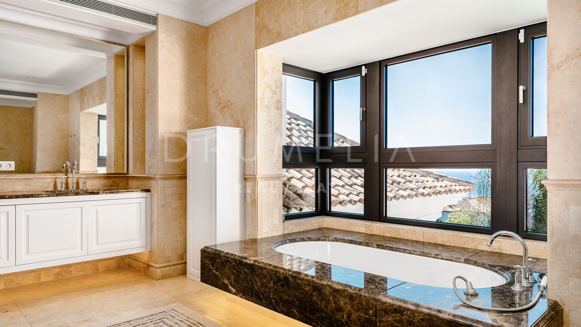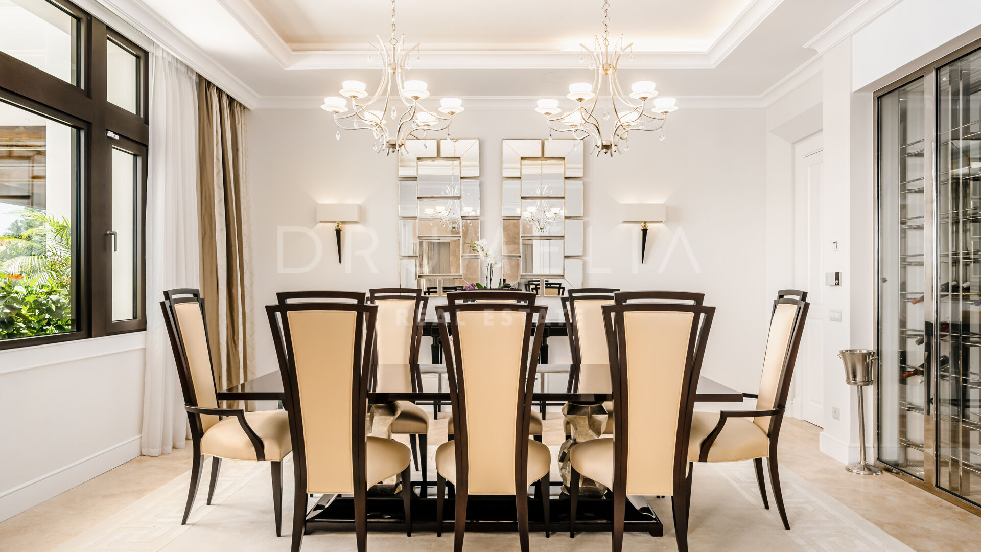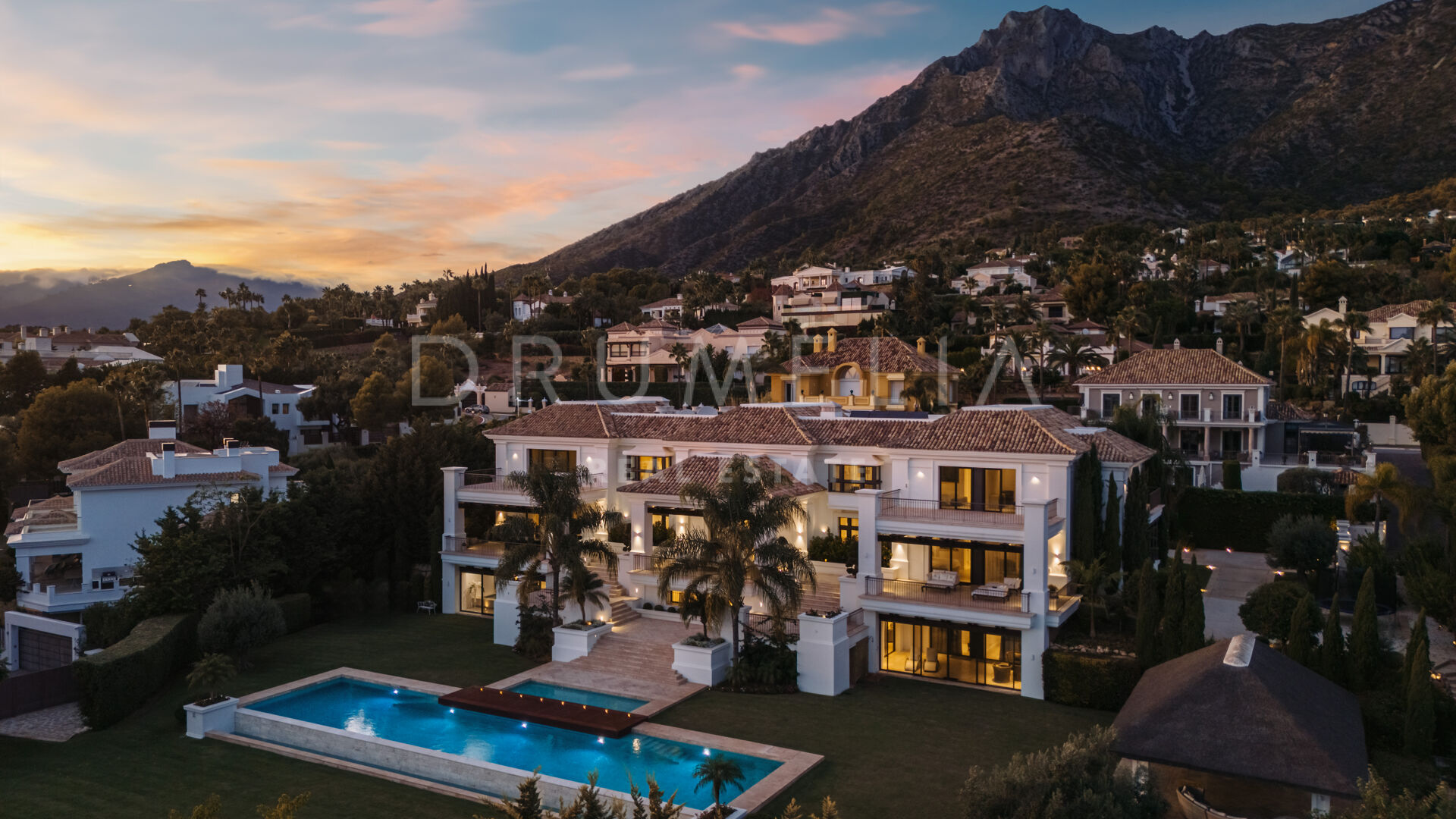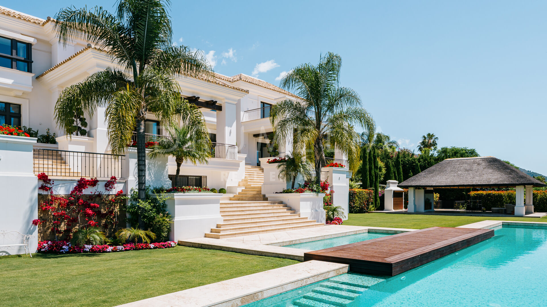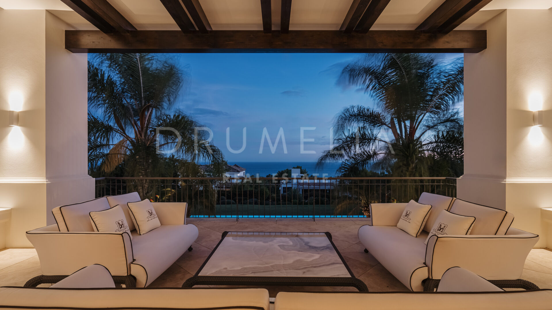 Sólo cabe esperar lo mejor. La propiedad cuenta con una noble y agradable paleta de colores naturales, excelentes suelos de mármol, puertas panorámicas de cristal y bodega de cristal, armarios empotrados de carpintería de calidad, amplio y práctico vestidor de excepcional gusto y calidad, amplio garaje, terrazas cubiertas y soleadas, solárium y balcones privados perfectos para disfrutar de las sensacionales puestas de sol mediterráneas, una copa de vino o una icónica taza de café por la mañana. Imagínate: ¡653 m² de terrazas envuelven tu villa de 1.299 m²!