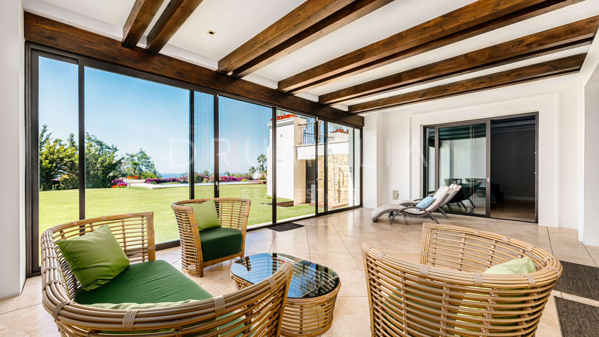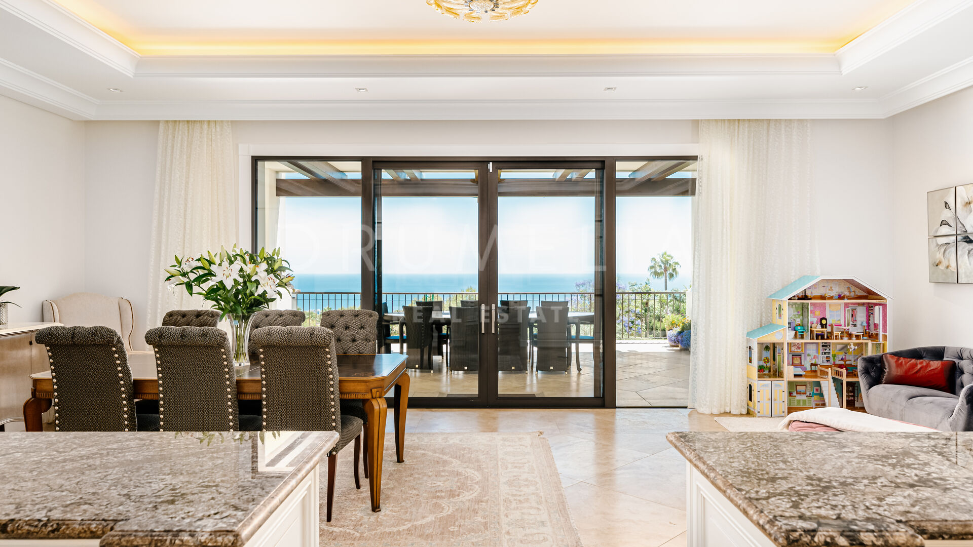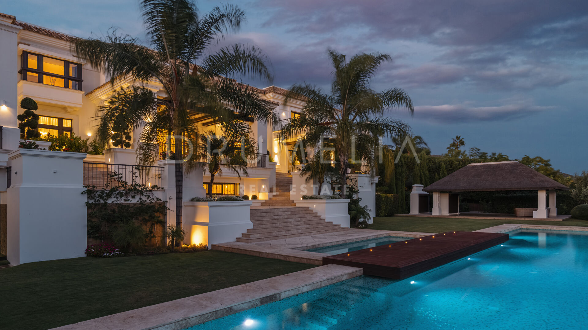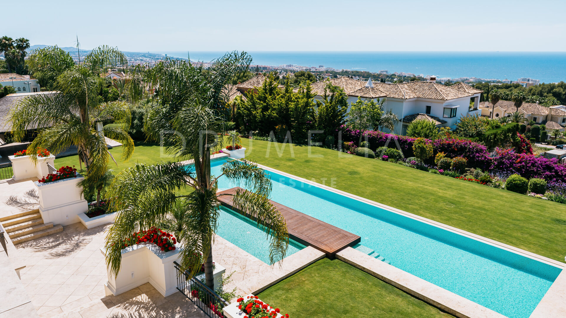 Sólo cabe esperar lo mejor. La propiedad cuenta con una noble y agradable paleta de colores naturales, excelentes suelos de mármol, puertas panorámicas de cristal y bodega de cristal, armarios empotrados de carpintería de calidad, amplio y práctico vestidor de excepcional gusto y calidad, amplio garaje, terrazas cubiertas y soleadas, solárium y balcones privados perfectos para disfrutar de las sensacionales puestas de sol mediterráneas, una copa de vino o una icónica taza de café por la mañana. Imagínate: ¡653 m² de terrazas envuelven tu villa de 1.299 m²!