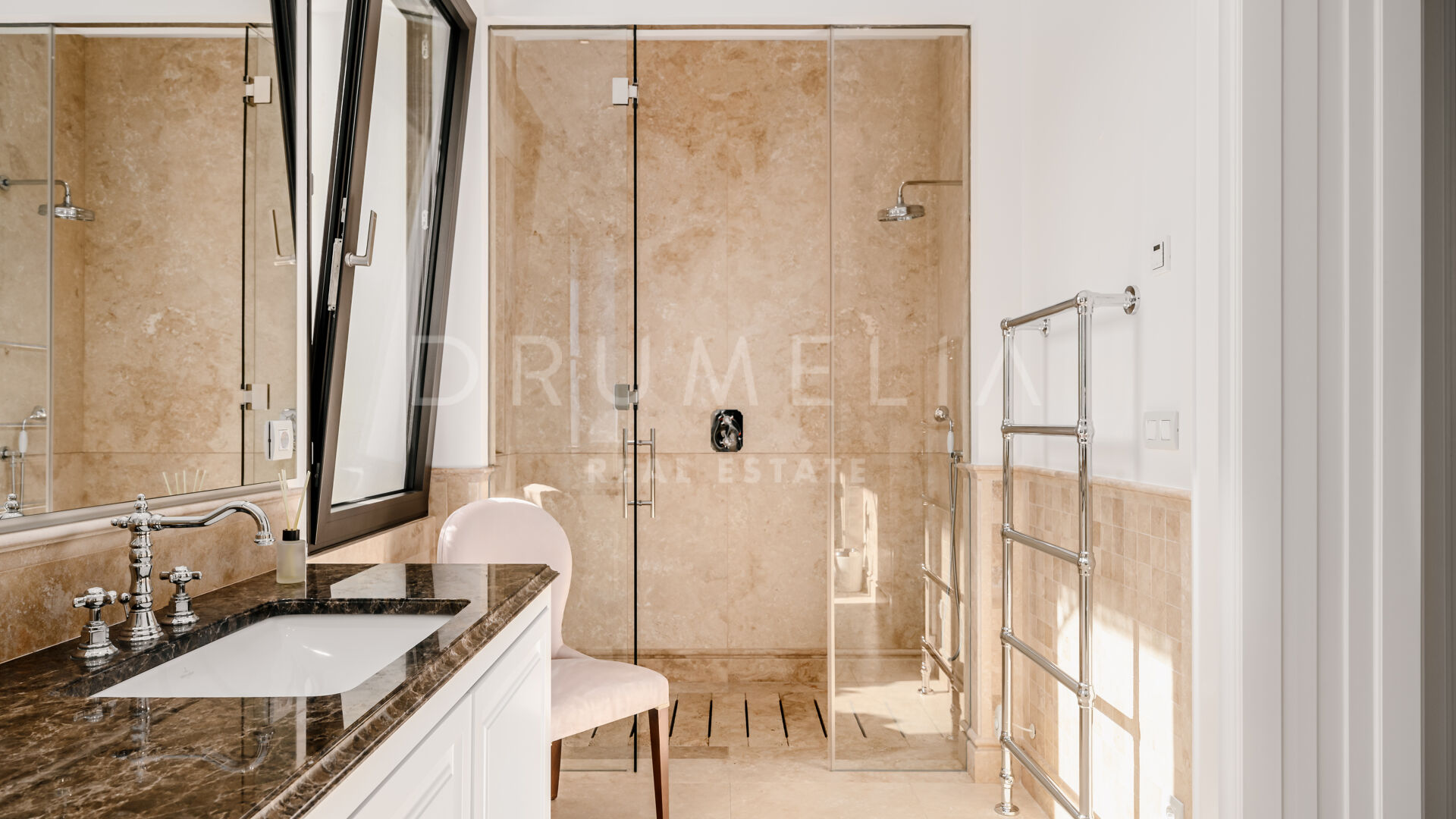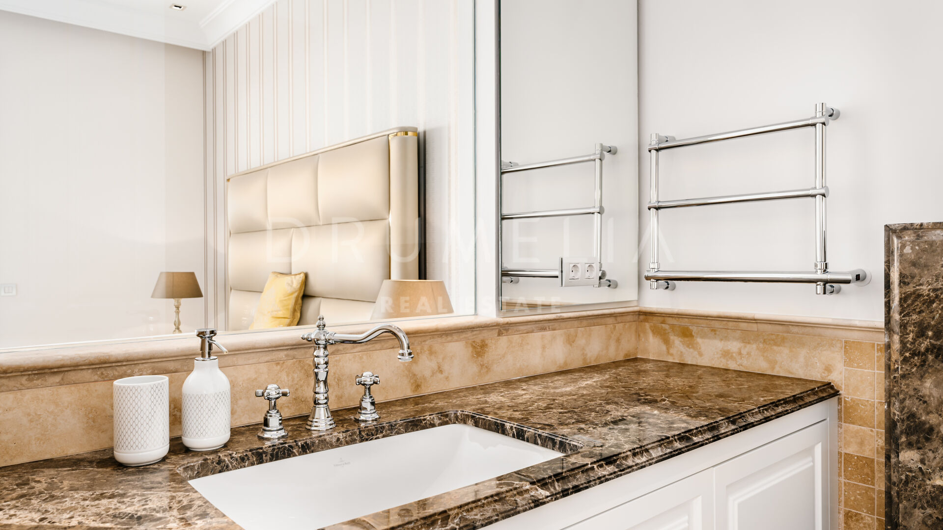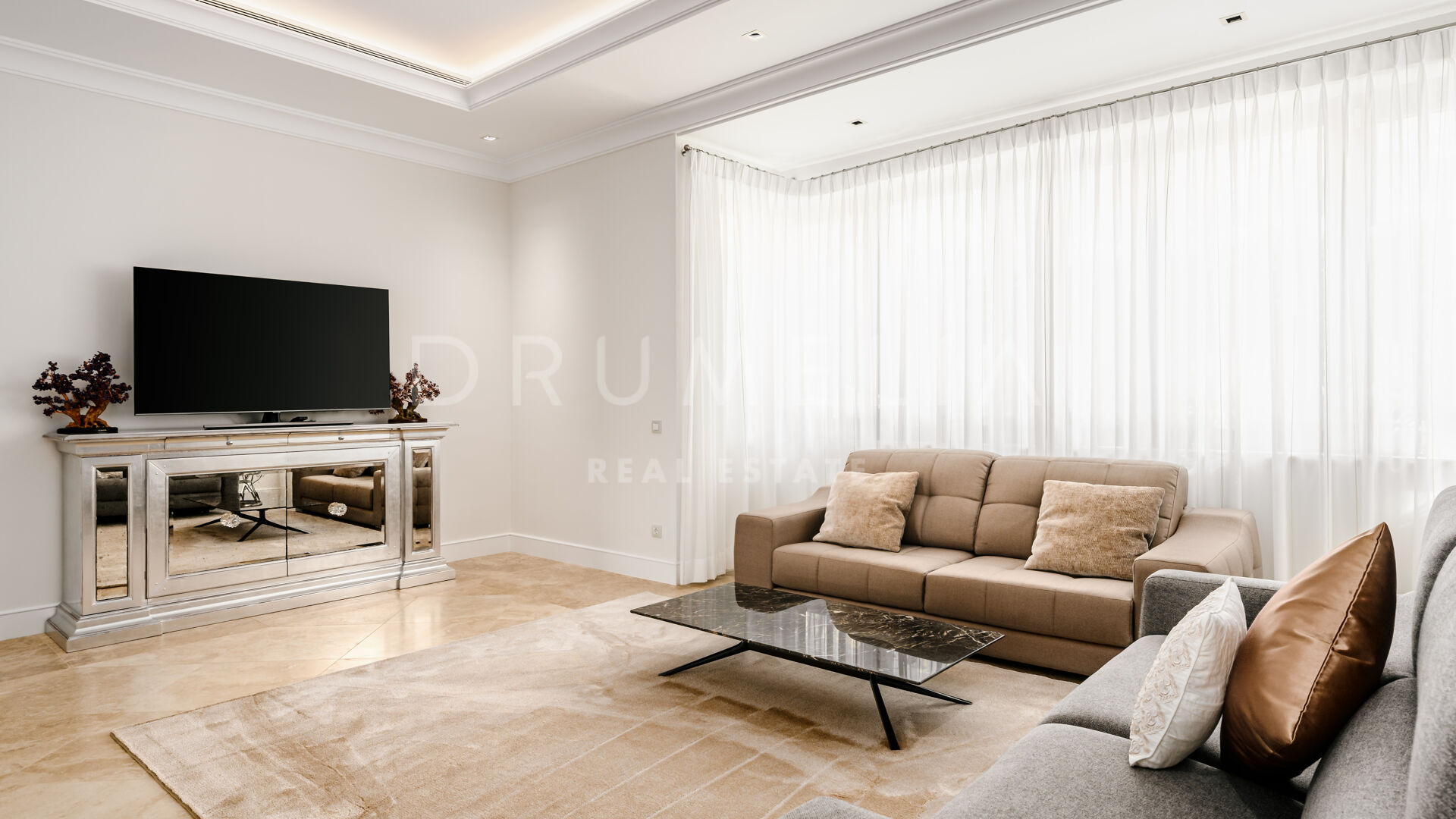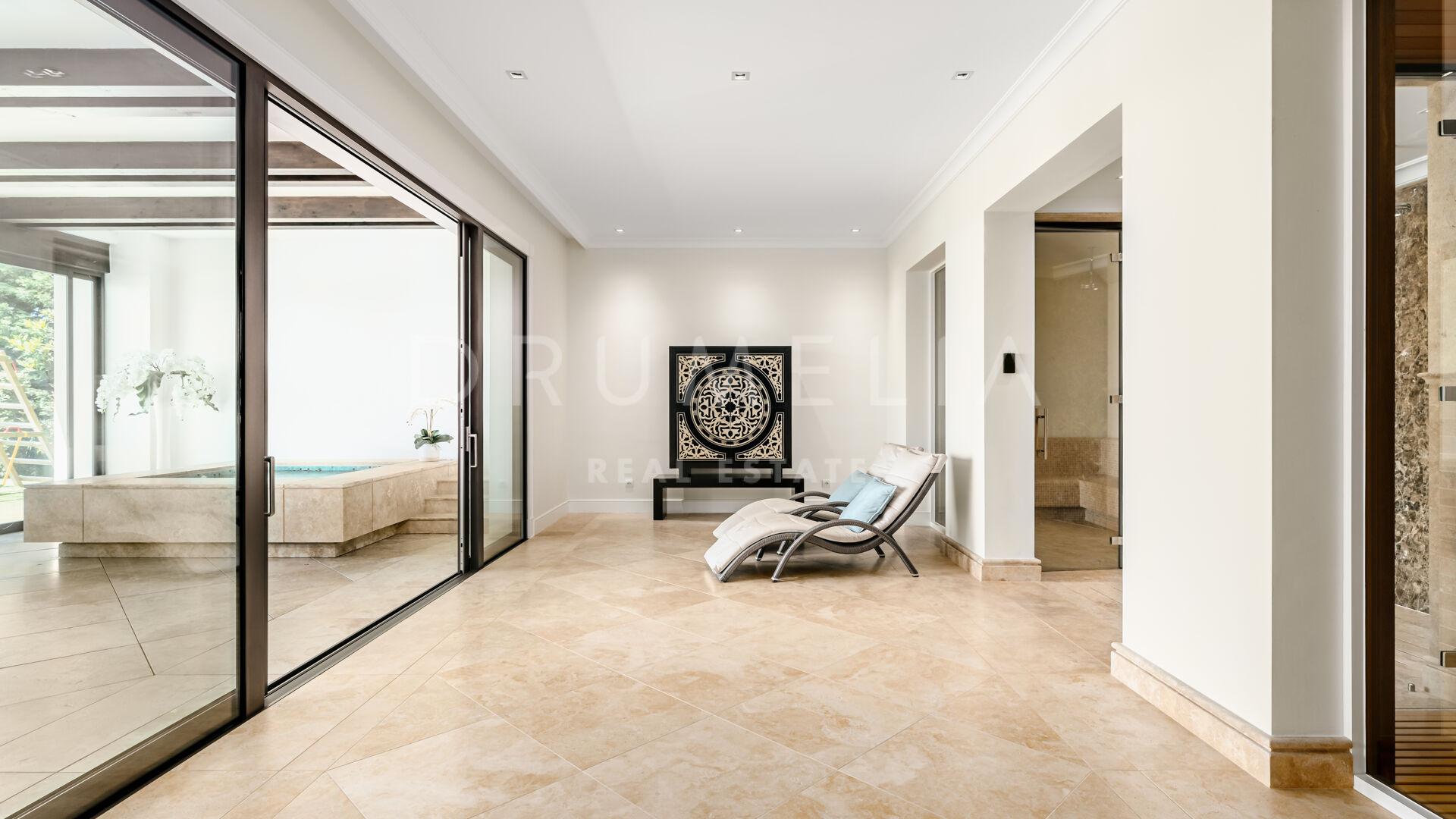 Sólo cabe esperar lo mejor. La propiedad cuenta con una noble y agradable paleta de colores naturales, excelentes suelos de mármol, puertas panorámicas de cristal y bodega de cristal, armarios empotrados de carpintería de calidad, amplio y práctico vestidor de excepcional gusto y calidad, amplio garaje, terrazas cubiertas y soleadas, solárium y balcones privados perfectos para disfrutar de las sensacionales puestas de sol mediterráneas, una copa de vino o una icónica taza de café por la mañana. Imagínate: ¡653 m² de terrazas envuelven tu villa de 1.299 m²!