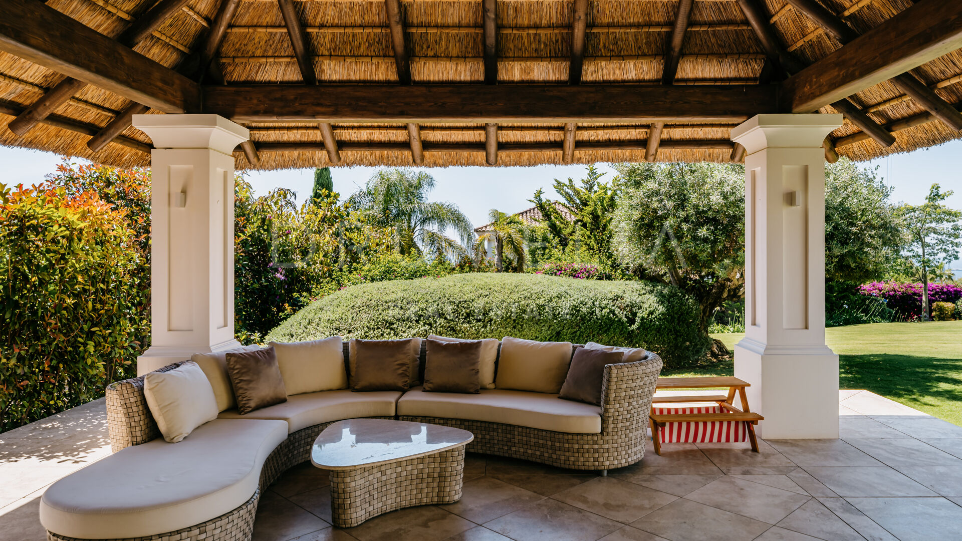 La planta principal alberga 2 de los 7 dormitorios; comparten una zona de estar y ambos disfrutan de vistas abiertas al mar. La planta superior cuenta con 2 trajes de invitados, una sala de estar, un despacho y una extraordinaria suite principal con cuartos de baño bellamente diseñados y acabados, zonas de vestidor ideales para exponer las colecciones de los diseñadores de moda y una terraza privada con impresionantes vistas. En la planta inferior, 2 dormitorios que comparten un baño tienen acceso directo a maravillosos jardines subtropicales con una imponente piscina climatizada, cabaña con techo exótico y una preciosa zona de casa de piscina, muchas zonas de chill-out y de comedor al aire libre para disfrutar del mundialmente famoso estilo de vida mediterráneo.
