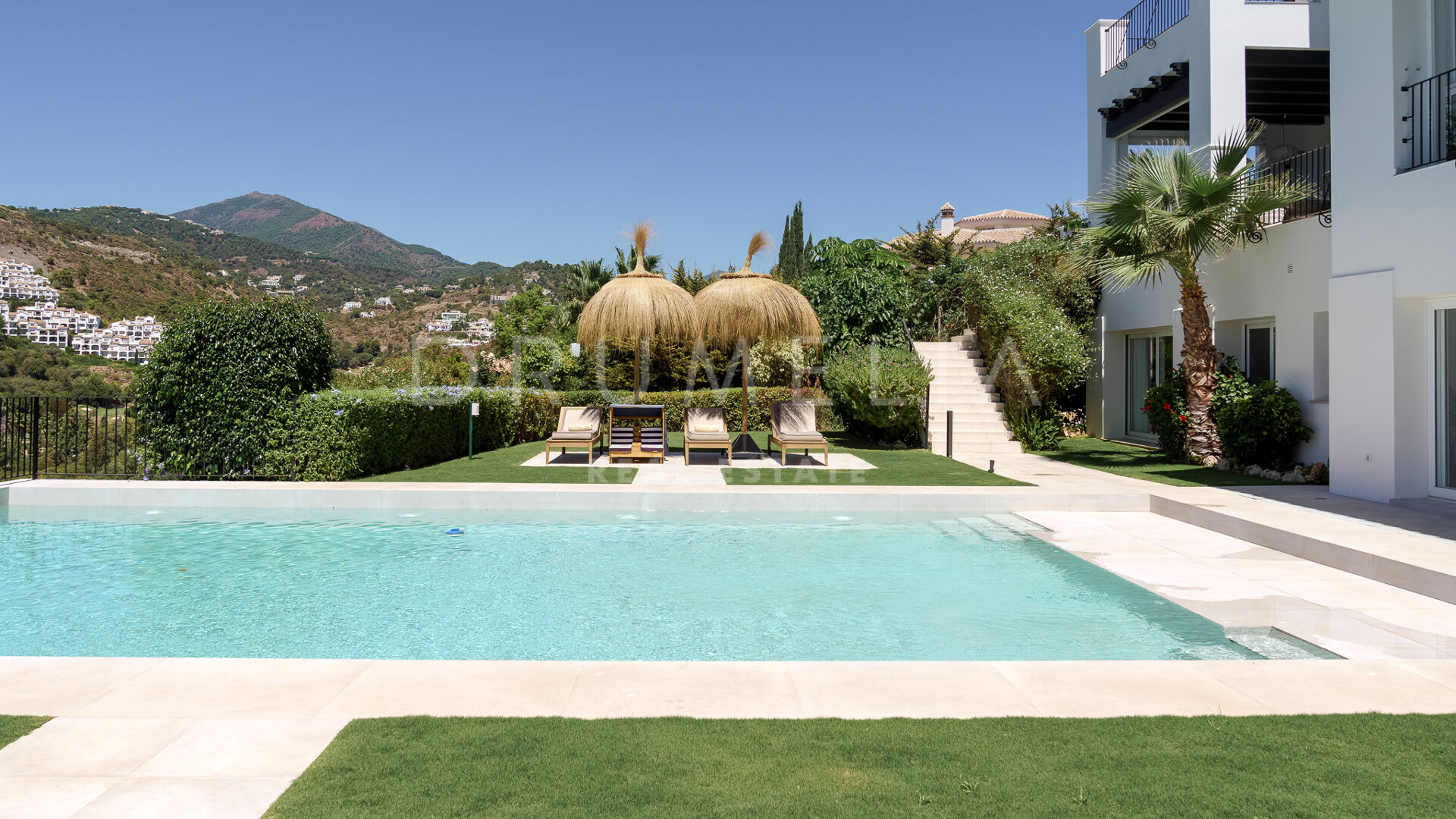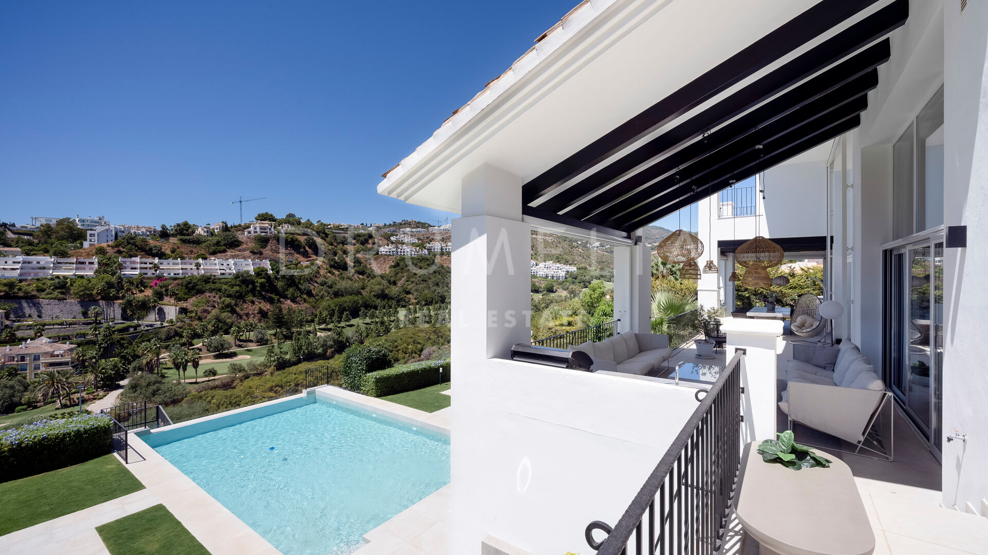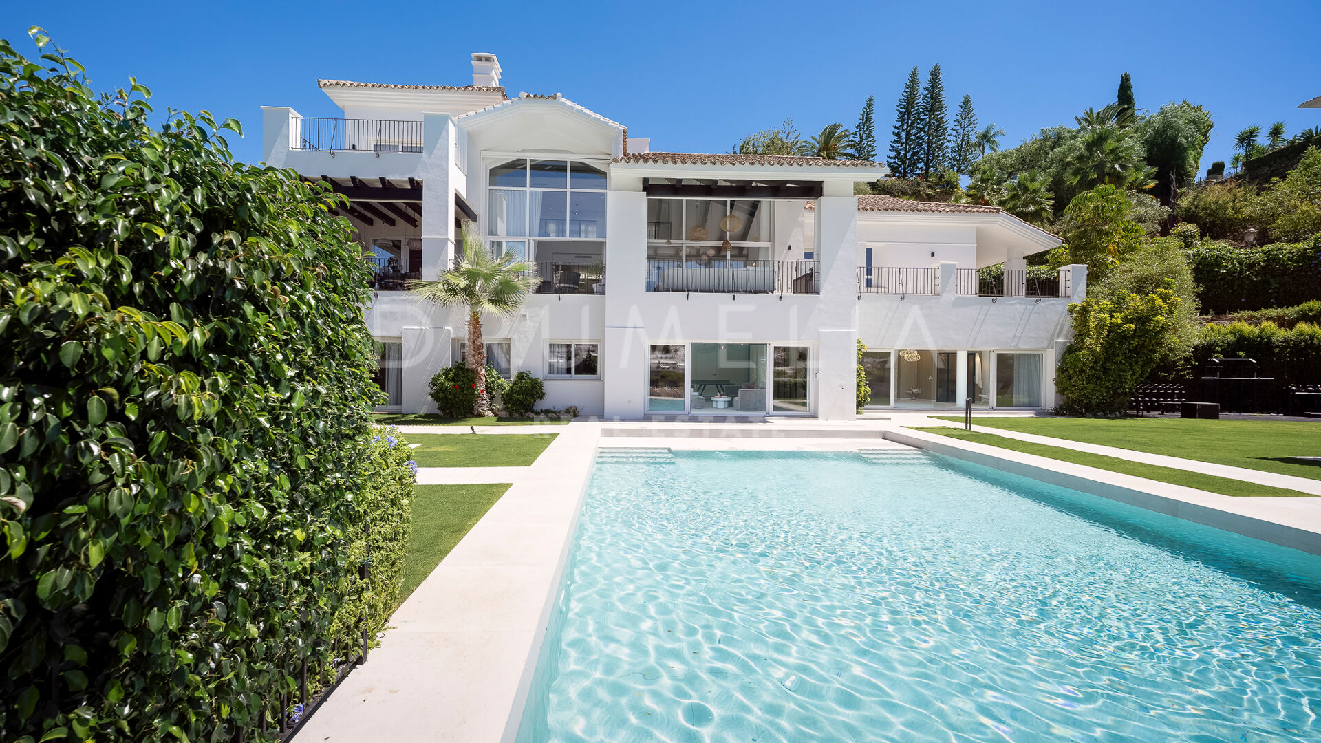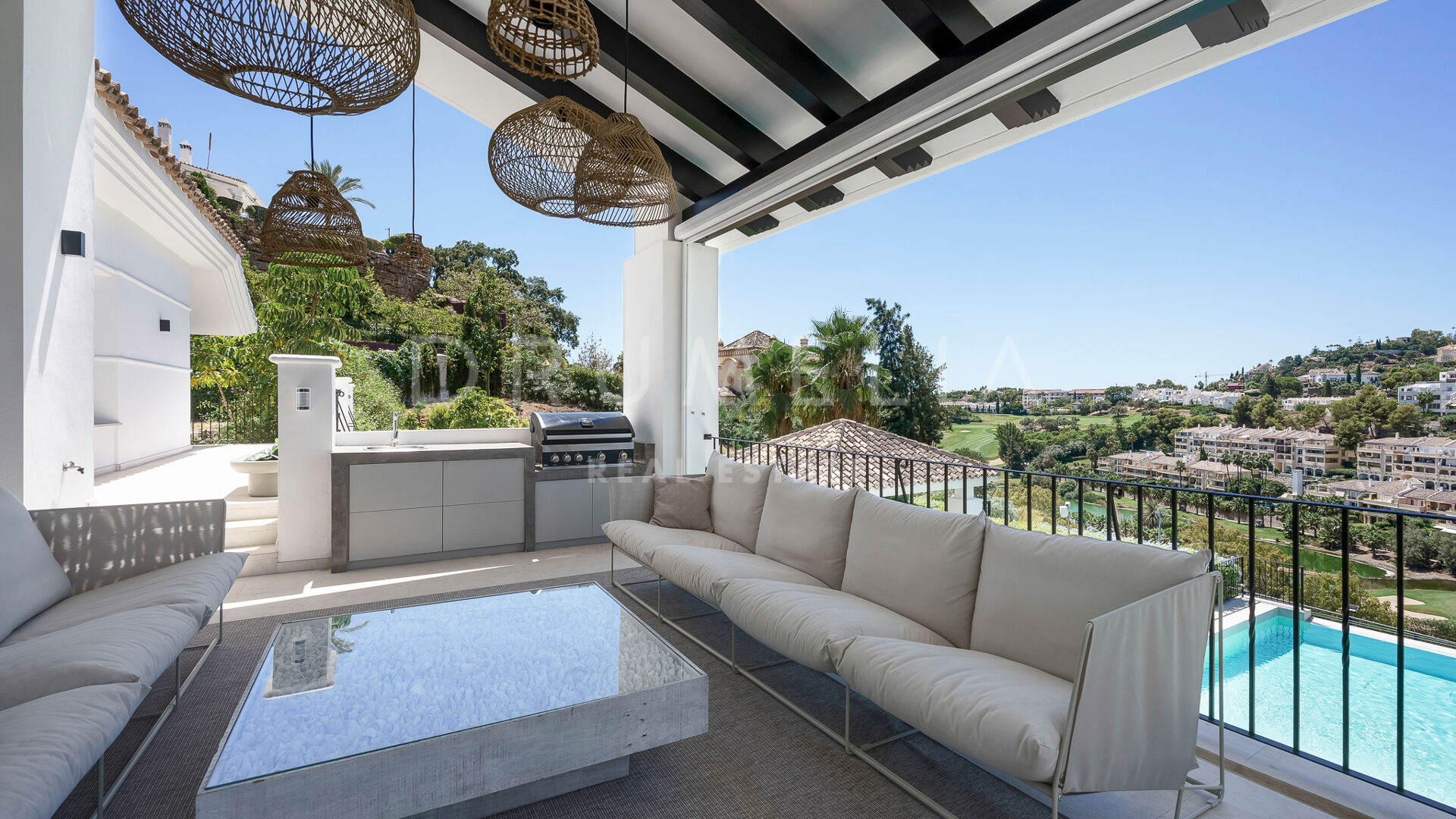Rodeada de propiedades de lujo similares y hermosa naturaleza, la casa de 920 m² con una gran parcela pintoresca de 3.500 m² ofrece una abundante vida interior y exterior con un toque de moderno chic mediterráneo. Ha sido recientemente reformada, renovada con gusto y estilo, manteniendo el encantador estilo andaluz en el exterior e introduciendo un toque de lujo contemporáneo y especificaciones de alta calidad en el interior. La espectacular propiedad de alto standing tiene orientación oeste y goza de encantadoras vistas al golf. Promete a sus propietarios y a sus invitados lo último en sofisticada relajación y confort. Consta de amplios y lujosos salones y comedores, una cocina totalmente equipada con electrodomésticos de gama alta y una isla de moda, 7 amplios dormitorios y 5 cuartos de baño más un aseo de invitados. Está muy bien equipada y dispone de muchos espacios para el entretenimiento, la relajación y el bienestar, con cine en casa, sauna, bodega, mesa de tenis, piscinas cubierta y descubierta, gimnasio al aire libre, parque infantil, pista de pádel/tenis propia, garaje doble y amplias terrazas por toda la propiedad.