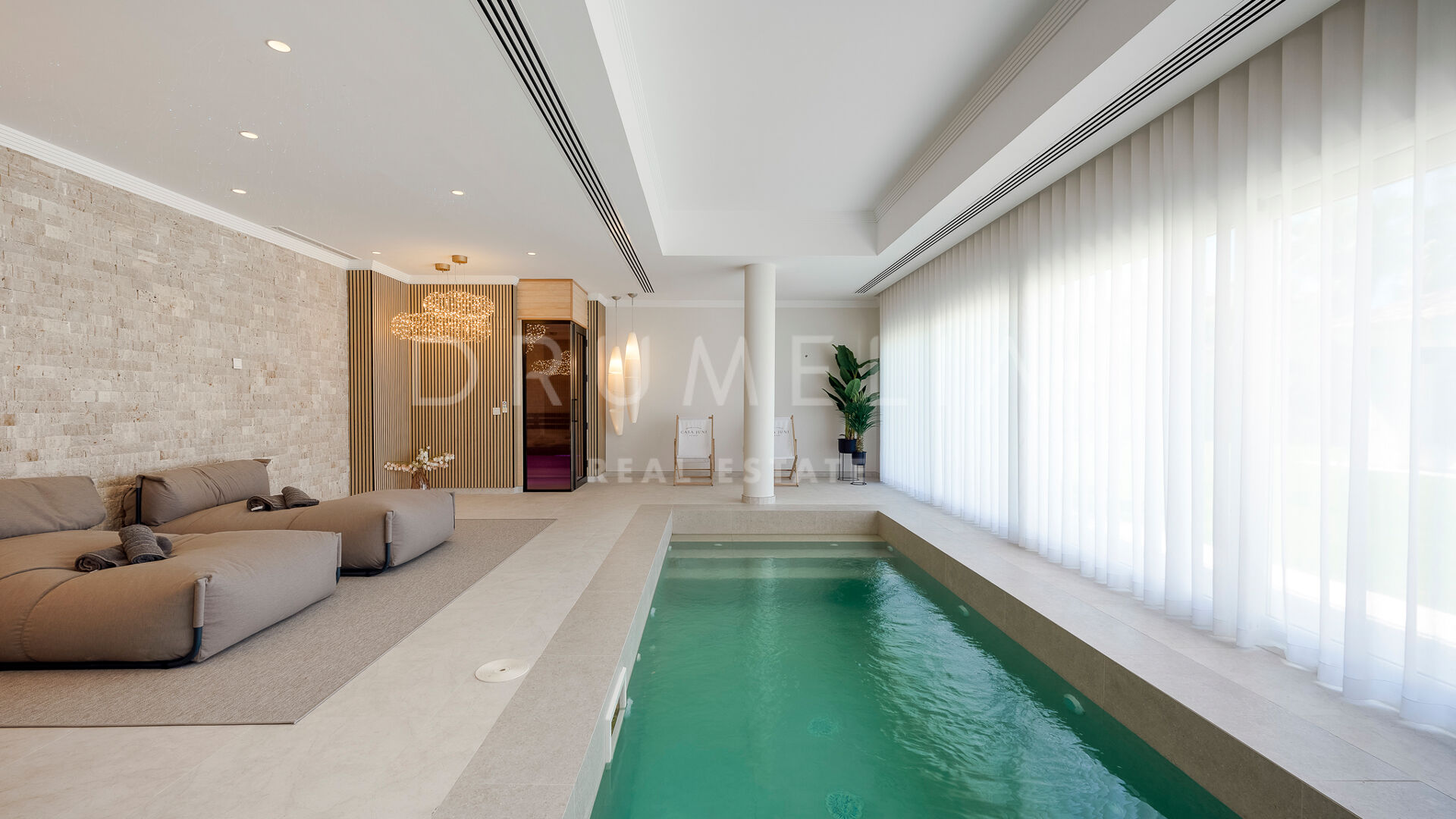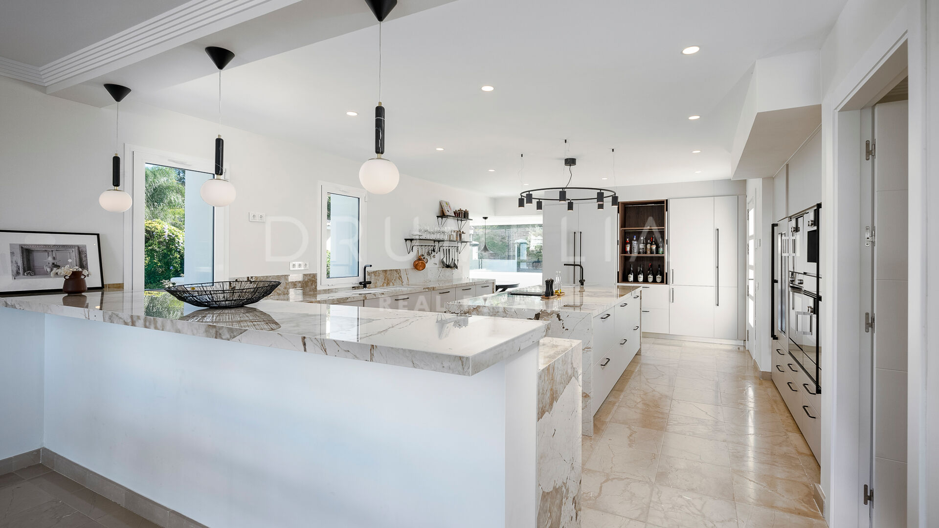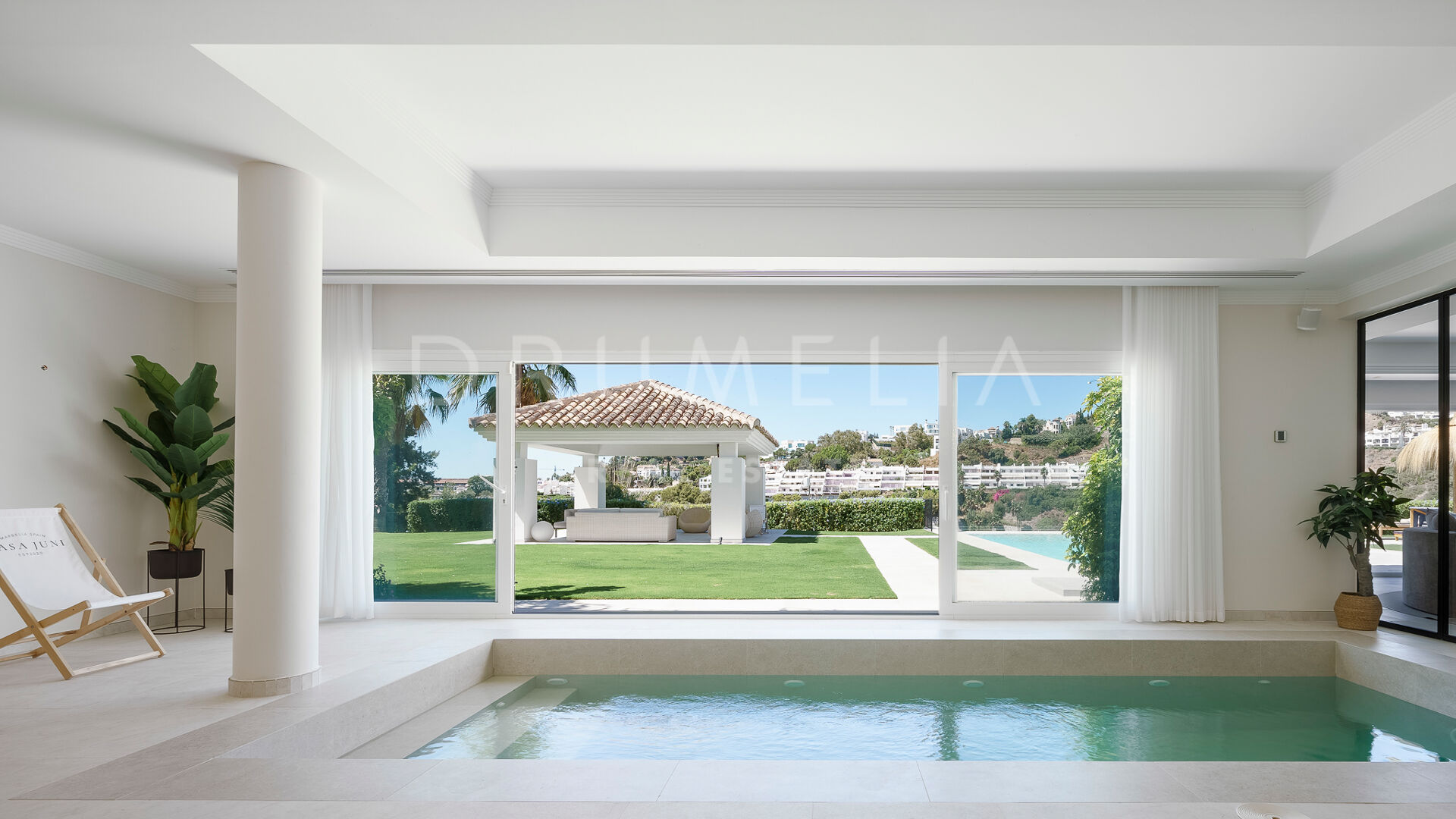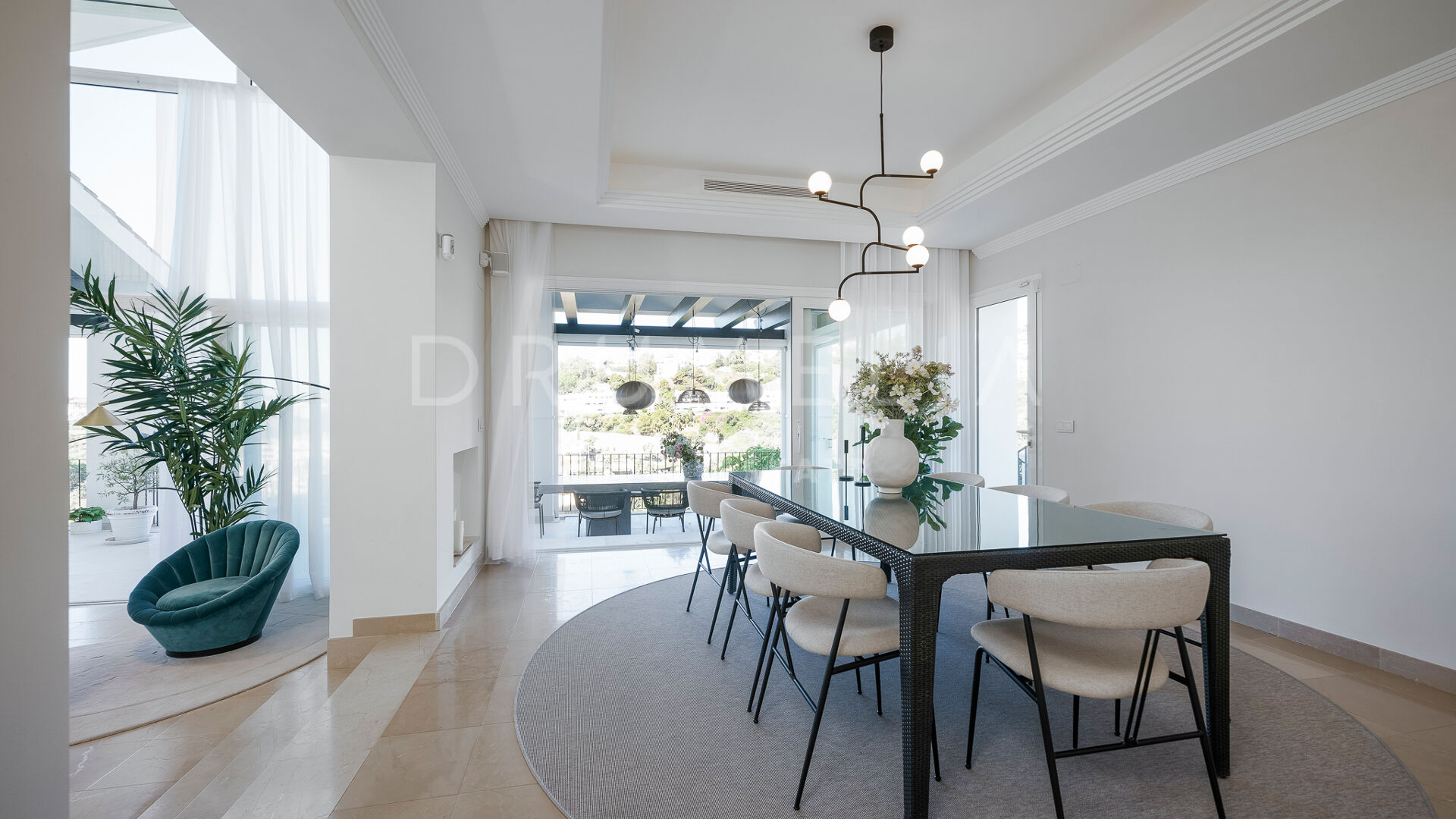 Rodeada de propiedades de lujo similares y hermosa naturaleza, la casa de 920 m² con una gran parcela pintoresca de 3.500 m² ofrece una abundante vida interior y exterior con un toque de moderno chic mediterráneo. Ha sido recientemente reformada, renovada con gusto y estilo, manteniendo el encantador estilo andaluz en el exterior e introduciendo un toque de lujo contemporáneo y especificaciones de alta calidad en el interior. La espectacular propiedad de alto standing tiene orientación oeste y goza de encantadoras vistas al golf. Promete a sus propietarios y a sus invitados lo último en sofisticada relajación y confort. Consta de amplios y lujosos salones y comedores, una cocina totalmente equipada con electrodomésticos de gama alta y una isla de moda, 7 amplios dormitorios y 5 cuartos de baño más un aseo de invitados. Está muy bien equipada y dispone de muchos espacios para el entretenimiento, la relajación y el bienestar, con cine en casa, sauna, bodega, mesa de tenis, piscinas cubierta y descubierta, gimnasio al aire libre, parque infantil, pista de pádel/tenis propia, garaje doble y amplias terrazas por toda la propiedad.