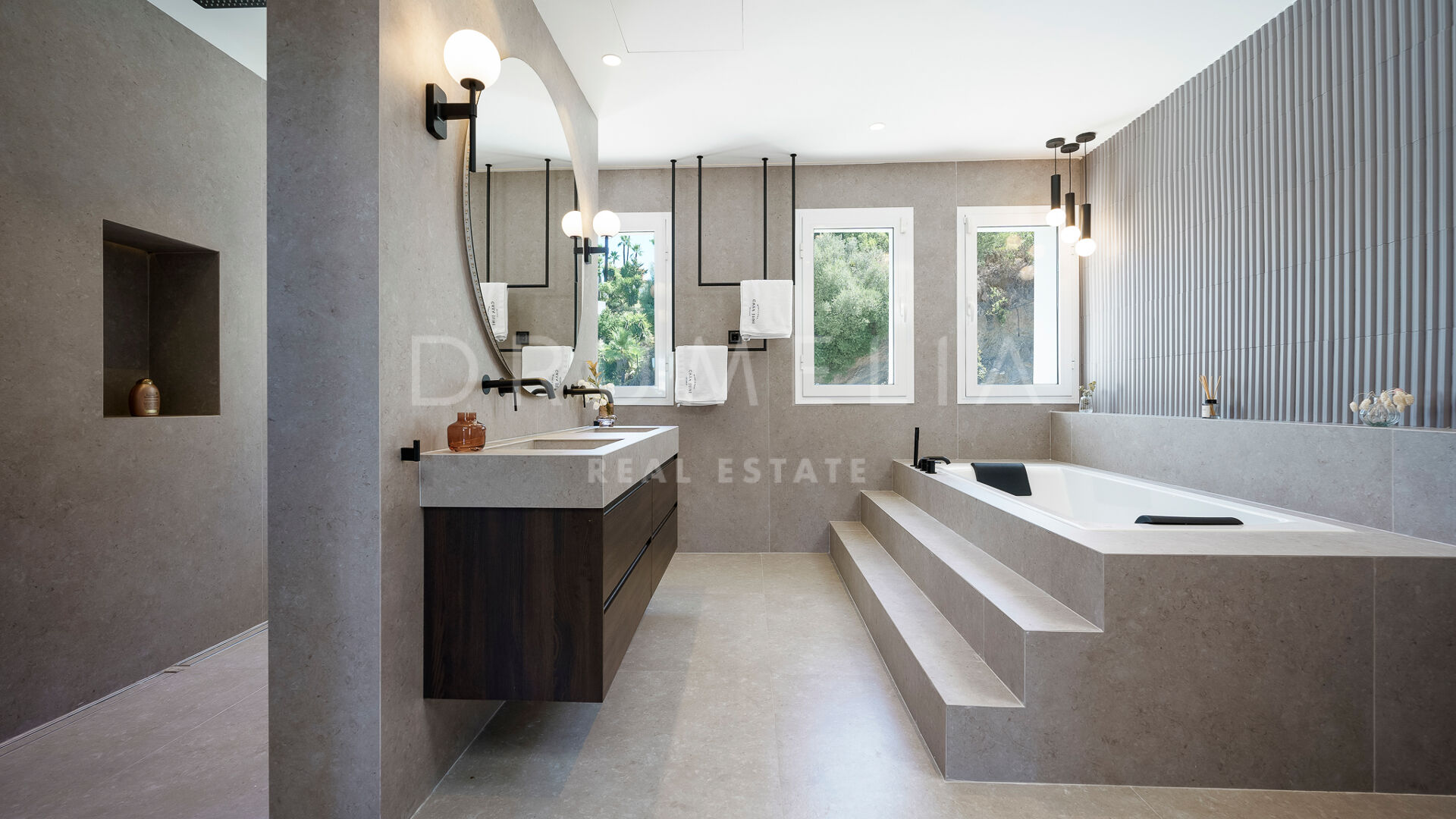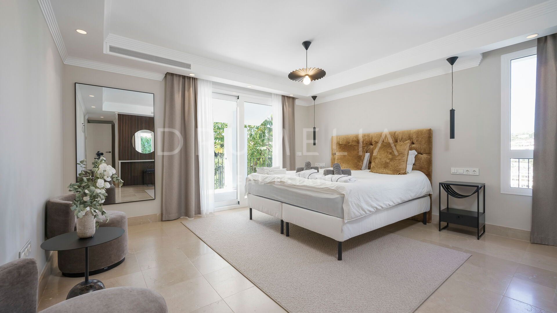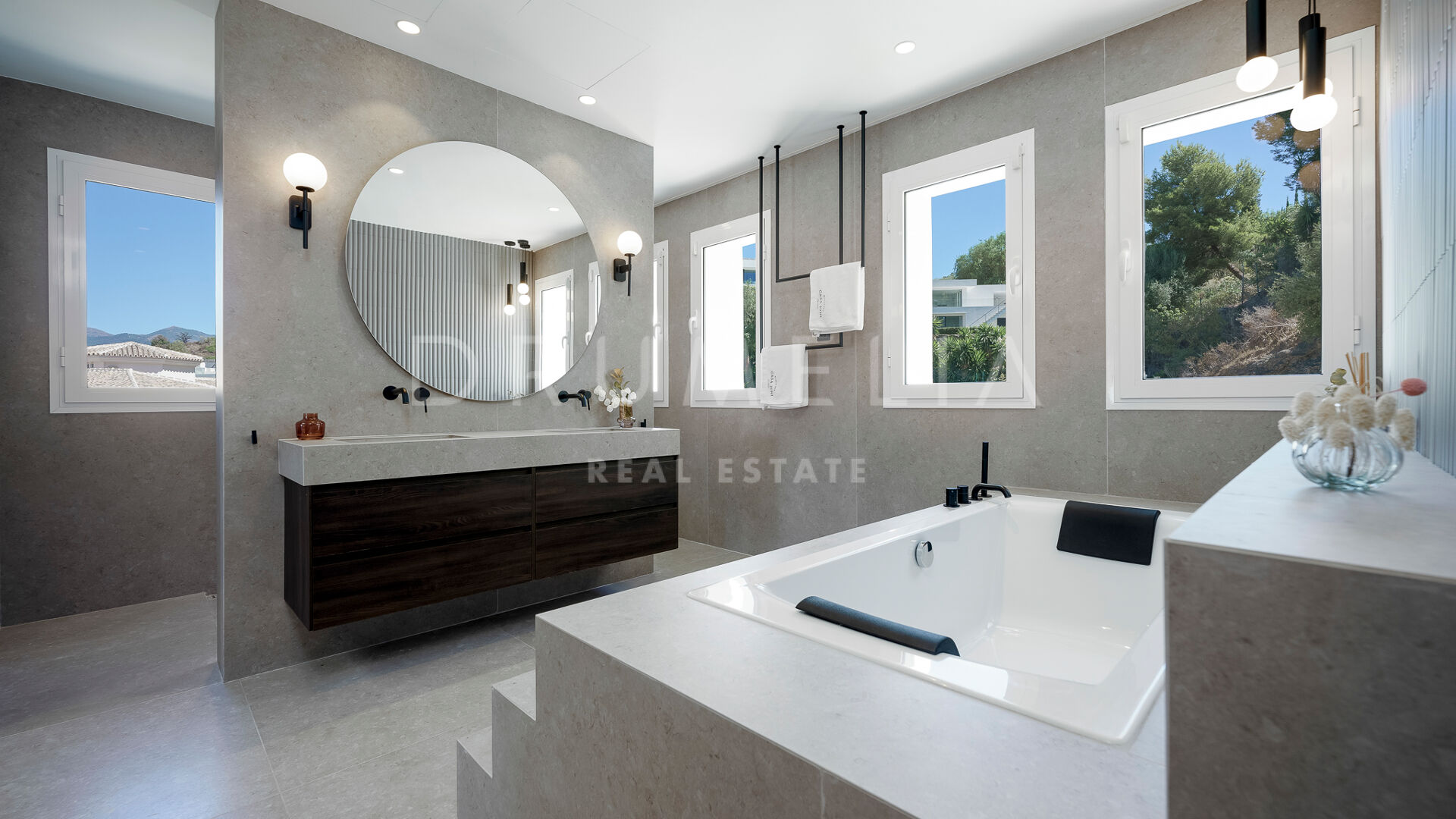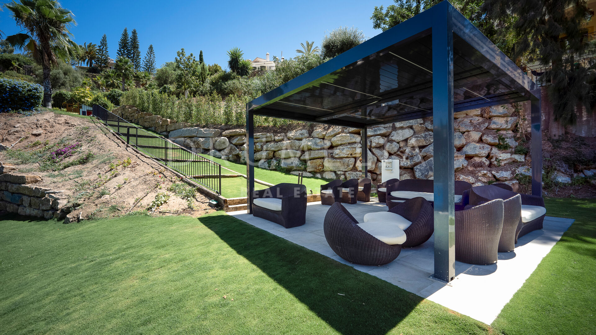 Esta magnífica villa se pone a la venta en la prestigiosa urbanización cerrada de Vega del Colorado, Benahavís, situada entre Nueva Andalucía y La Quinta Golf. Es conocida por su entorno aislado y una gran cantidad de servicios justo en su puerta. En pocos minutos en coche tendrás todas las instalaciones comerciales y gastronómicas de Puerto Banús, San Pedro, la Milla de Oro, Marbella centro y Benahavís, así como las playas con bandera azul y los clubes de golf del Valle del Golf a tiro de piedra.