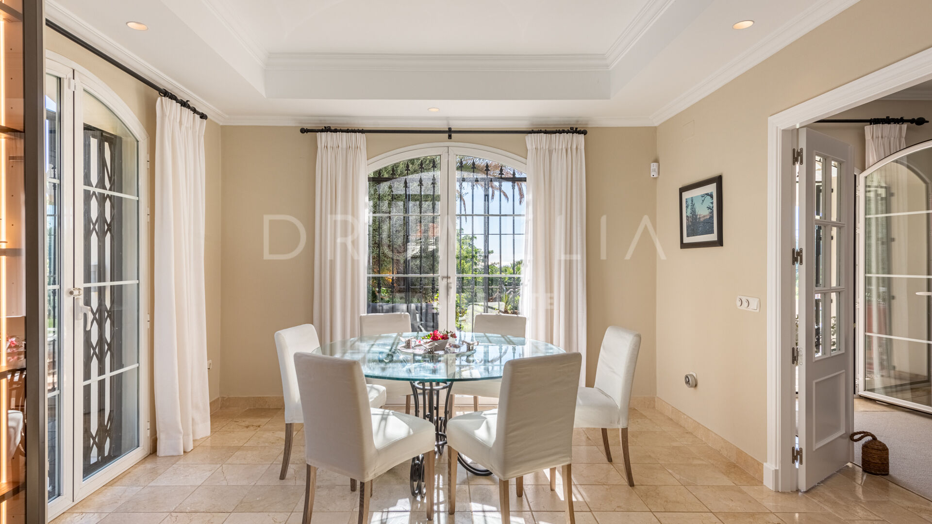 Ubicada en la exclusiva comunidad cerrada y vigilada las 24 horas de Vega del Colorado, esta elegante villa combina a la perfección el encanto clásico andaluz con un estilo moderno y refinado. Situada en una tranquila colina entre Benahavís y Nueva Andalucía, la propiedad ofrece privacidad absoluta, seguridad y espectaculares vistas al mar, todo dentro de uno de los entornos más prestigiosos de la Costa del Sol.