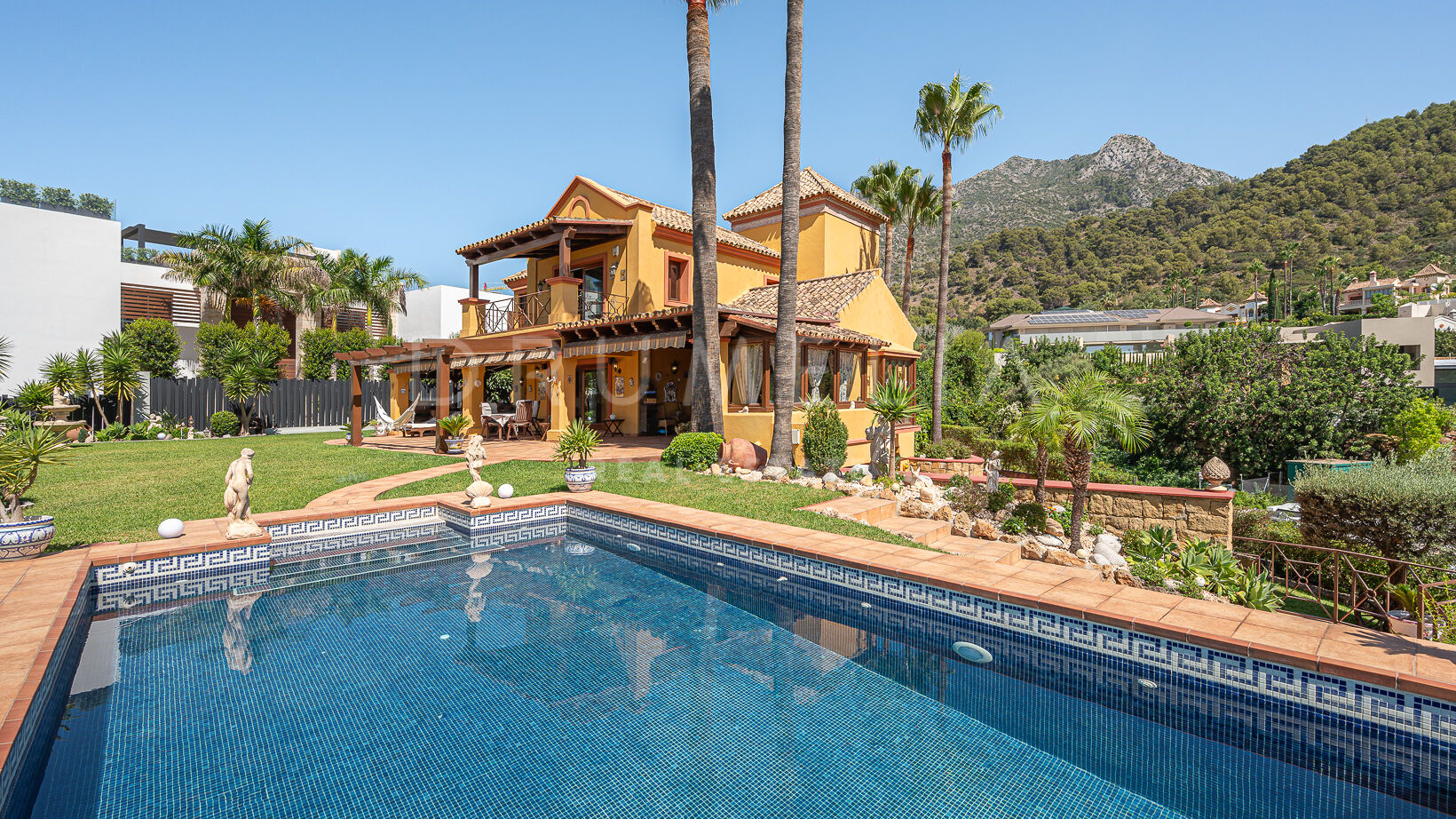 Une villa de style méditerranéen de 4 chambres à coucher est proposée à la vente dans l’une des enclaves les plus prestigieuses de Marbella, Cascada de Camojan, située sur le très convoité Golden Mile, à côté de Sierra Blanca. Elle incarne l’essence de la vie de luxe et garantit une expérience de vie inégalée pour les propriétaires exigeants. Cette communauté fermée haut de gamme, sécurisée 24 heures sur 24, offre à ses résidents un cadre de vie luxueux, sûr et tranquille. La résidence est située à proximité d’un grand nombre d’écoles internationales, de plages, de terrains de golf et de toutes les commodités locales. Elle n’est qu’à 5 minutes du centre animé de Marbella et offre un accès facile au fabuleux Puerto Banus et à la vallée du golf de Nueva Andalucia.