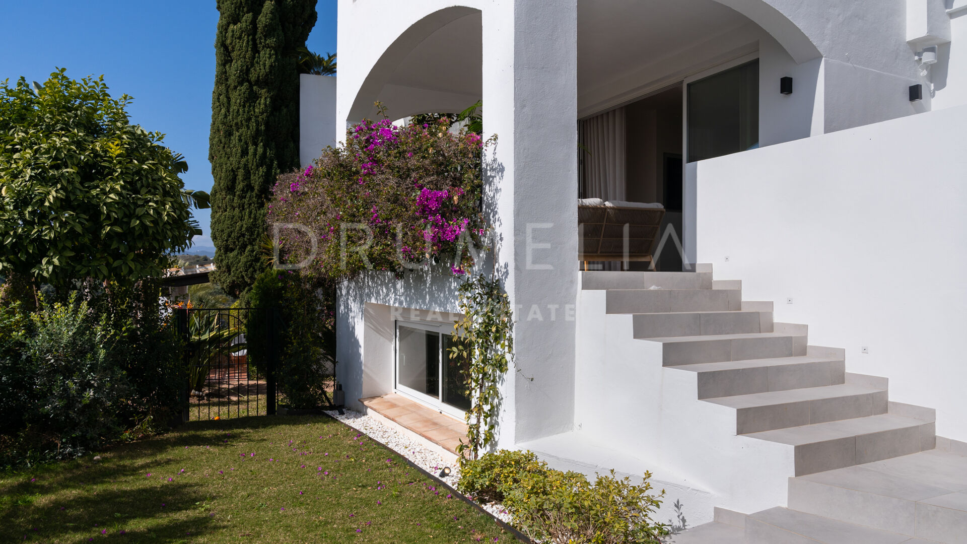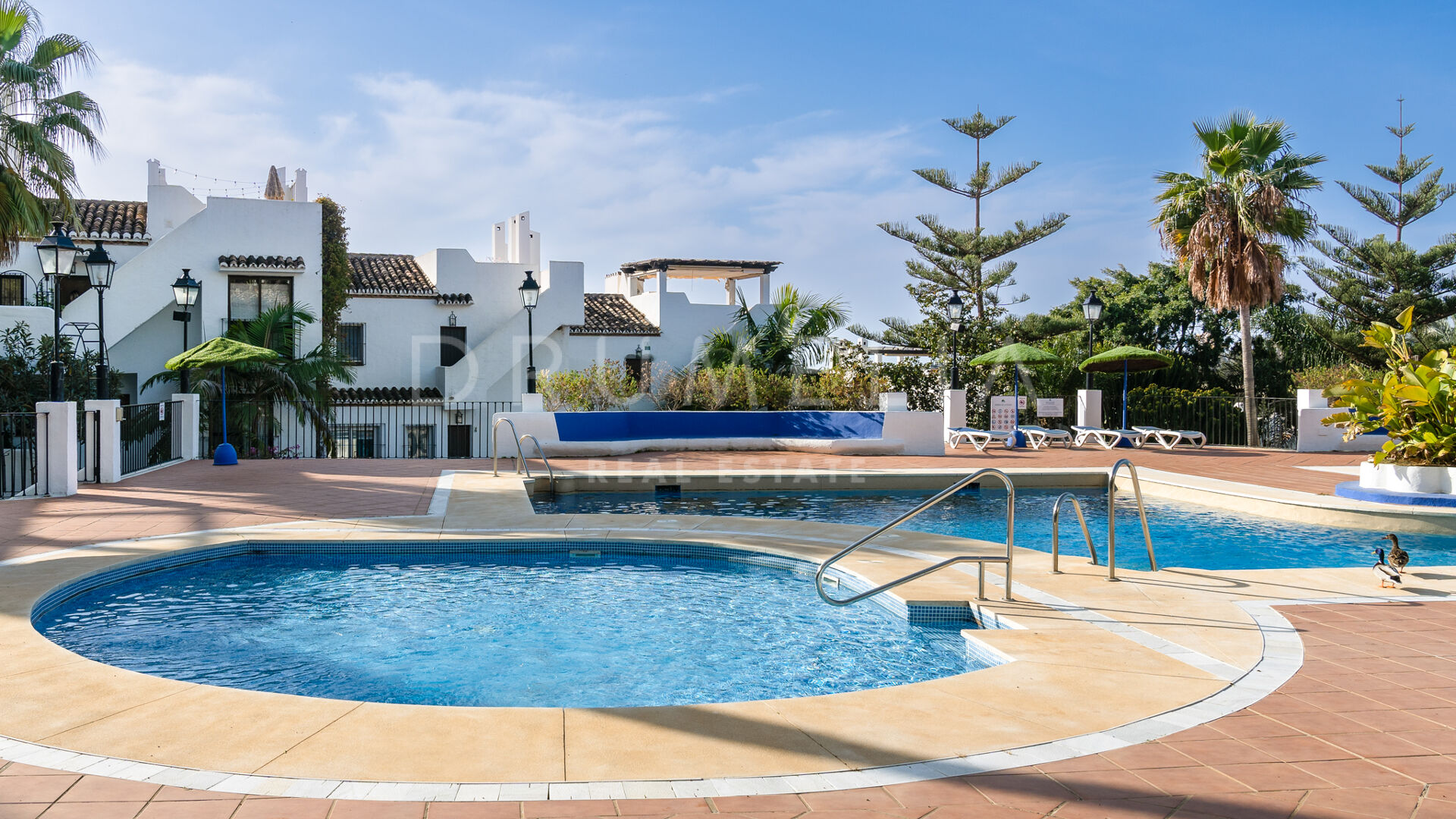 Cette maison de ville récemment rénovée avec une utilisation étonnante de l’espace est proposée à la vente à Club Sierra, Marbella. Entourée des propriétés de luxe de la zone la plus exclusive de la région méditerranéenne, le Golden Mile de Marbella, cette charmante urbanisation andalouse est située en face du célèbre Manolo Santana Racquets Club avec la magnifique montagne de La Concha en toile de fond. Elle dispose de jardins paysagers, d’une grande piscine extérieure, d’une cafétéria et d’un bar sportif. Le complexe résidentiel est situé à proximité de toutes les commodités et à une courte distance en voiture du centre-ville, des terrains de golf, des plages et de Puerto Banus.