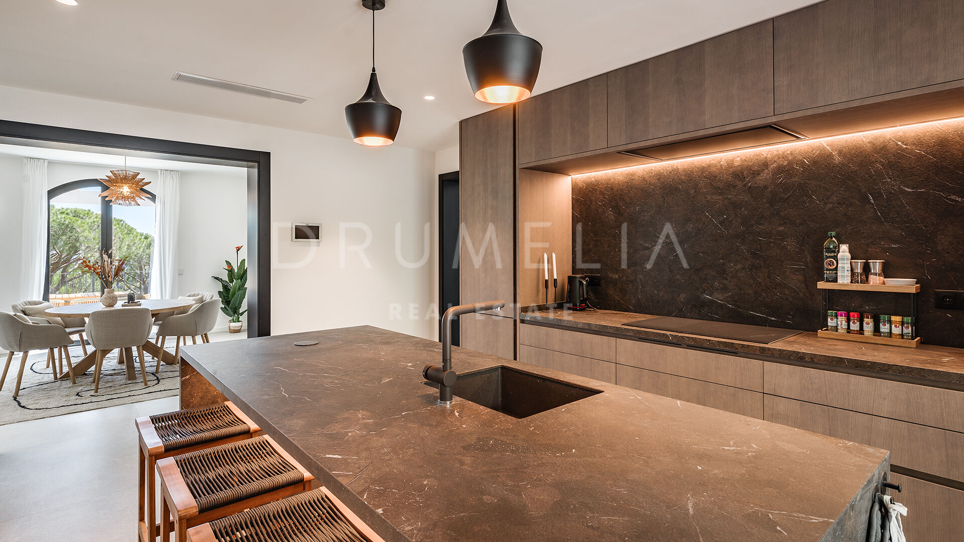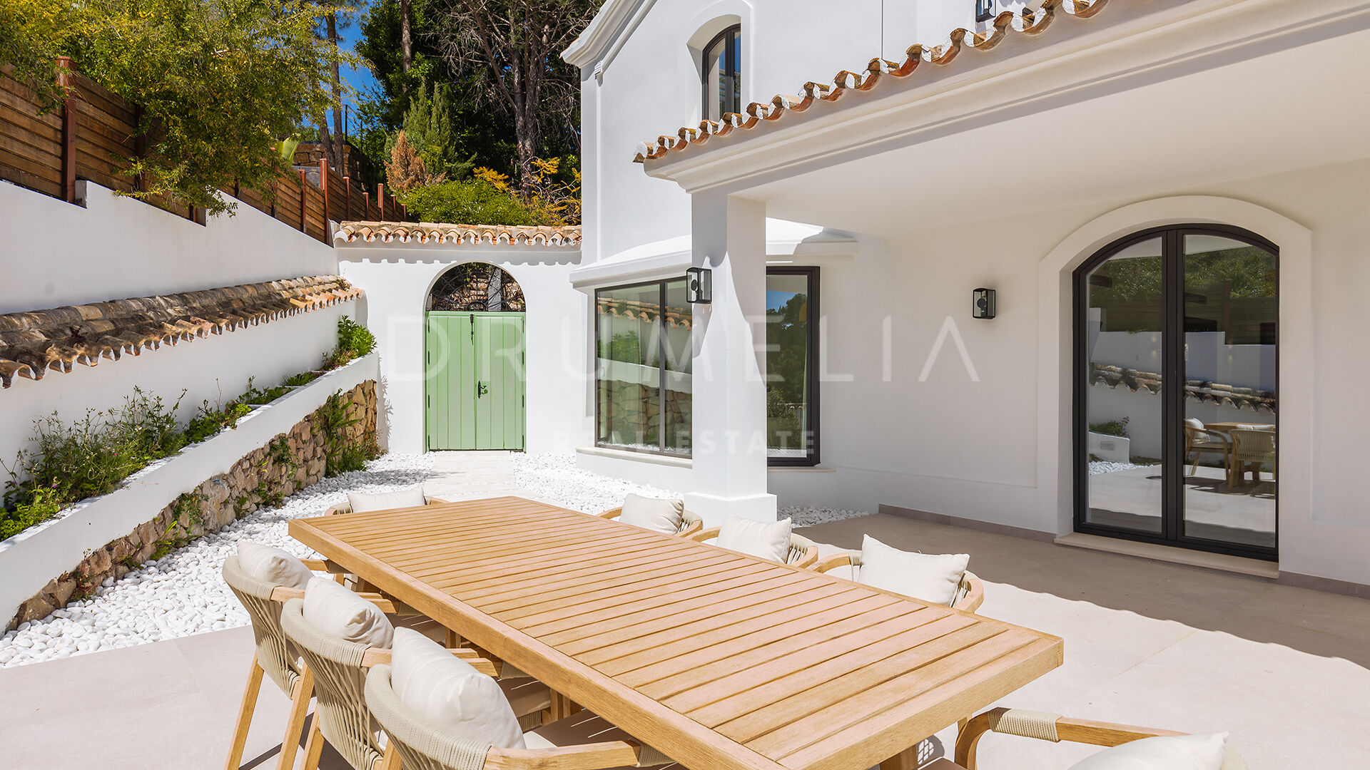 Le confort est garanti toute l’année grâce au chauffage au sol et à la climatisation chaud/froid dans toute la maison. À l’extérieur, un véritable havre de paix vous attend – jardins luxuriants, piscine étincelante et coins paisibles pour se détendre ou recevoir.