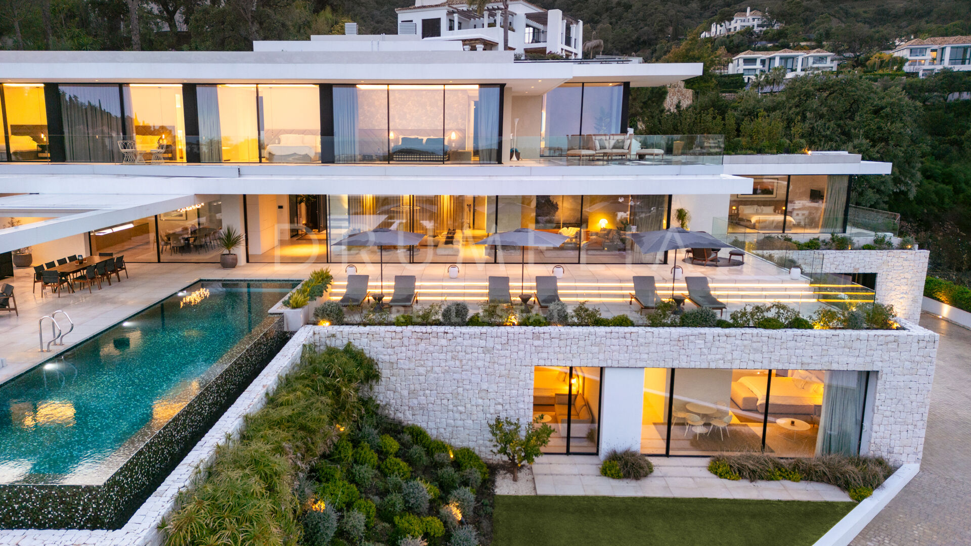 Cette superbe résidence contemporaine de huit chambres est à vendre dans l’enclave exclusive et sécurisée d’El Madroñal, un havre de paix élitiste niché dans les collines surplombant Marbella. Nichée au cœur d’un paysage naturel serein, cette résidence allie avec aisance un design raffiné, un confort luxueux et des vues imprenables sur la côte méditerranéenne. Conçue par le célèbre studio d’architectes AMES, chaque élément a été soigneusement pensé pour refléter le raffinement, la fonctionnalité et l’harmonie avec son environnement exceptionnel.