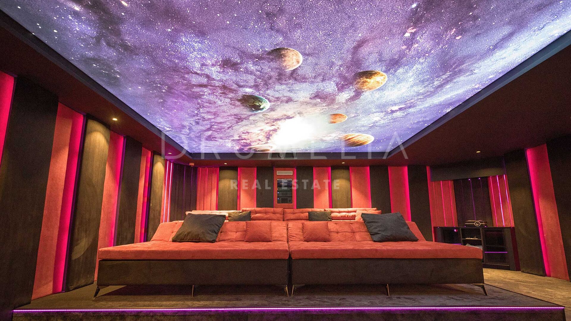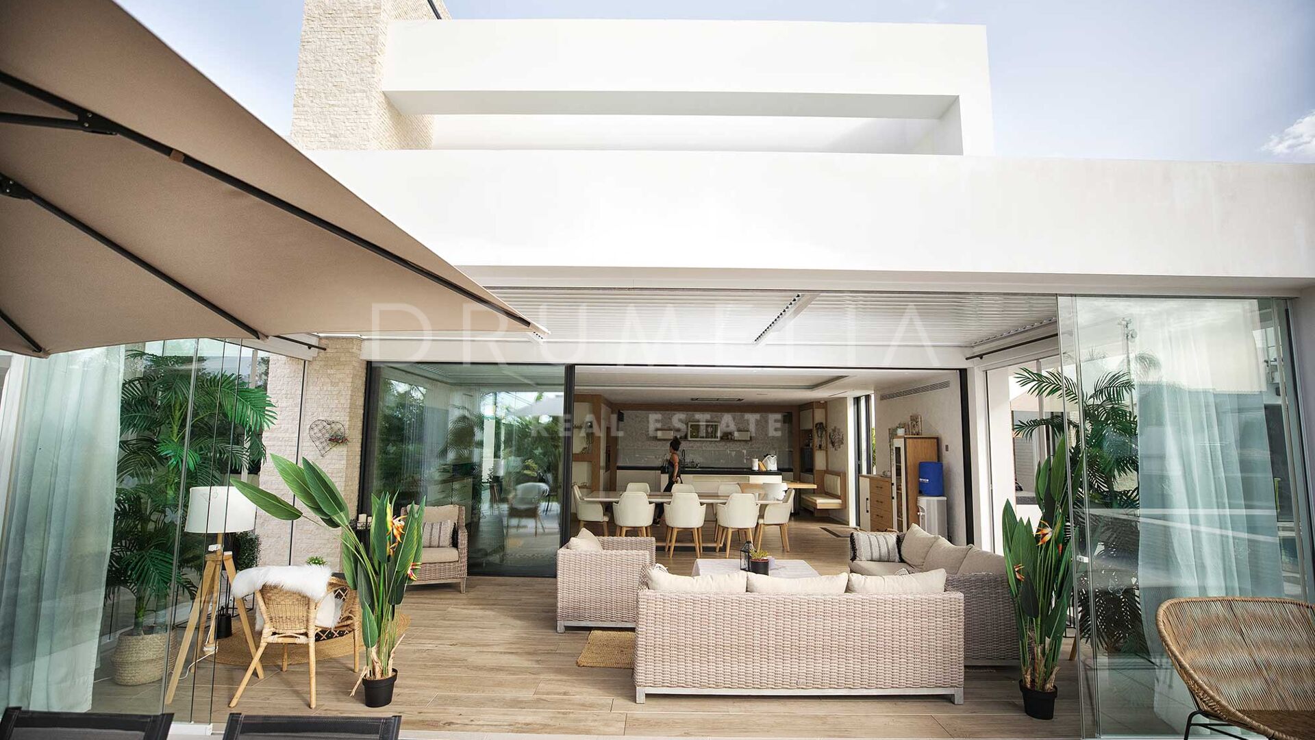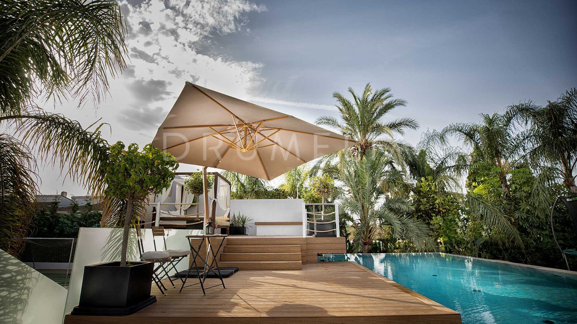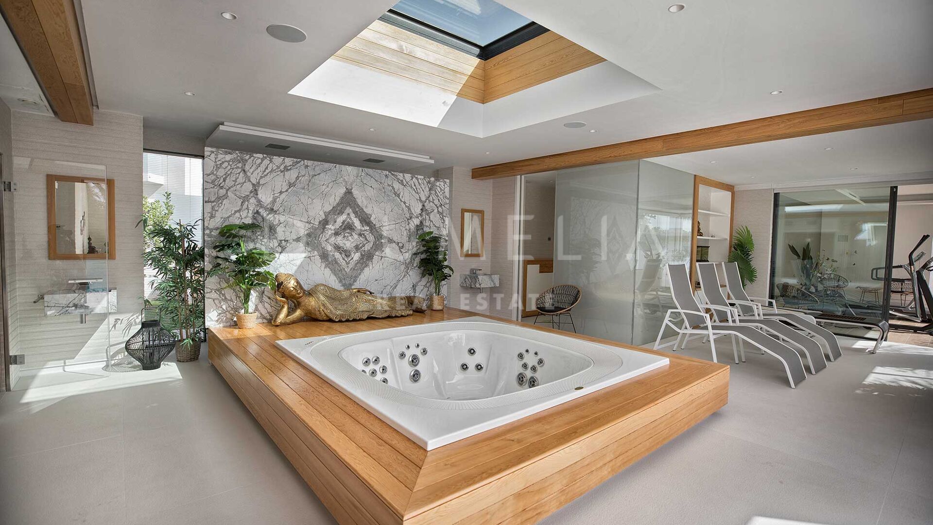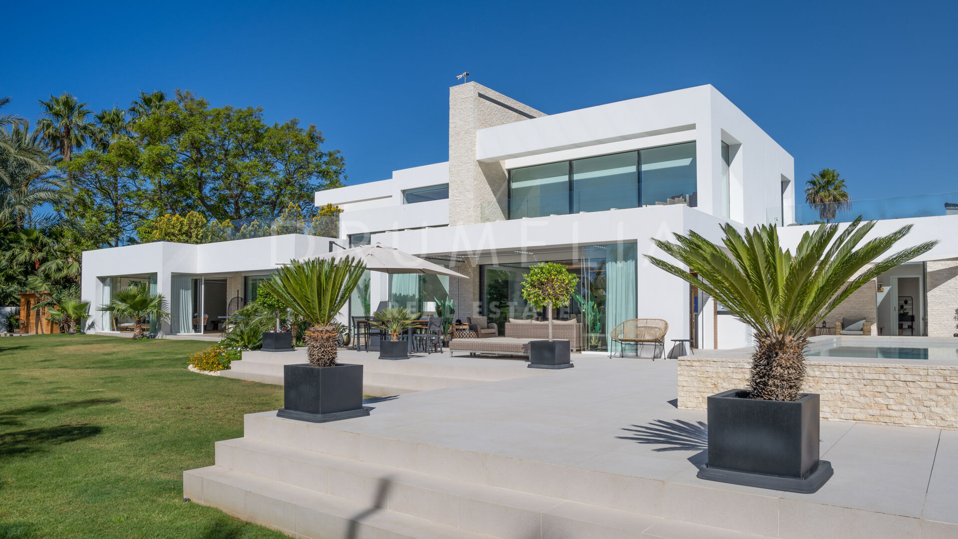 Située sur un grand terrain de 3.397 m² avec un beau jardin paysager, des pelouses vertes, un court de tennis/paddle et une imposante piscine privée, la grande villa de style contemporain de 1.757 m² bénéficie d’un design et de finitions simples mais élégantes, d’équipements de pointe et d’intérieurs exquis. Entourée de propriétés de luxe similaires et de la belle nature de la région d’Estepona, la maison dispose de vastes espaces de vie, de salle à manger et de réception menant à de remarquables terrasses où l’on peut admirer des vues sereines sur le jardin et les montagnes.
