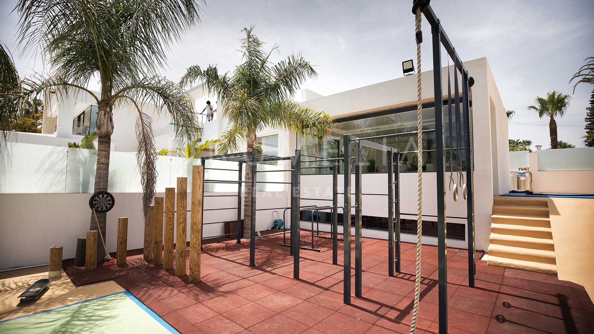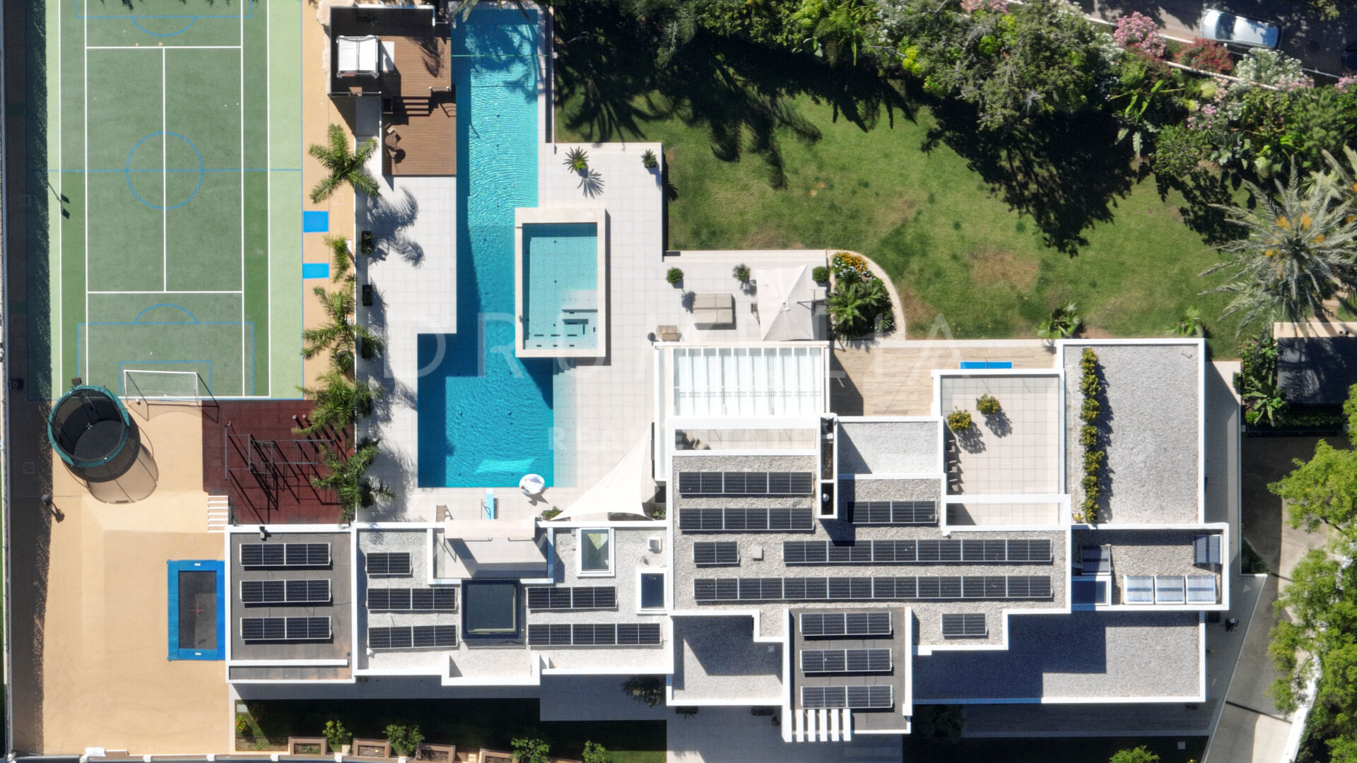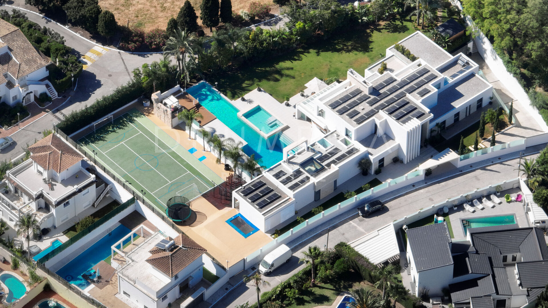 Les terrasses ensoleillées et couvertes et les espaces extérieurs exceptionnels offrent beaucoup d’espace pour se détendre, dîner en plein air, prendre un bain de soleil, faire un barbecue et jouer au tennis. Cette propriété extraordinaire dispose également d’une piscine de 25 m de long et de 4 m de profondeur, d’une piscine à débordement avec jacuzzi et d’une nage à contre-courant, offrant une expérience de plein air rafraîchissante et luxueuse. Le terrain de sport de haute qualité, le trampoline professionnel, la maison en bois, le barbecue à gaz et l’espace de détente avec un lit balinais viennent s’ajouter aux options de divertissement en plein air. Tout est réuni pour profiter du glorieux style de vie méditerranéen ! De plus, la propriété comprend une maison d’hôtes sur 2 niveaux avec un terrain de 500m2, comprenant une terrasse privée avec une piscine, 2 chambres avec dressing et salle de bains, un fantastique salon avec une cuisine, et un garage. Idéale pour vos invités ou comme logement de fonction.