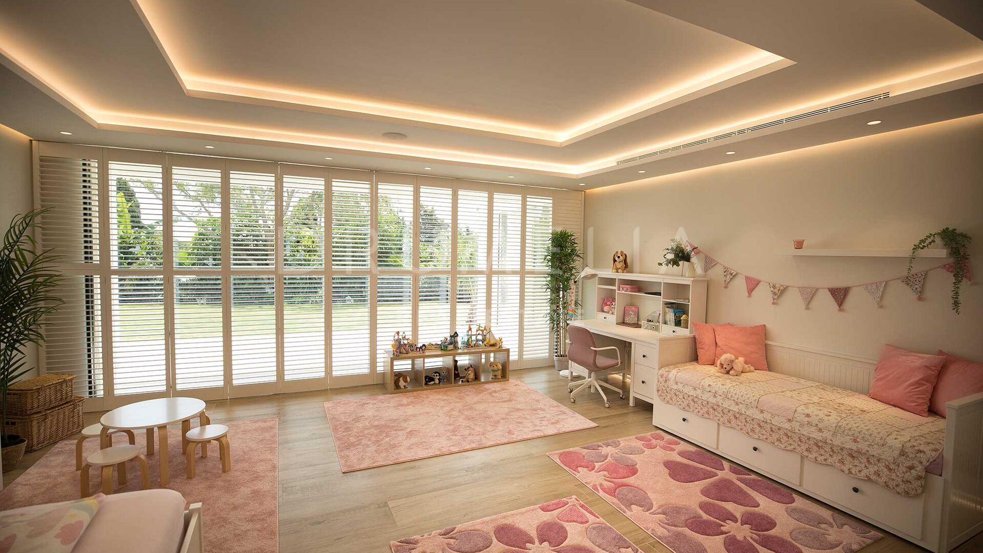 Au rez-de-chaussée, on trouve un grand hall d’entrée, un dressing, des toilettes, un salon spacieux, une salle à manger et une cuisine, parfaits pour accueillir de grands rassemblements. La suite parentale dispose d’un dressing et trois autres chambres familiales ont toutes leur salle de bains intégrée. Une chambre de service est également disponible à ce niveau. L’espace SPA comprend un jacuzzi, un bain turc, un sauna, des douches, un vestiaire avec salle de bains et une salle de sport, ce qui permet de disposer de tout ce dont on a besoin pour se faire dorloter. Un escalier magnifiquement conçu mène au dernier étage qui offre un distributeur, une chambre d’amis, une salle de bains, un dressing, un bureau et des terrasses, ce qui permet de se retirer en toute intimité. Le sous-sol dispose d’un garage pouvant accueillir jusqu’à six voitures, ce qui est pratique pour les familles disposant de plusieurs véhicules, de diverses installations générales, d’un hall d’entrée, de salles de stockage et d’espaces offrant d’innombrables possibilités de divertissement et de détente.